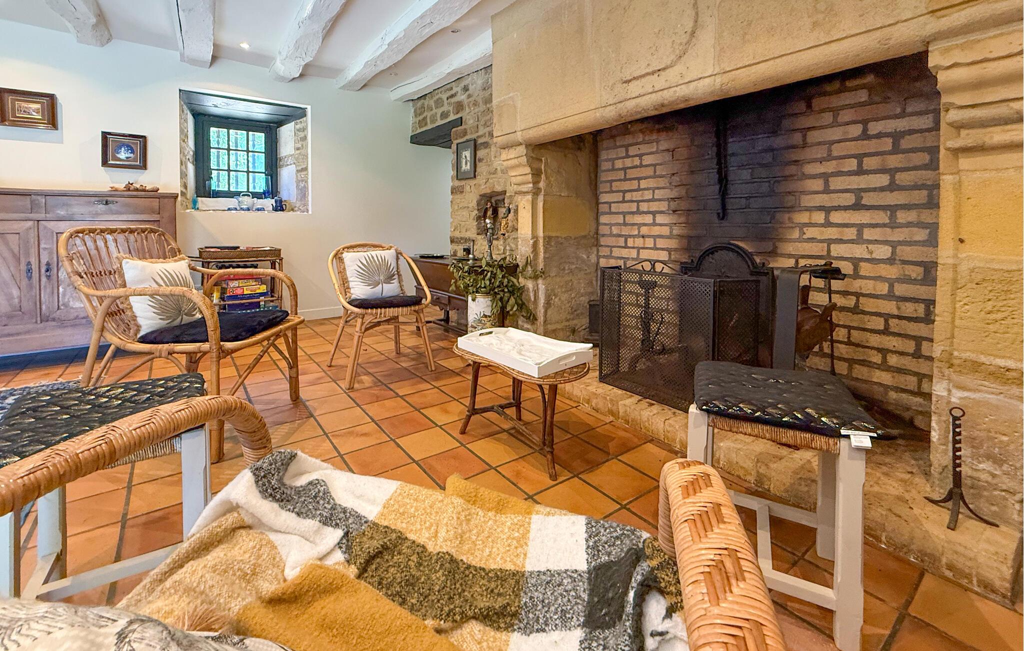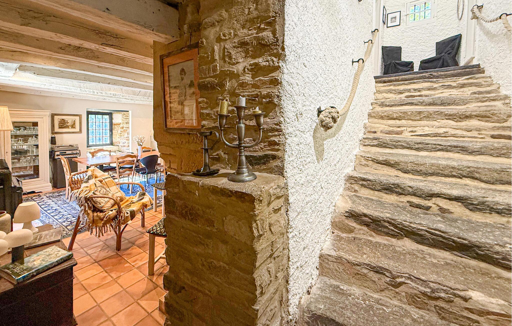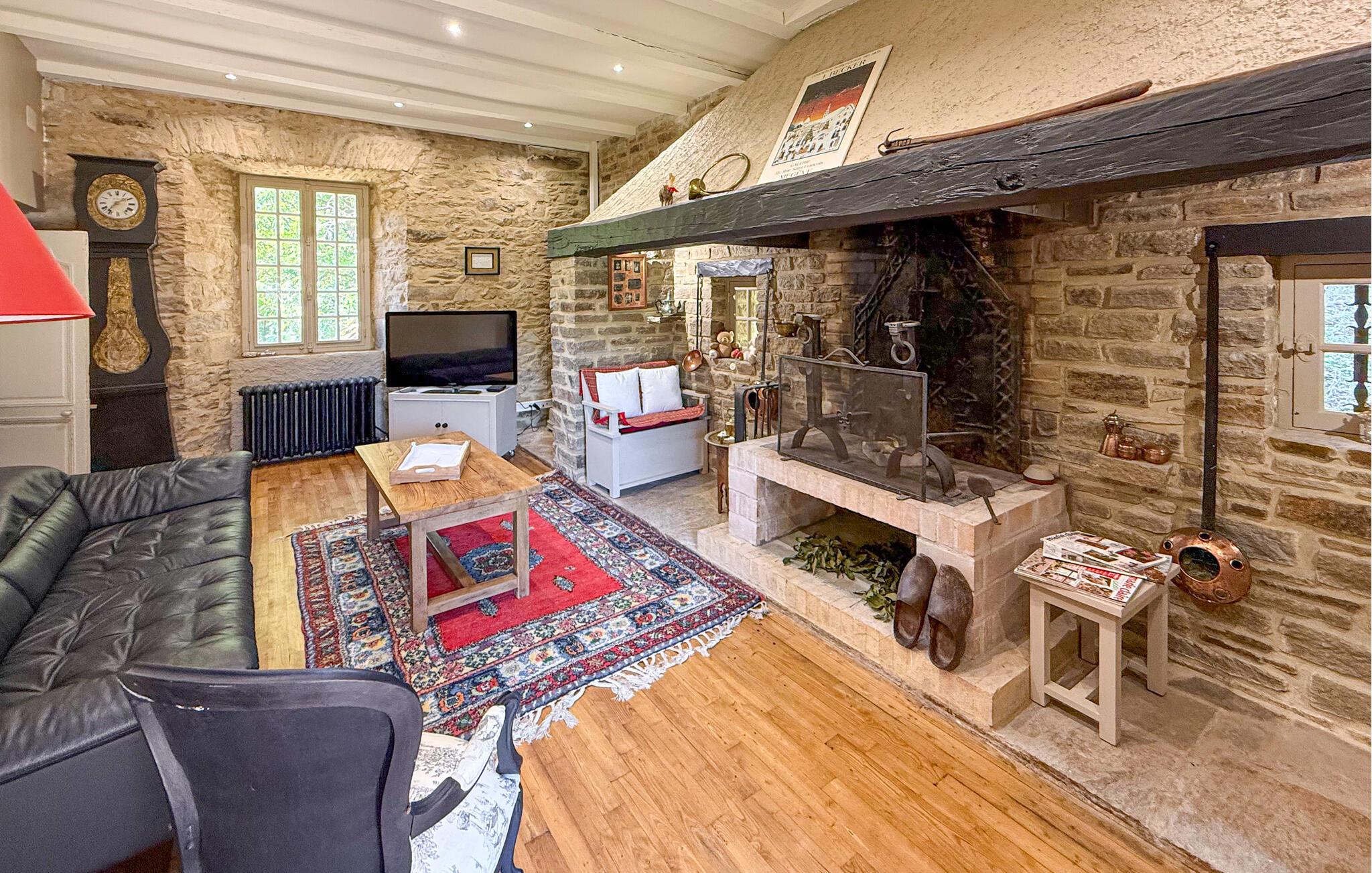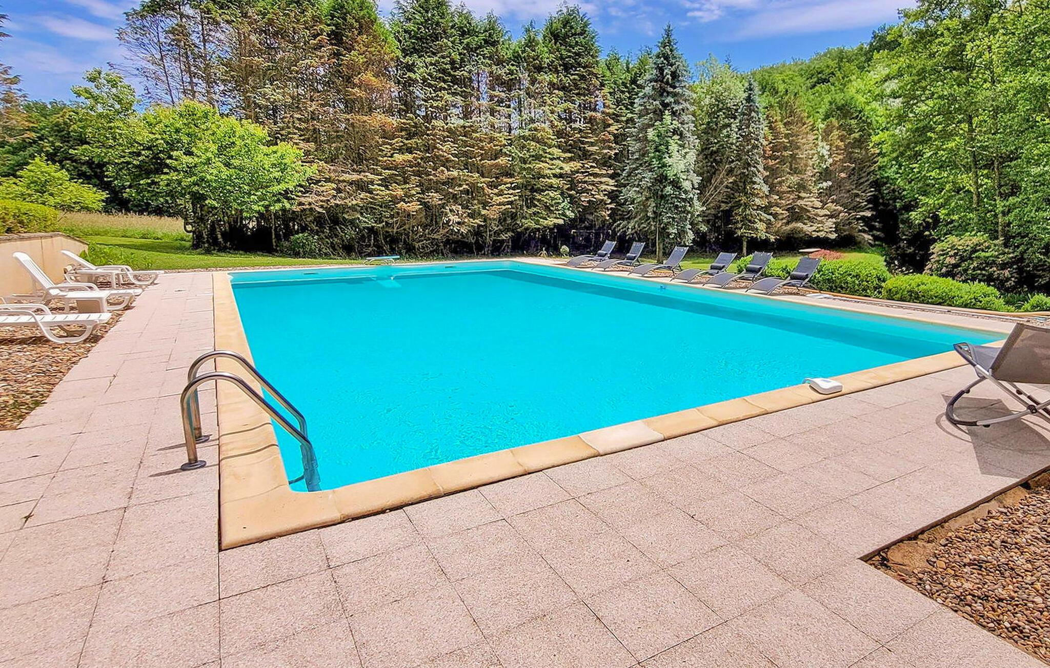 Dieses Landhaus in Saint-Paul-la-Roche, Grünes Perigord Vert, verfügt über einen großen privaten Pool (18 x 8 m), eingebettet in eine natürliche Umgebung entlang des Flusses L'Isle. Das Anwesen verfügt über eine gut ausgestattete Küche mit direktem Zugang ins Freie und ein geräumiges Ess-/Wohnzimmer mit Kamin im Erdgeschoss. Die komfortablen Schlafzimmer befinden sich im ersten und zweiten Stock. Im Außenbereich bietet das Anwesen einen großen Garten mit einem Waldgebiet und einen weitläufigen Pool, der von einem 800 m langen Flussufer begrenzt wird und über ein Sprungbrett und Nachtbeleuchtung verfügt. Das Anwesen umfasst auch ein überdachtes Poolhaus mit Essbereich und eine Bar mit Kühlschrank sowie Sonnenliegen und eine Plancha zum Kochen im Freien. Mit dem bereitgestellten Tisch und den Liegestühlen können Sie ein Picknick am Fluss genießen. Das Anwesen verfügt über mehrere Terrassen mit Sitz- und Essbereichen, die eine schöne Aussicht und einfachen Zugang zur Küche und zum Essbereich bieten. Orte, die Sie während Ihres Aufenthalts besuchen sollten: Brantome: Das Venedig des Périgord. Charmante Stadt mit idyllischer Atmosphäre, in der Sie spazieren gehen, einkaufen und essen können, aber auch eine schöne Kanufahrt unternehmen können. Die Brücken, die die Kanäle überspannen, führen Sie zu den vielen Terrassen, wo Sie die lokale Küche probieren können. Jeden Freitagmorgen gibt es einen schönen Markt. Jumilhac-le-Grand: Diese mittelalterliche Stadt verfügt über ein wunderschönes Schloss und einen großen zentralen Platz mit Terrassen. Das Goldmuseum organisiert Einführungen in das Goldwaschen im Fluss. Buchen Sie rechtzeitig. Thiviers ist die Hauptstadt der Gänseleberpastete. Jeden Samstag gibt es einen traditionellen Bauernmarkt mit vielen regionalen Produkten.