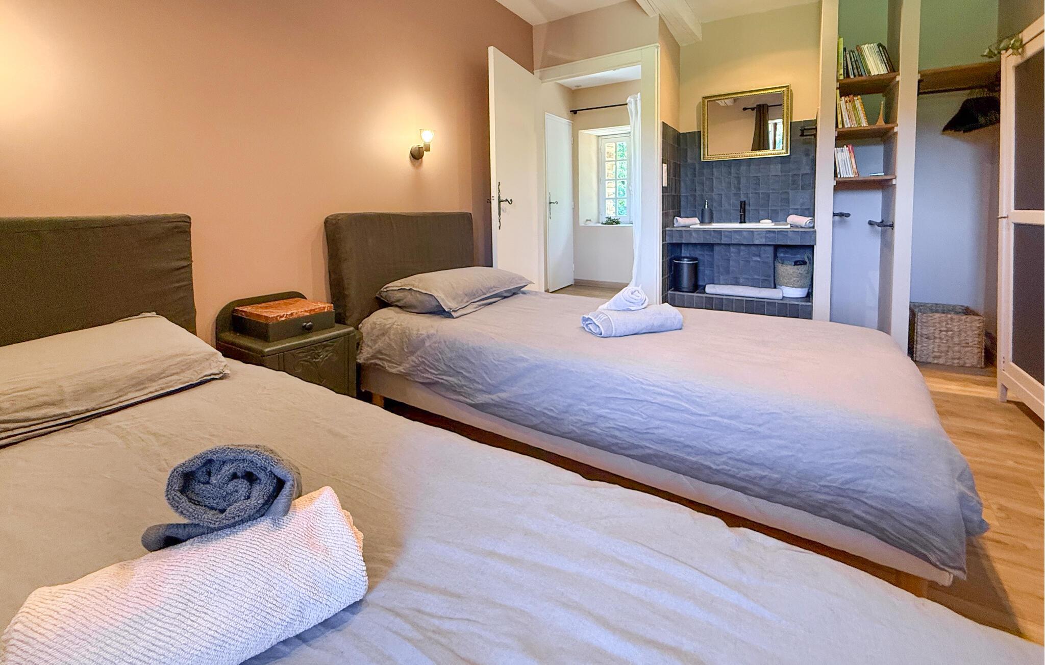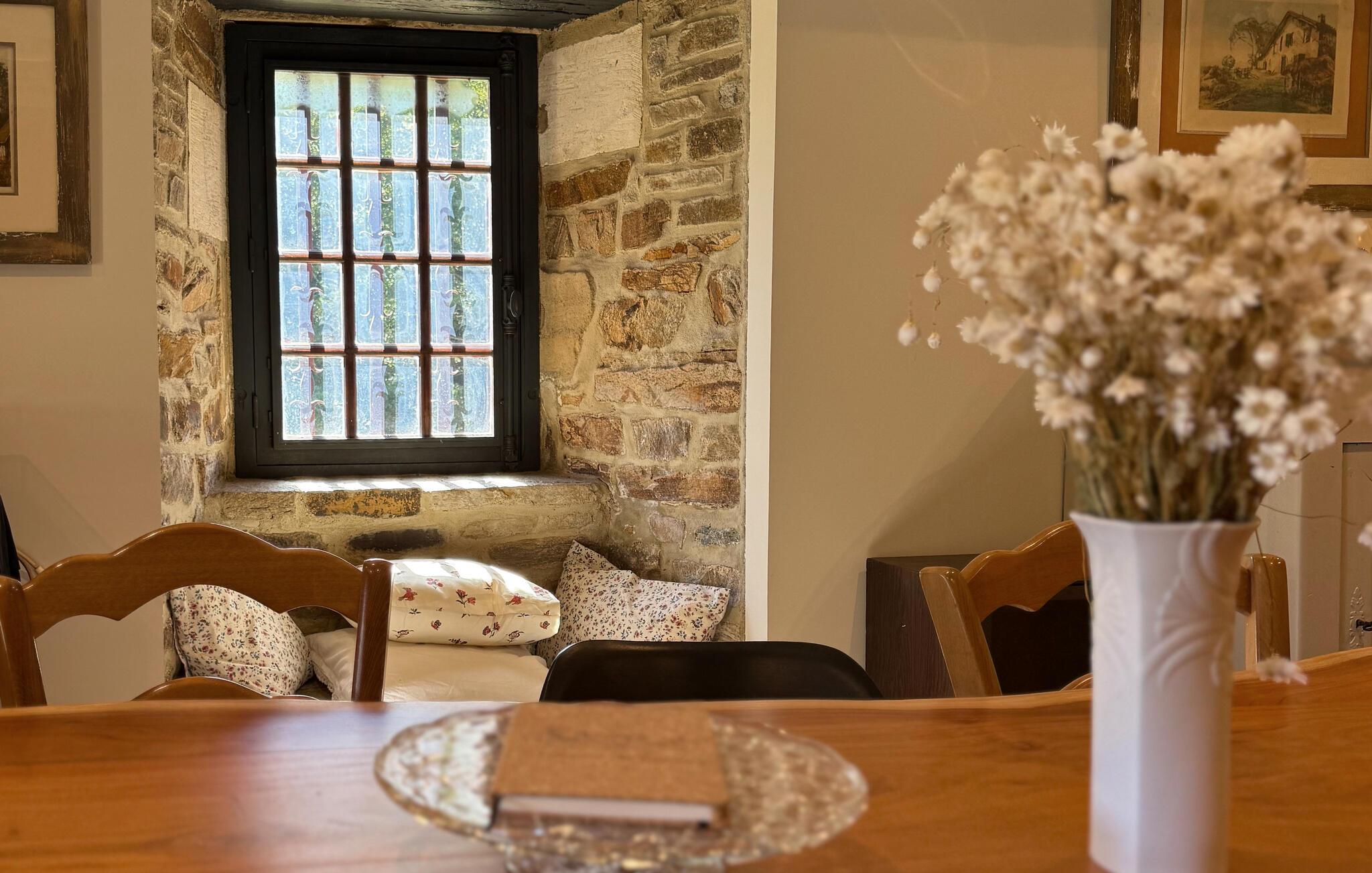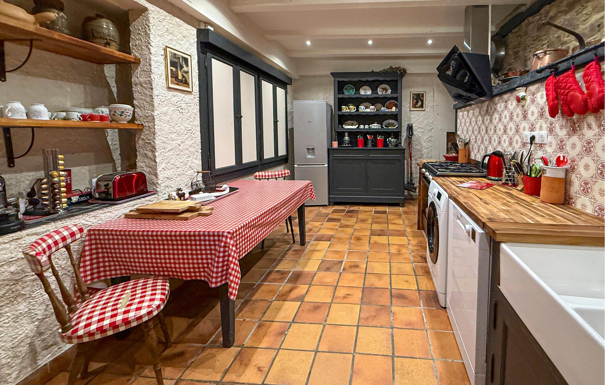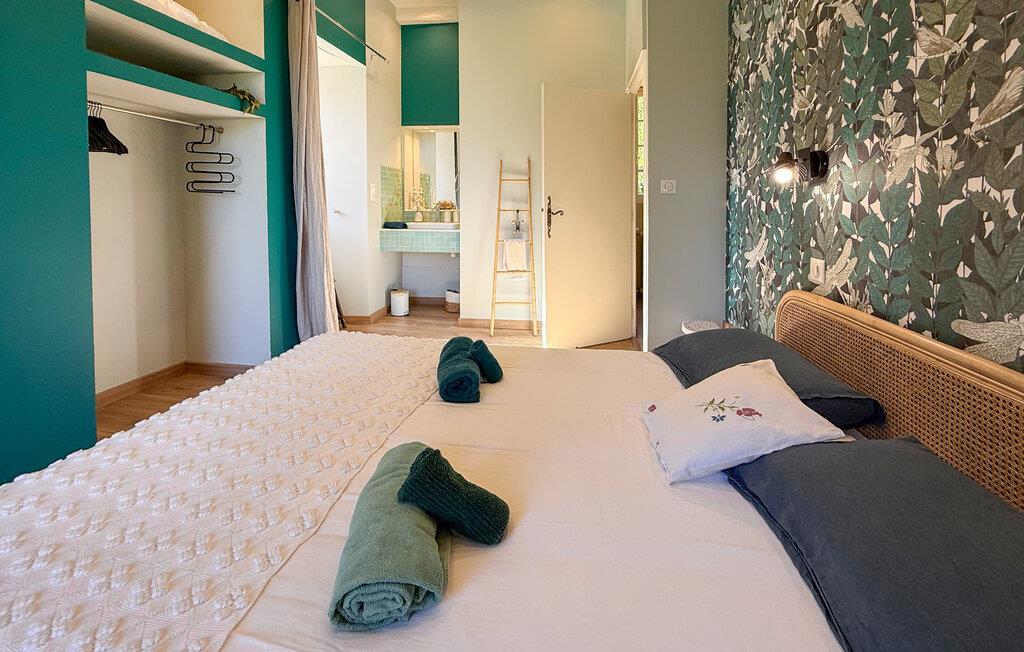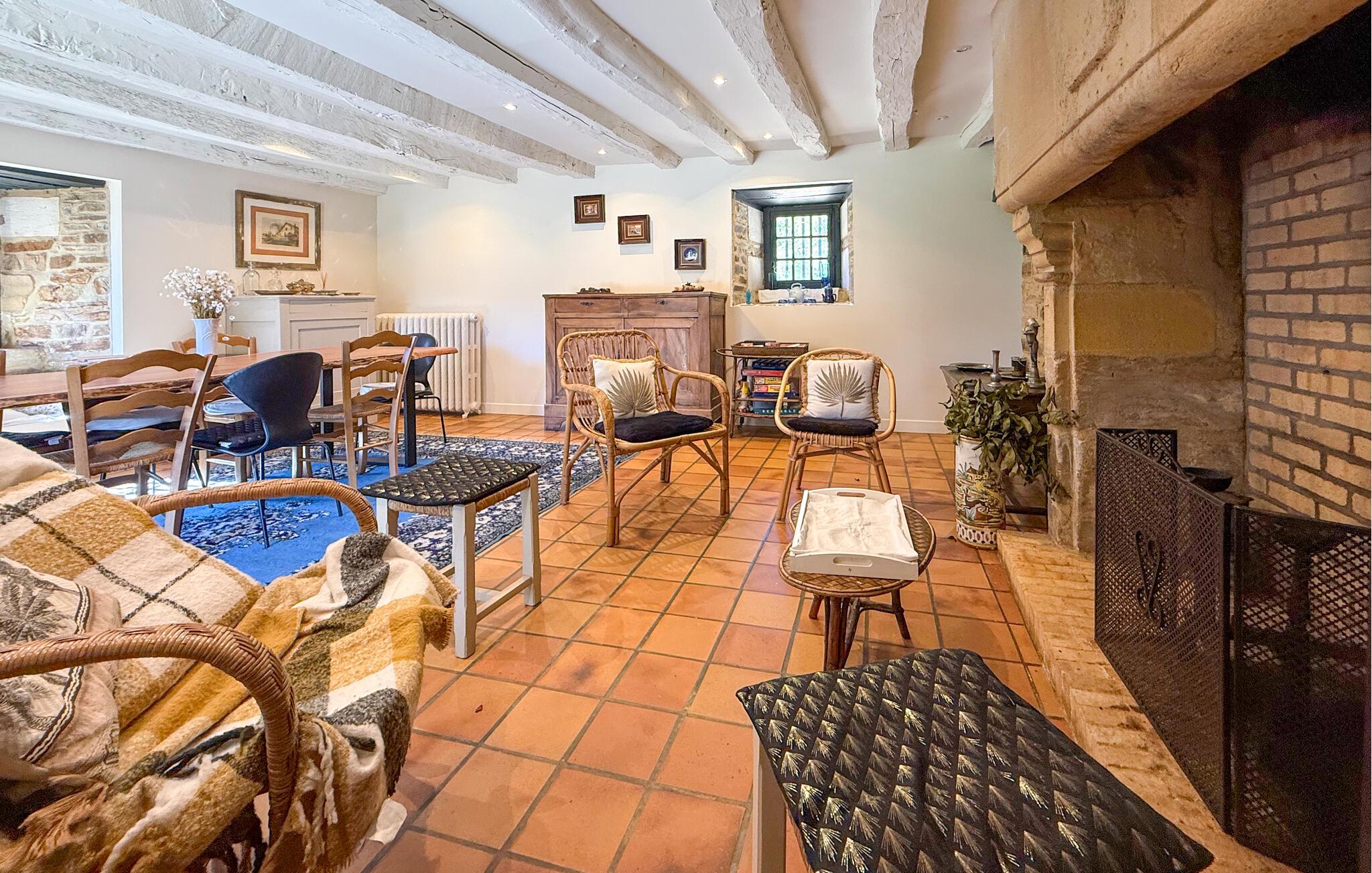 Dieses Landhaus in Saint-Paul-la-Roche, Grünes Perigord Vert, verfügt über einen großen privaten Pool (18 x 8 m), eingebettet in eine natürliche Umgebung entlang des Flusses L'Isle. Das Anwesen verfügt über eine gut ausgestattete Küche mit direktem Zugang ins Freie und ein geräumiges Ess-/Wohnzimmer mit Kamin im Erdgeschoss. Die komfortablen Schlafzimmer befinden sich im ersten und zweiten Stock. Im Außenbereich bietet das Anwesen einen großen Garten mit einem Waldgebiet und einen weitläufigen Pool, der von einem 800 m langen Flussufer begrenzt wird und über ein Sprungbrett und Nachtbeleuchtung verfügt. Das Anwesen umfasst auch ein überdachtes Poolhaus mit Essbereich und eine Bar mit Kühlschrank sowie Sonnenliegen und eine Plancha zum Kochen im Freien. Mit dem bereitgestellten Tisch und den Liegestühlen können Sie ein Picknick am Fluss genießen. Das Anwesen verfügt über mehrere Terrassen mit Sitz- und Essbereichen, die eine schöne Aussicht und einfachen Zugang zur Küche und zum Essbereich bieten. Orte, die Sie während Ihres Aufenthalts besuchen sollten: Brantome: Das Venedig des Périgord. Charmante Stadt mit idyllischer Atmosphäre, in der Sie spazieren gehen, einkaufen und essen können, aber auch eine schöne Kanufahrt unternehmen können. Die Brücken, die die Kanäle überspannen, führen Sie zu den vielen Terrassen, wo Sie die lokale Küche probieren können. Jeden Freitagmorgen gibt es einen schönen Markt. Jumilhac-le-Grand: Diese mittelalterliche Stadt verfügt über ein wunderschönes Schloss und einen großen zentralen Platz mit Terrassen. Das Goldmuseum organisiert Einführungen in das Goldwaschen im Fluss. Buchen Sie rechtzeitig. Thiviers ist die Hauptstadt der Gänseleberpastete. Jeden Samstag gibt es einen traditionellen Bauernmarkt mit vielen regionalen Produkten.