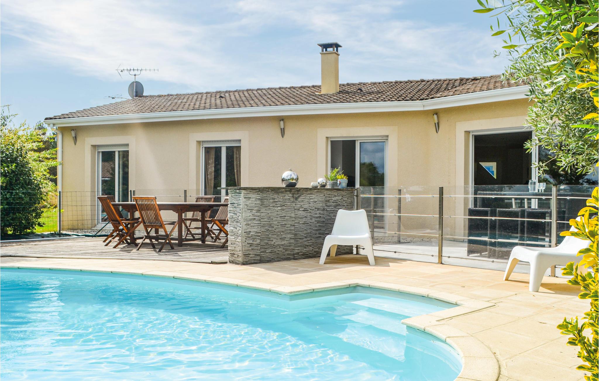 Zu diesem modernen und großzügig geschnittenen Ferienhaus gehören ein 4.000 m² großer Garten und ein nicht beheizter Privatpool, der ab Ende April bis Ende Oktober benutzt werden kann. Das Haus befindet sich am Rande des Dörfchens Saint-Michel-l'Écluse-et-Léparon, 70 km nordöstlich von Bordeaux. In dieser hügeligen Landschaft, die mit ihren Feldern, Wäldern und Teichen einen sehr schönen Eindruck macht, finden Wanderfreunde und Mountainbiker jede Menge Wege und Pfade. Im etwa 8 km entfernten Privatsee des Vermieters können Sie gern auf Zander, Hechte und Karpfen angeln. Erleben Sie die Weinbaugebiete Saint-Emilion und Périgord und erkunden Sie Bordeaux. Auf dem Grundstück befindet sich auch unsere FAD274, jedoch wird jedem Gast ausreichend Privatsphäre zugesichert: Jede Unterkunft hat eine eigenen Privatpool, einen eigenen Garten und eine eigene Zufahrt.