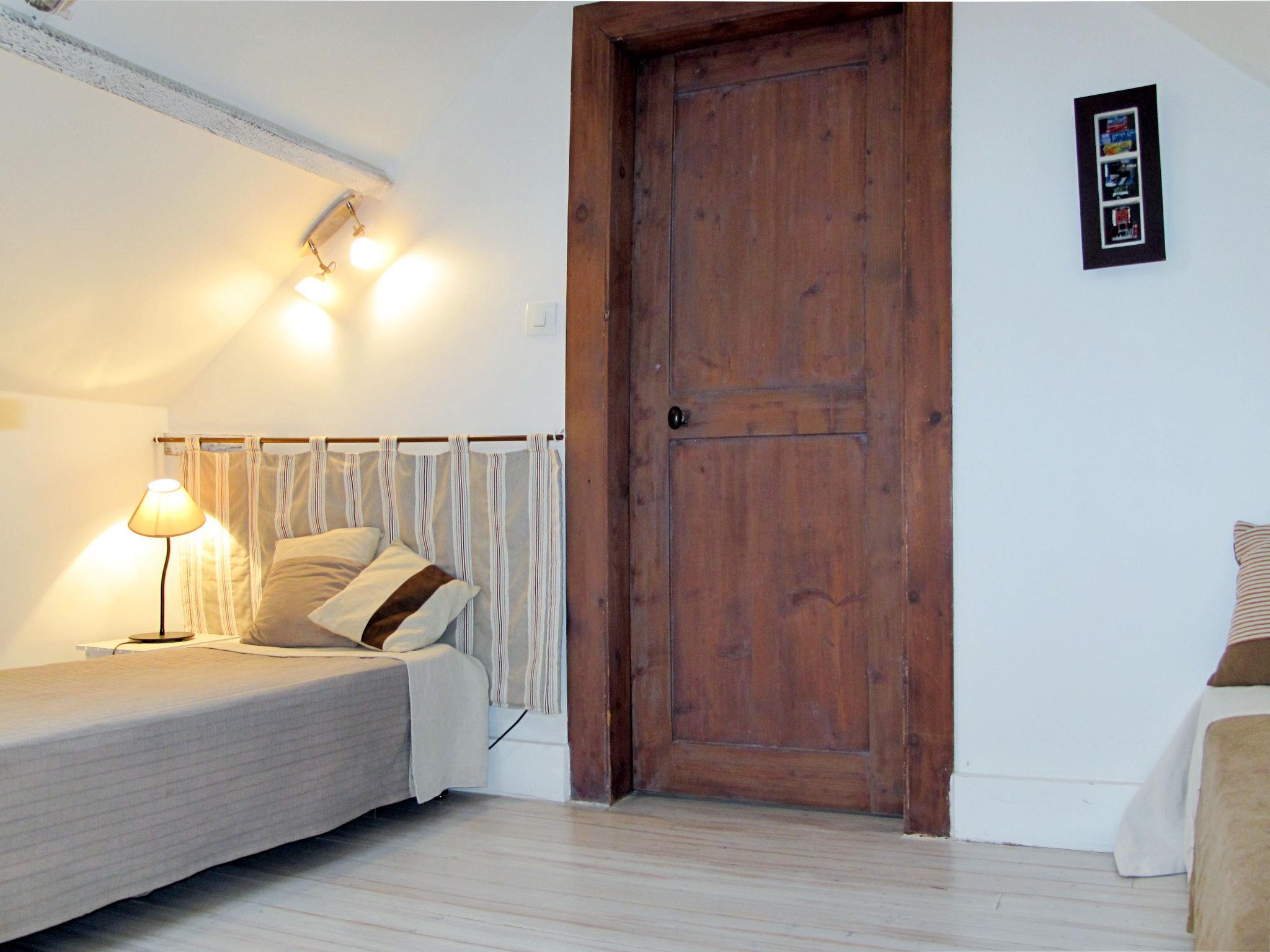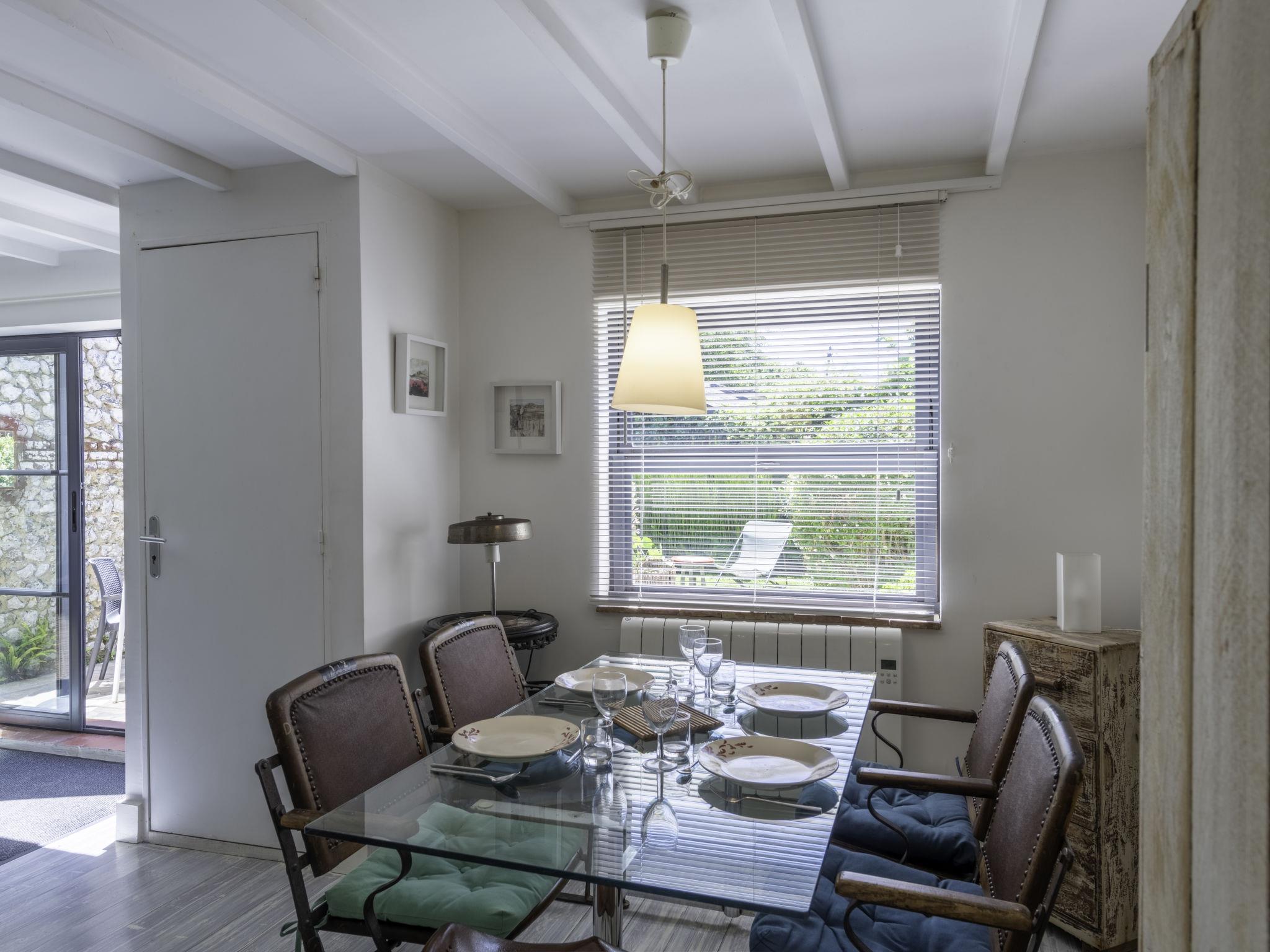 "Entre mer et jardin", 3-room house 53 m2 on 2 levels. Object suitable for 2 adults + 2 children. Bright, comfortable and tasteful furnishings: living/dining room with open-hearth fireplace, dining table, satellite TV, hi-fi system and DVD. Exit to the terrace. Kitchenette (1 hot plate, mini-oven, dishwasher, 3 gas rings, toaster, kettle, microwave, electric coffee machine). Shower/WC. Upper floor: open walk-through room with sloping ceilings with rooflight with 2 beds (80 cm). Interconnecting room with sloping ceilings with rooflight with 1 french bed. Electric heating. Parquet floors. Terrace, garden 100 m2. Terrace furniture. Facilities: baby cot. Internet (WiFi, extra). Please note: non-smoking house. FR03684