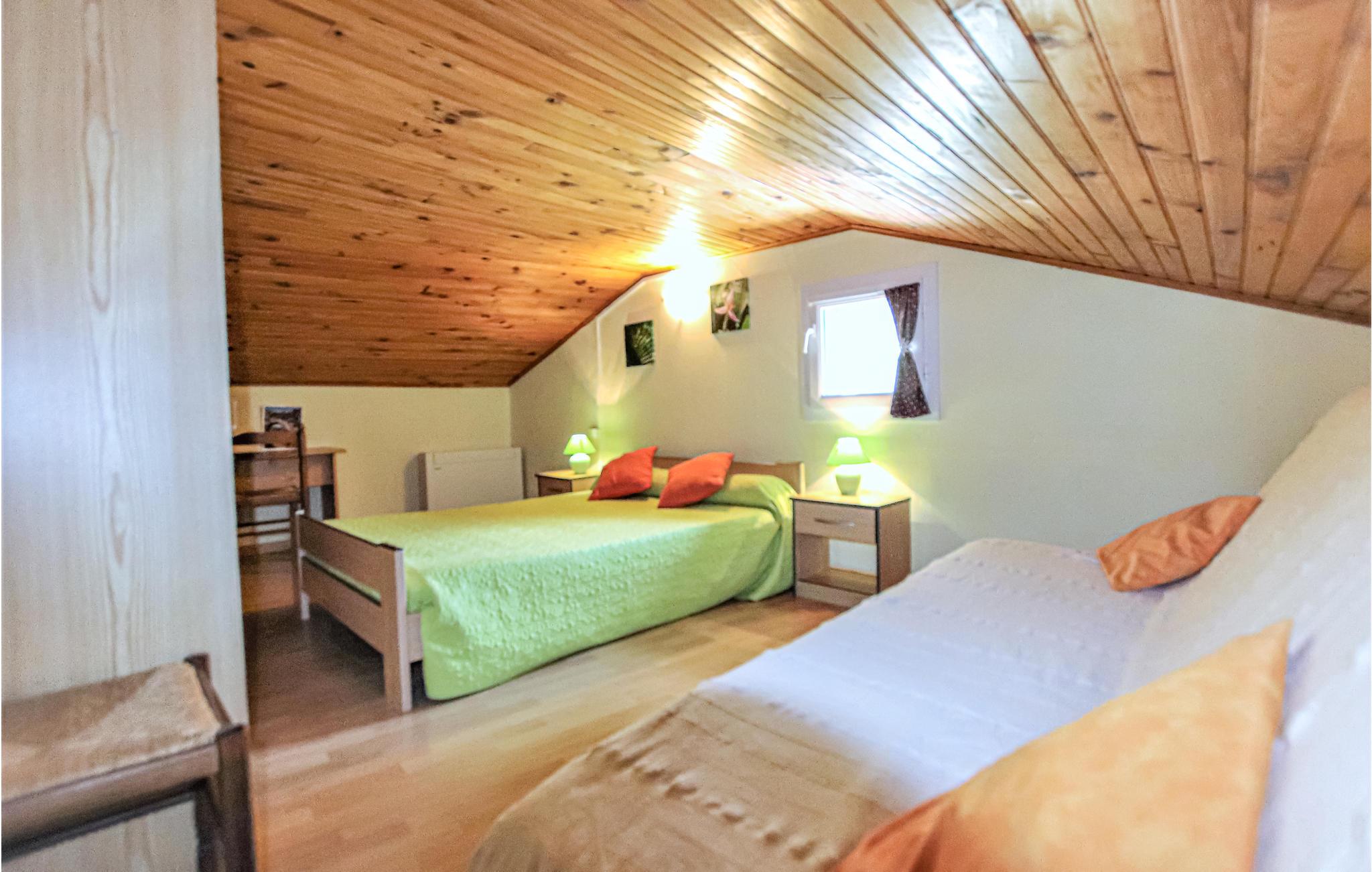 Die Innenräume schaffen mit warmen Farben und Holzdecken eine freundliche Atmosphäre. Nutzen Sie die praktische Küche mit Esstisch, der einen Blick in den Garten ermöglicht, für Ihre Mahlzeiten. Verbringen Sie gemeinsame Stunden im Wohnbereich, der mit Sitzgelegenheiten ausgestattet ist und gestalten Sie Ihre Abende entspannt.
