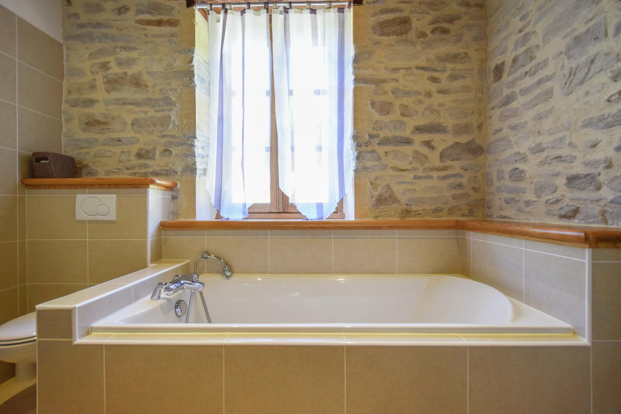Located in the tranquil Domaine d'Essendiéras near Saint-Médard-d'Excideuil, this luxurious villa accommodates up to 12 guests. Surrounded by forest and close to a lake, it offers a peaceful escape just 5 km from the town center and amenities. The villa features five en-suite bedrooms, including one with a king-size bed and another with a bunk bed, all equipped with satellite TV offering Dutch and international channels. The spacious living room includes a fireplace and DVD player, while the open kitchen is fully equipped with modern appliances. Additional comforts include a conservatory, pantry with laundry facilities, and multiple heating options. Outdoors, guests can enjoy a private garden and terrace with sun loungers and a charcoal BBQ, perfect for relaxing or dining al fresco. Recreational amenities abound, with a private heated pool (open May–September), shared tennis court, boules court, trampoline, and play equipment. Bicycles are available for exploring the scenic surroundings. Family-friendly features like a children’s bed and high chair are available on request, making this villa ideal for both relaxation and adventure.