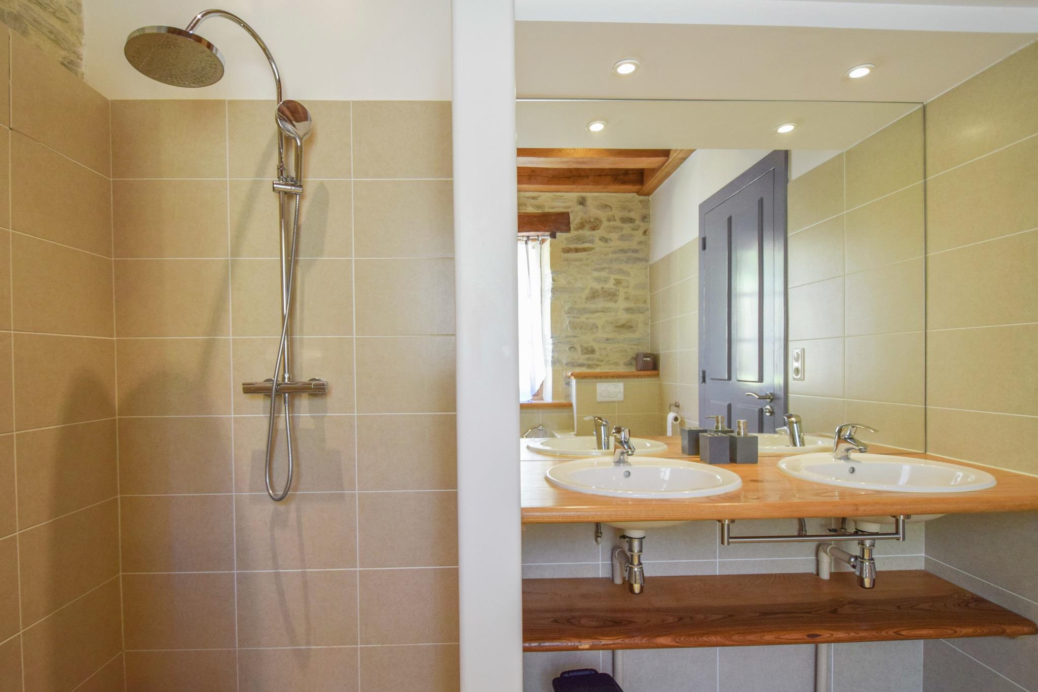 Ground floor: (Living room(TV(satellite, dutch television channels, international television channels), fireplace, DVD player), open kitchen(cooker(4 ring stoves), oven, microwave, dishwasher, fridge-freezer), Bedroom with bathroom(double king size bed(twin duvet , synthetics), TV(satellite, dutch television channels, international television channels), bath tub, shower, 2x washbasin, toilet), toilet) On the 1st floor: (Bedroom with bathroom(double bed or 2 single beds(duvet, synthetics, boxspring), TV(satellite, dutch television channels, international television channels), shower, washbasin, toilet), Bedroom with bathroom(double bed or 2 single beds(duvet, synthetics, boxspring), TV(satellite, dutch television channels, international television channels), shower, washbasin, toilet), Bedroom with bathroom(double bed or 2 single beds(duvet, synthetics, boxspring), TV(satellite, dutch television channels, international television channels), shower, washbasin, toilet), Bedroom with bathroom(bunk bed(duvet, synthetics), double bed or 2 single beds(duvet, synthetics, boxspring), TV(satellite, dutch television channels, international television channels), shower, washbasin, toilet), pantry(tumble dryer, washing machine)) conservatory/veranda, carport, coffee machine, bathtub or shower, heating(electric, central, floor heating), heating, terrace(private), garden(private), garden furniture, sun loungers, BBQ(charcoal), parking, trampoline(shared with other guests), swimming pool(private, heated, fenced, opened from May upto and including Sep), tennis court(shared with other guests), boules court(shared with other guests), play equipment(shared with other guests), bicycles available, children's bed(on request), high chair(on request), ironing board
