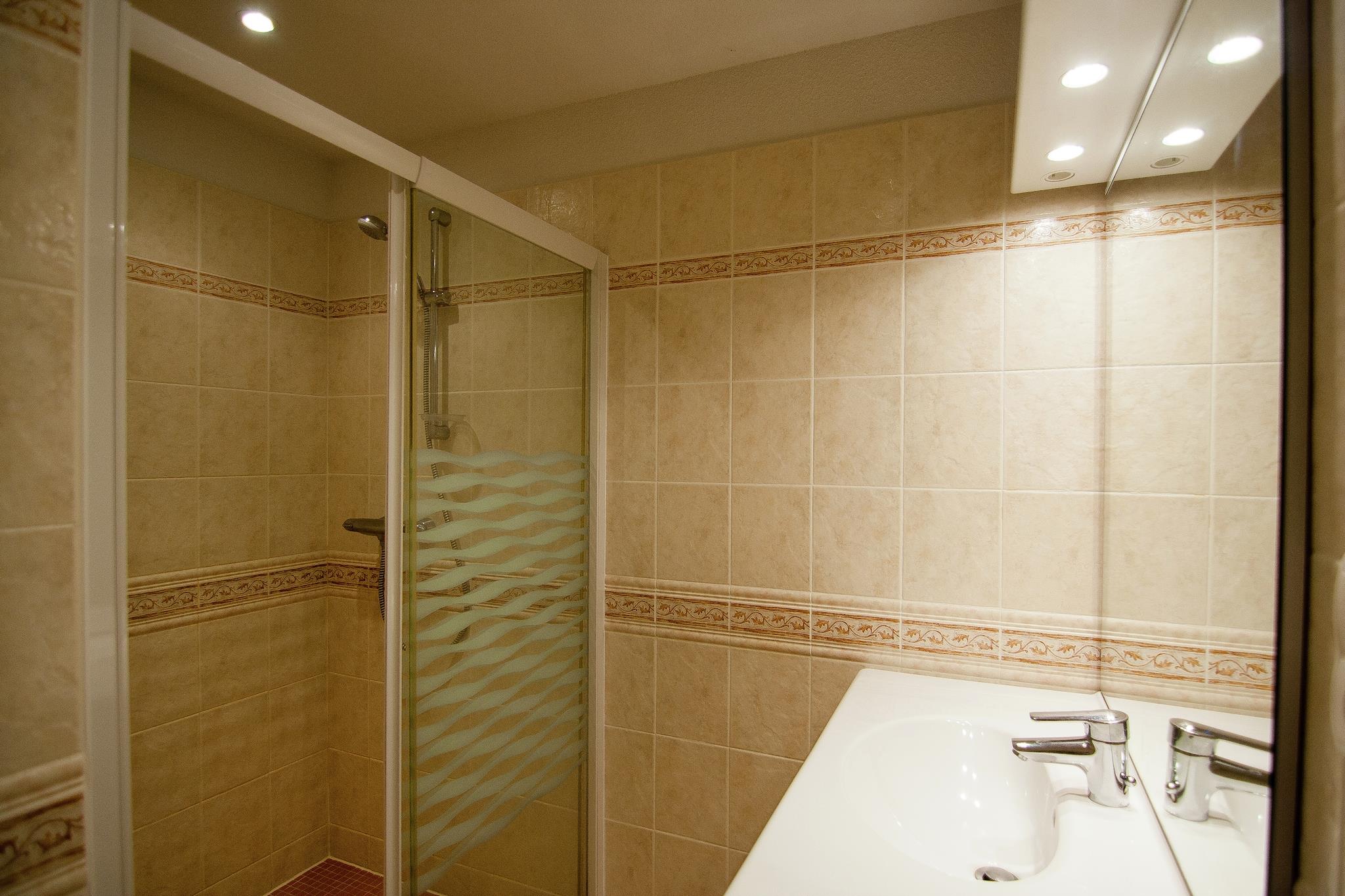 Ground floor: (bedroom(double bed or 2 single beds(duvet, synthetics, boxspring)), bedroom(double bed or 2 single beds(duvet, synthetics, boxspring)), bathroom(shower, washbasin), toilet) On the 1st floor: (Living room(TV(satellite, dutch television channels, international television channels), seating area), Kitchen(cooker(4 ring stoves), coffee machine(filter), oven, microwave, dishwasher), bedroom(double bed or 2 single beds(duvet, synthetics, boxspring)), bathroom(shower, washbasin), toilet, pantry(fridge-freezer, tumble dryer, washing machine)) heating(electric), terrace(private, roofed), garden(private), garden furniture, BBQ(charcoal), parking, trampoline(shared with other guests), deckchairs, parasol, swimming pool(private, heated, fenced, 9 x 4 m., opened from Jun upto and including 1/2 Sep), tennis court(shared with other guests), boules court(shared with other guests), play equipment(shared with other guests), bicycles available, children's bed(on request), high chair(on request)
