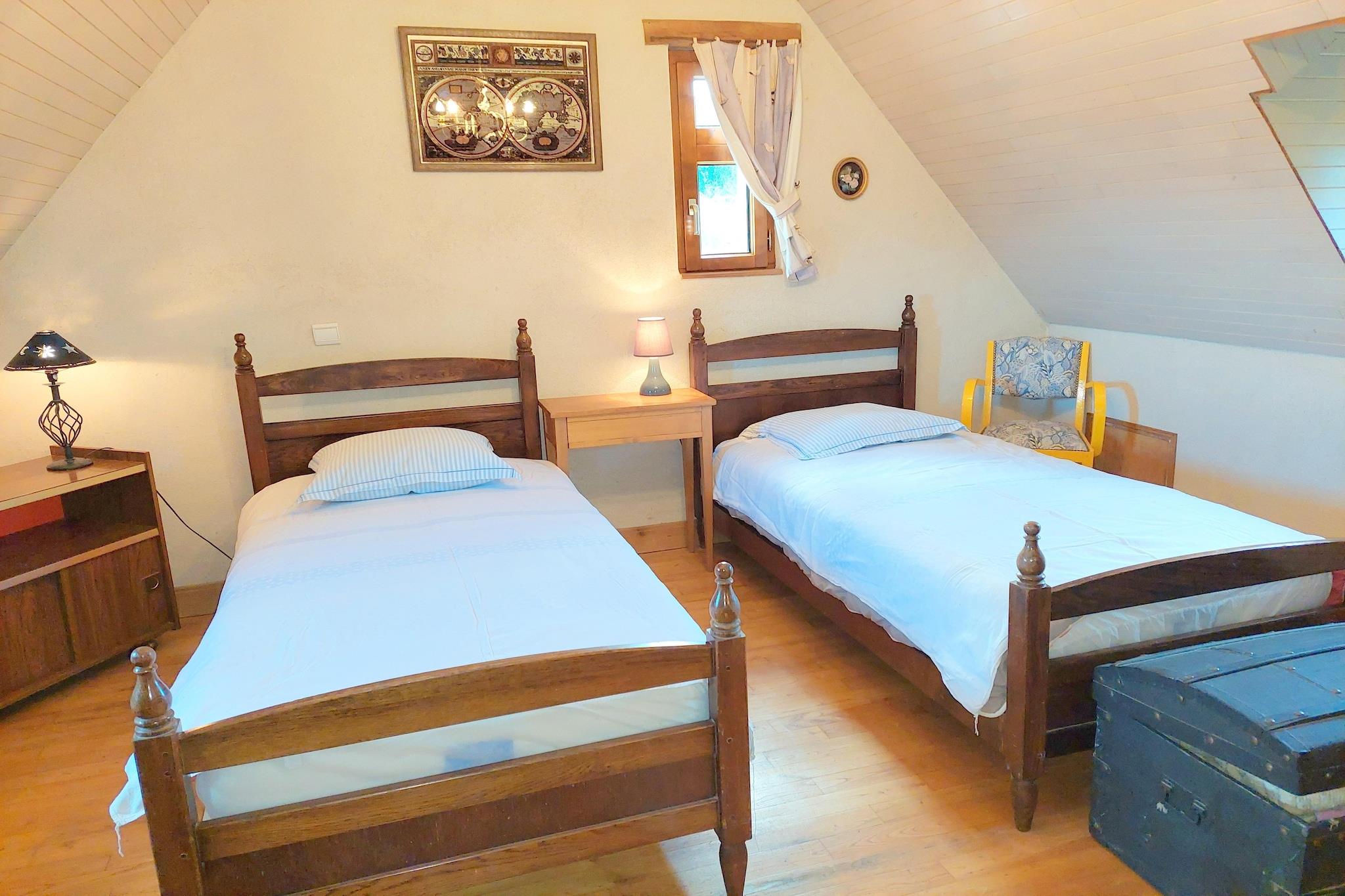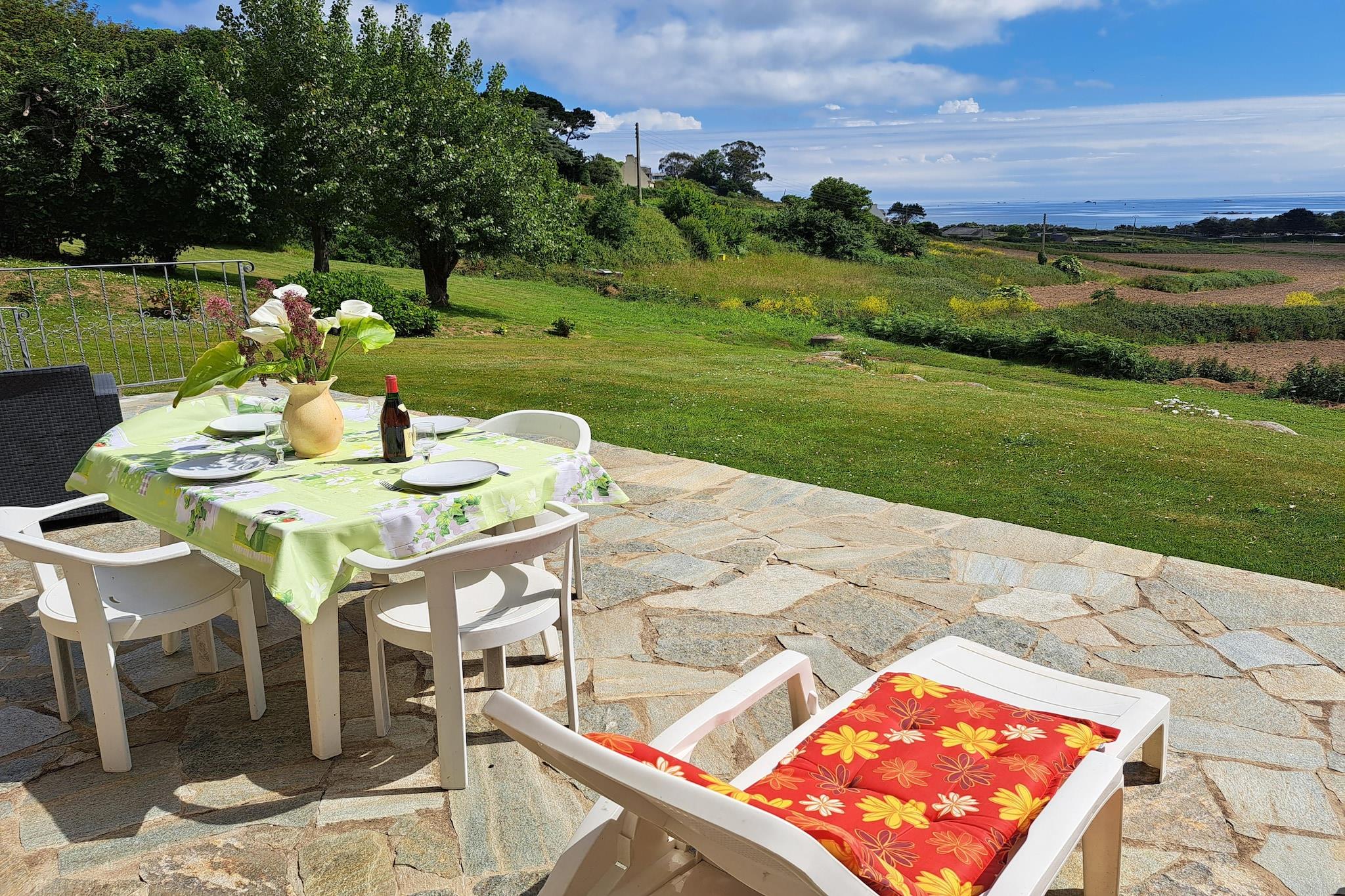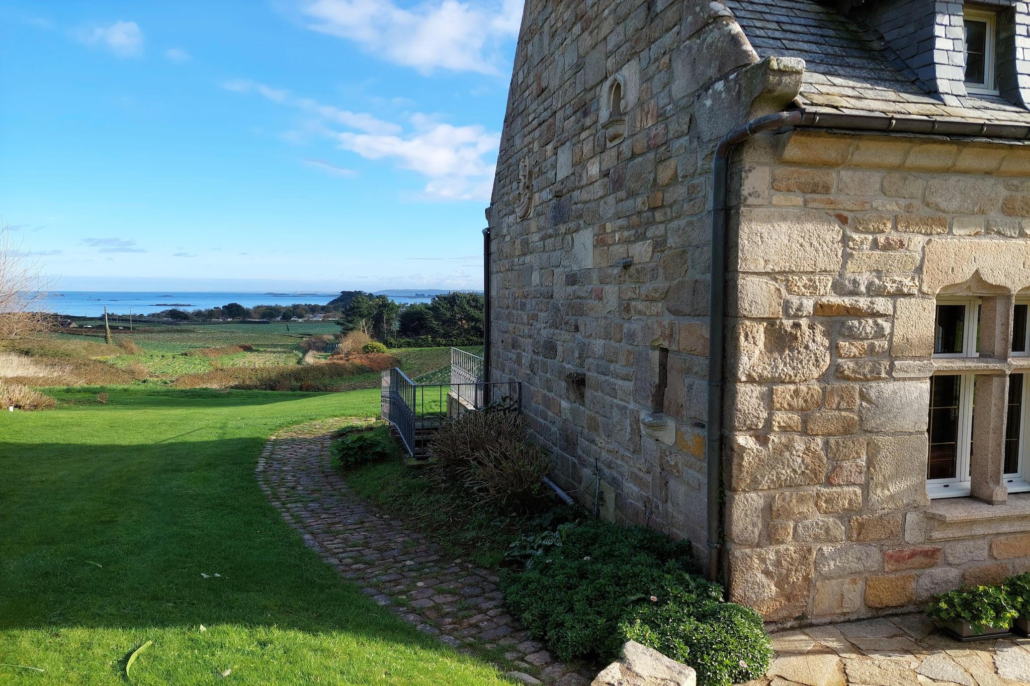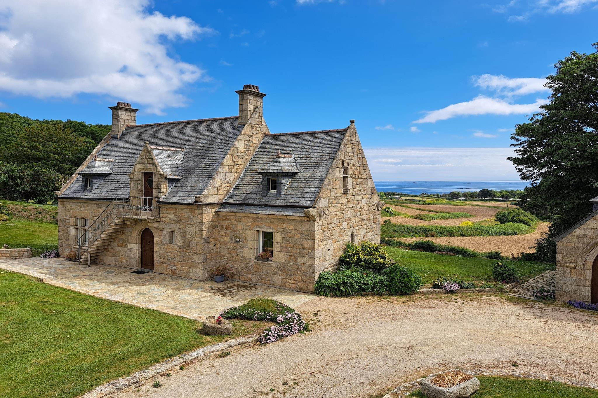 The sea as far as the eye can see! The imposing granite stone house is located on a large natural plot with a shared parking space for another small unit, which is also used as a holiday home. There is a 1,400 square meter private garden area at your disposal. The stones of the traditional building come from two former mansions. The huge open fireplace in the living room and the classic wooden beam ceilings underline the rustic, almost castle-like character of the house. Enjoy the quiet location and the unobstructed, fantastic sea view right down to the sandy beach, which is only 800m away, at breakfast in the morning with baguettes, croissants and crêpes. A bedroom upstairs. has its own charming staircase that can be accessed from the outside, but is also accessible from the inside. Depending on the position of the sun, you can relax on the terrace in front of or behind the house. The artichoke metropolis of St. Pol de Léon is certainly one of the most attractive and picturesque towns in Brittany, with its majestic cathedral and the historic circular chapel, from whose tower (accessible via 162 steps) you can enjoy a wonderful panoramic view of the entire region. There is a lively market on Tuesdays in St Pol de Léon and on Wednesdays in Roscoff. From the port and health resort of Roscoff, boat trips to the offshore island of Batz are offered. On the island you can visit, among other things, a beautiful palm garden. In August, Roscoff hosts the traditional Onion Festival.