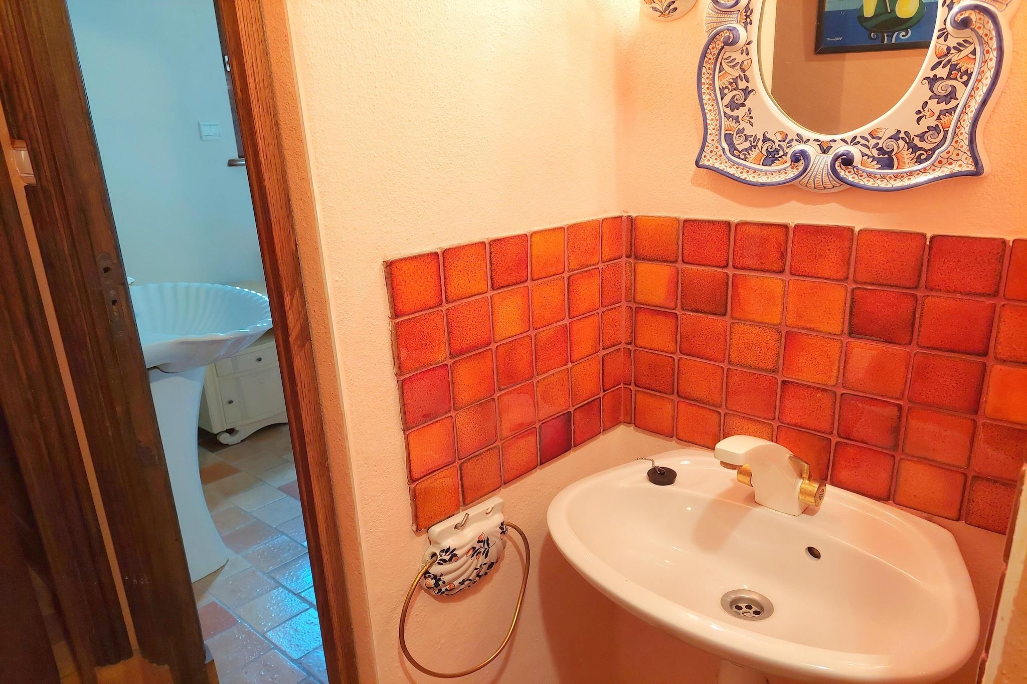 Ground floor: (open kitchen(electric kettle, toaster, cooker(4 ring stoves, ceramic), coffee machine, oven, microwave, dishwasher, fridge-freezer), Living/diningroom(TV(satellite, german television channels), fireplace), bedroom(double king size bed(180 x 200 cm)), bathroom(bath tub), toilet) On the 1st floor: (bedroom(double bed(160 x 200 cm)), bedroom(single bed(90 x 200 cm), single bed(90 x 200 cm)), bathroom(shower), toilet, mezzanine(seating area)) cot, washing machine, heating(oil), terrace(40 m2), terrace(40 m2), garden(1400 m2), garden furniture, sun loungers, BBQ, parking, high chair, lounge set, Sunscreen