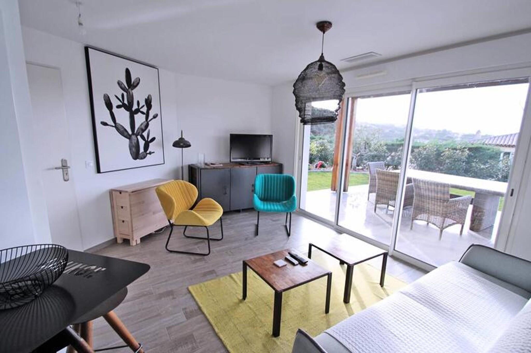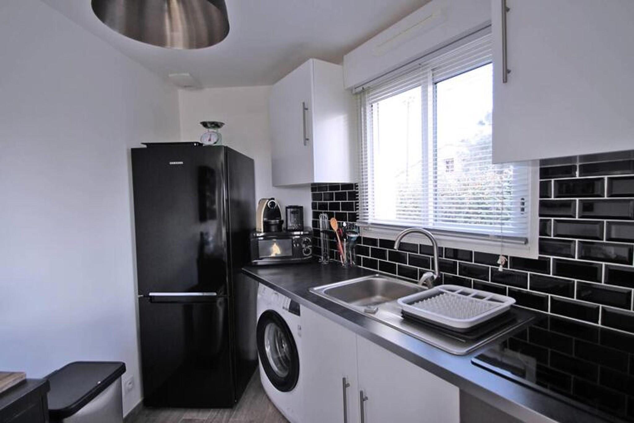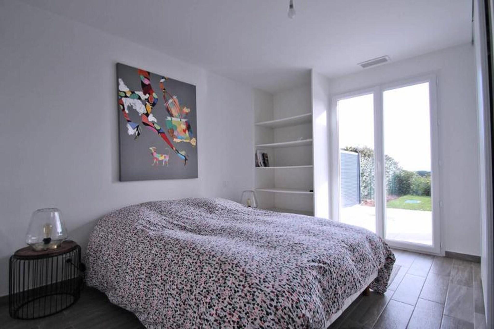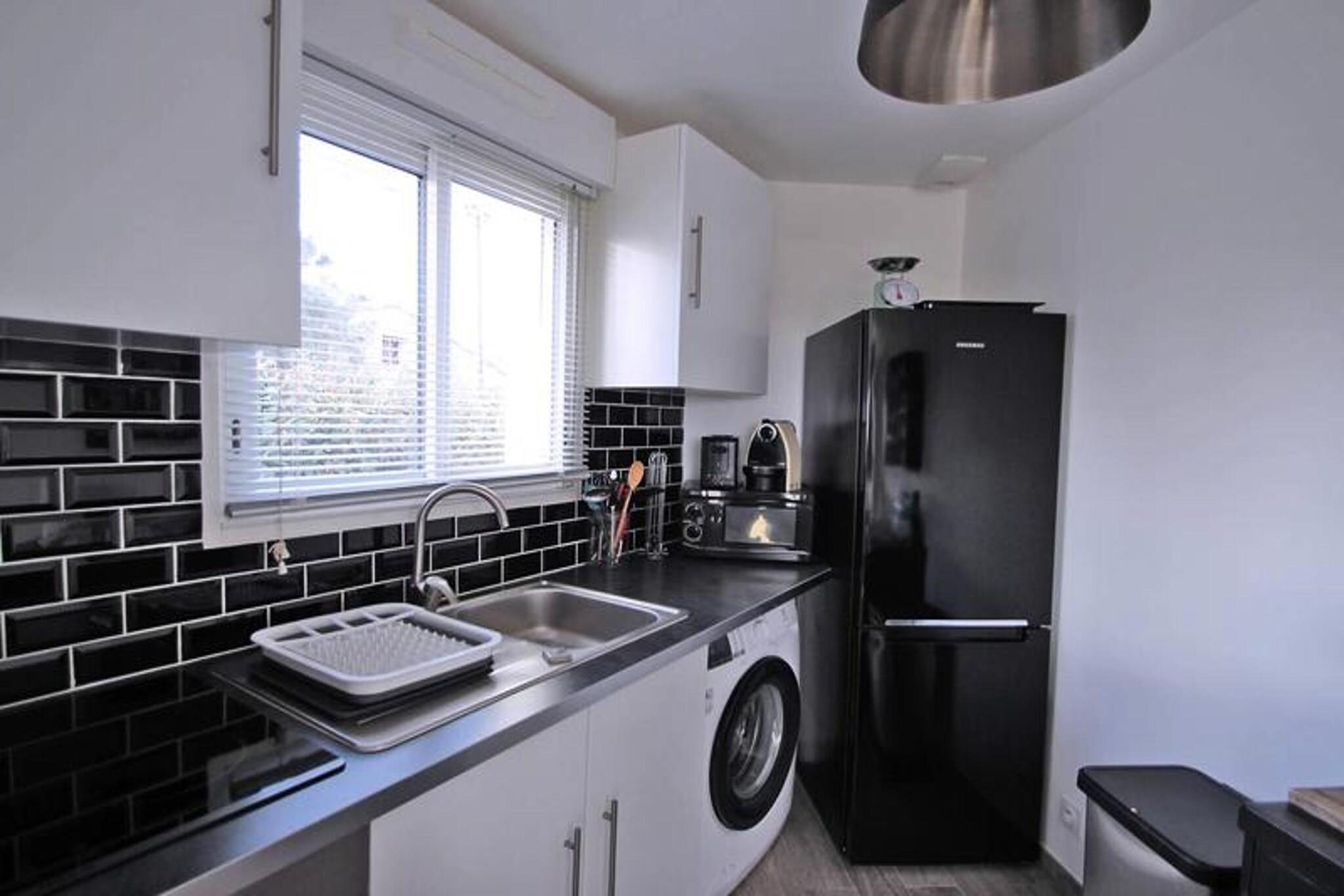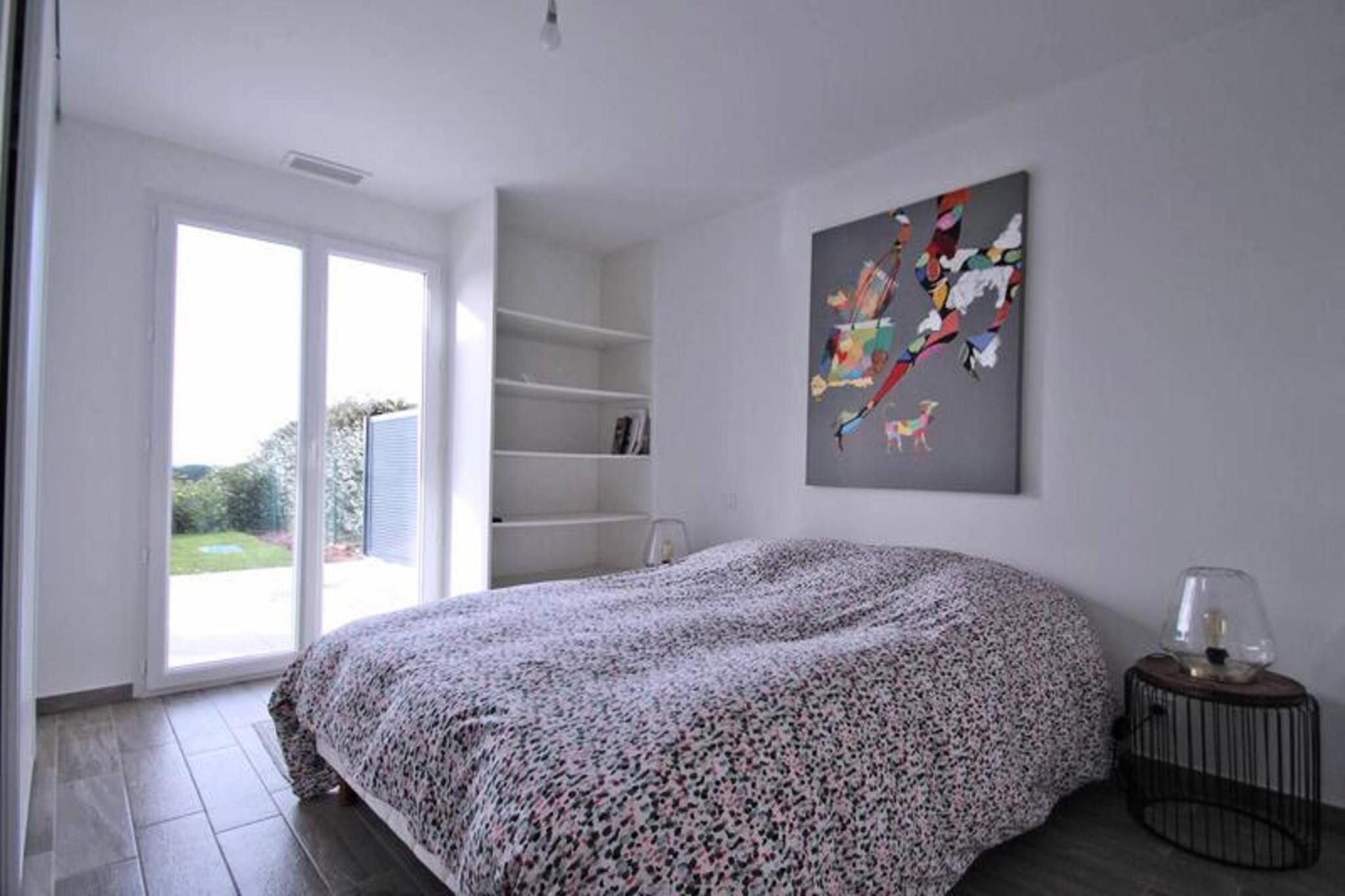 This charming 2-room apartment, located on the ground floor, offers a serene retreat for up to 4 guests. The apartment features a beautifully air-conditioned living room with a spacious sofa bed, a flat-screen television, and a dining area. The open-plan kitchen is fully equipped with modern amenities such as a 4-burner hob, microwave, oven, refrigerator, freezer, washing machine, and coffee maker, perfect for preparing your favorite meals. The air-conditioned bedroom boasts a 140cm bed, a dressing room, and access to the private terrace. The bathroom includes a walk-in shower, vanity unit, and storage space, complemented by a separate WC. Ideal for a quiet getaway, this apartment is situated in a peaceful residence with a private garden and sea view. Guests can enjoy the beautiful outdoor terrace with dining furniture and an awning, while also benefiting from the shared facilities, including a swimming pool (closed from October to May) and a pétanque court. The residence is also equipped with underground parking and a private space for bicycles or two-wheel vehicles, all accessible by elevator. The apartment is fully equipped with WiFi and air conditioning, ensuring comfort throughout your stay. Located just 1.8 km from the city center and the beach, with shops only 800m away, the apartment offers easy access to local amenities. Additionally, the property is accessible to people with reduced mobility, ensuring a convenient and comfortable stay for all. With its excellent location, serene atmosphere, and modern amenities, this apartment is perfect for a peaceful vacation.