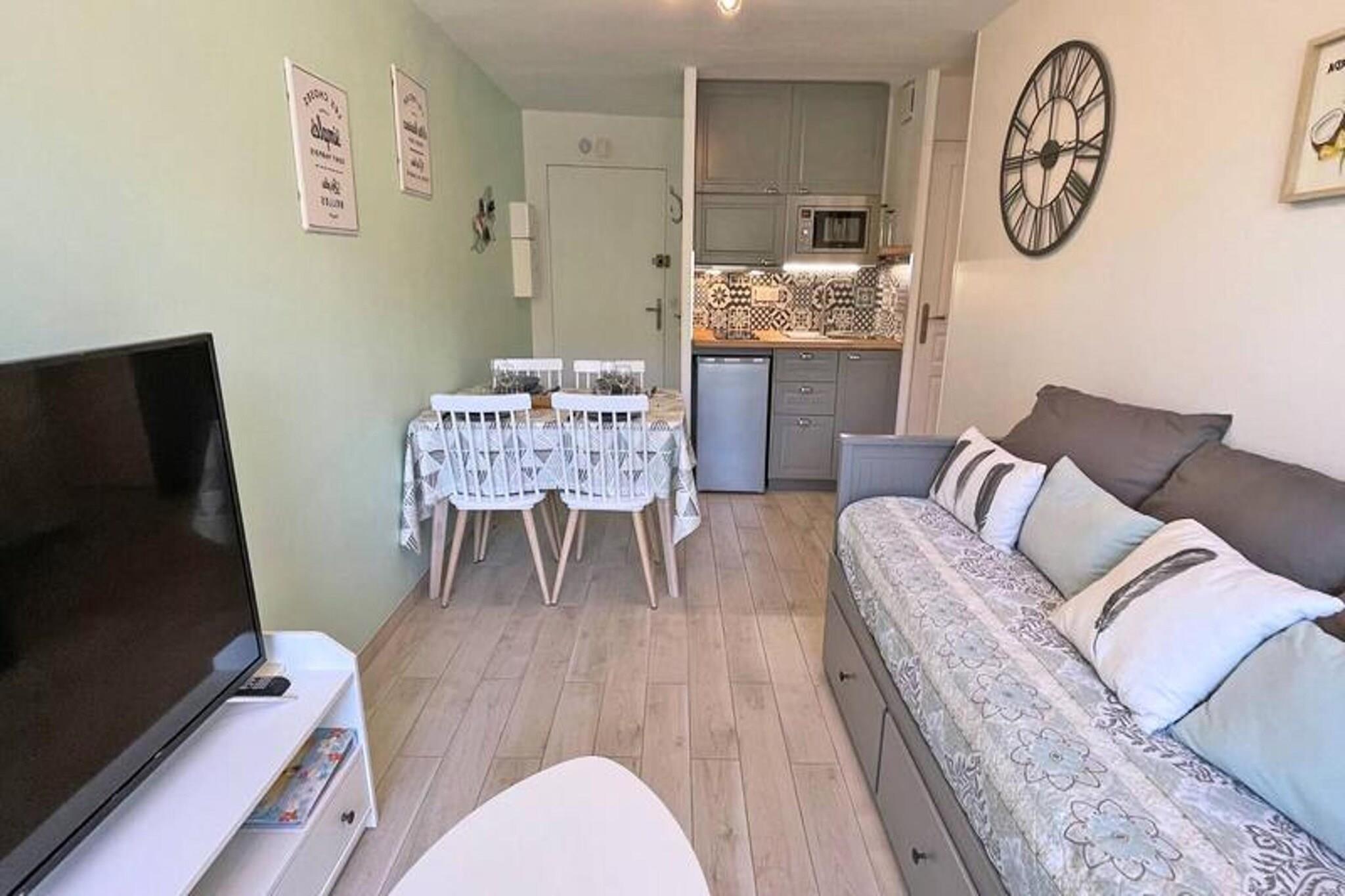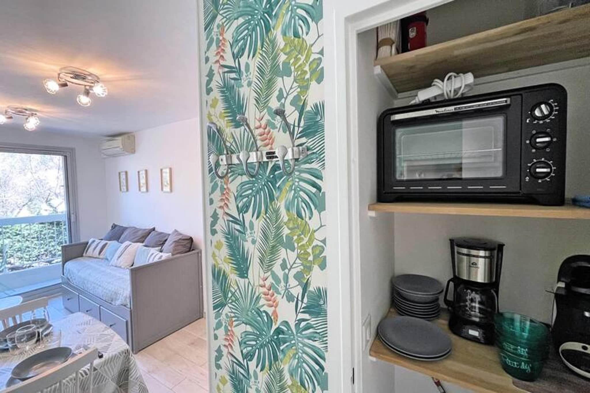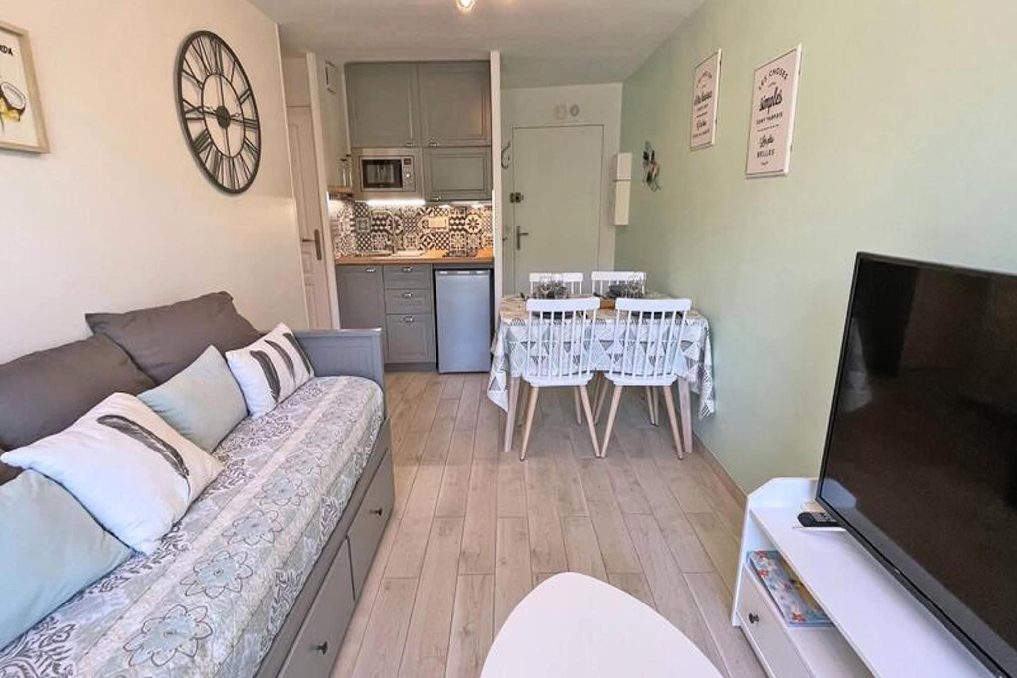 This cozy 27m² apartment on the 1st floor of Résidence Golfe Bleu is ideal for up to three guests. It features a living room with an air-conditioned seating area, a convertible sofa bed (80cm), a TV, and a dining table with balcony access. The kitchenette is equipped with a mini-oven, microwave, 2-burner induction hob, Tassimo coffee maker, and a small refrigerator with a freezer compartment. The bedroom includes a 140cm double bed, storage space, air conditioning, and a TV. The apartment also offers a bathroom with a shower and washing machine, along with a separate WC. The 3m² balcony is perfect for enjoying meals outdoors, and a private parking space is provided in the residence, though access through a tunnel may be tight for large vehicles. Located in the city center, it’s just 400m from the beach and 200m from shops, making it an excellent choice for exploring on foot. The apartment offers air conditioning and WiFi but does not allow pets. Additional conveniences include secure parking, essential kitchen amenities, and proximity to local attractions. Ideal for a relaxing getaway, this apartment combines comfort and practicality in the heart of Sainte-Maxime.