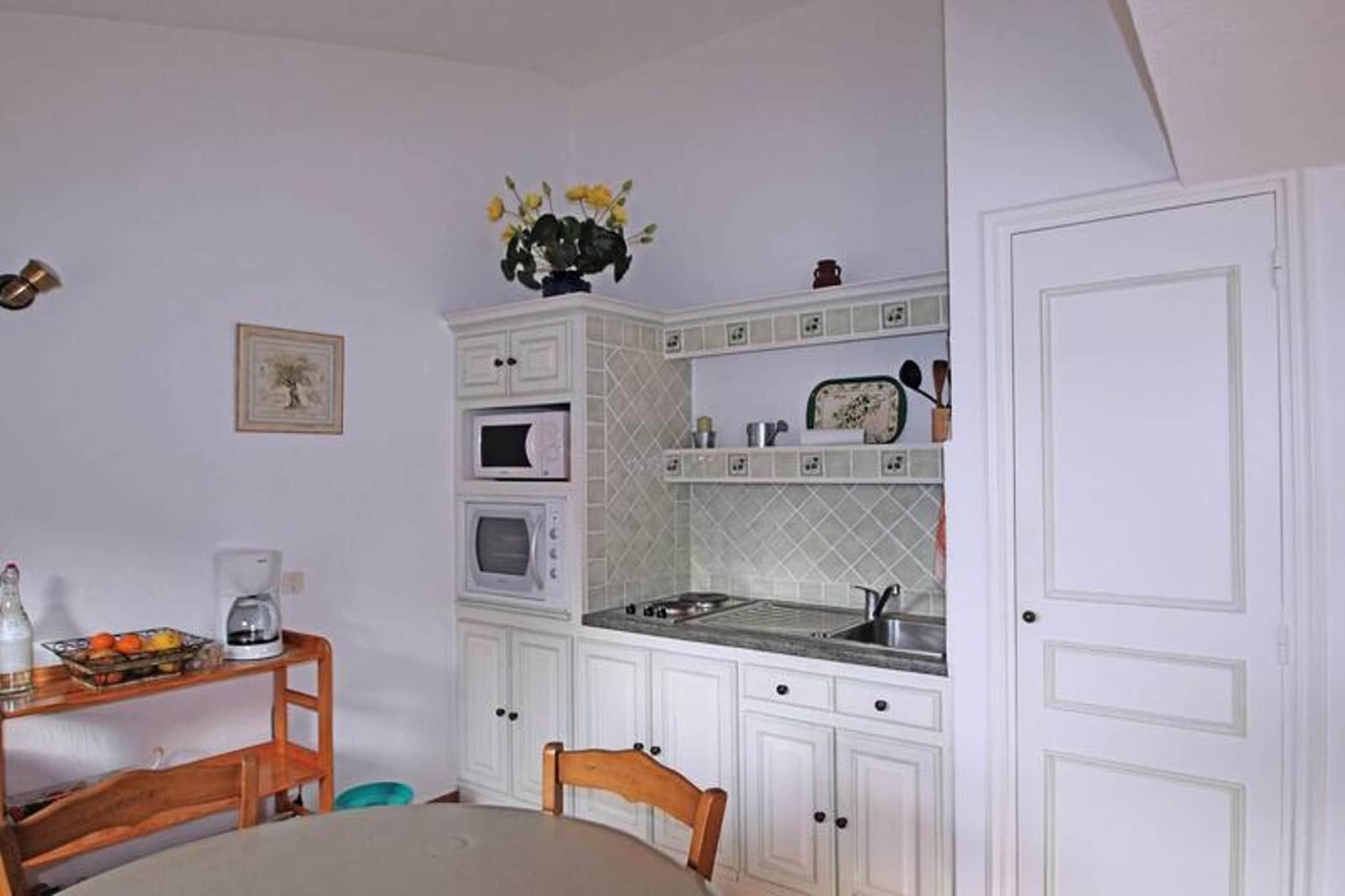 This cozy 2-room apartment offers comfortable accommodations for up to 4 people, ideal for a relaxing getaway. The air-conditioned living room features a 140cm quick sofa bed, a flat-screen television, and access to the terrace, while the bedroom has a 140cm double bed and storage space. The apartment is located in a peaceful residence with a swimming pool (closed from October to May) and tennis courts. Pets are not allowed, ensuring a quiet, comfortable environment for all guests. The apartment is situated 1.8km from both the city center and the beach, allowing easy access to local attractions and the vibrant seaside atmosphere. Shops are just 800 meters away, and the surrounding area offers beautiful hill views, perfect for unwinding after a day of exploration. Enjoy the pleasant location with a blend of quiet and convenience. The property features a well-equipped semi-independent kitchen with modern appliances, including a 2-burner induction hob, fridge, freezer, washing machine, oven, and microwave. The bathroom is fitted with a vanity unit and a shower, while the independent WC ensures additional privacy. The 20m² terrace with dining and relaxation furniture provides a perfect space for outdoor meals or enjoying the fresh air.