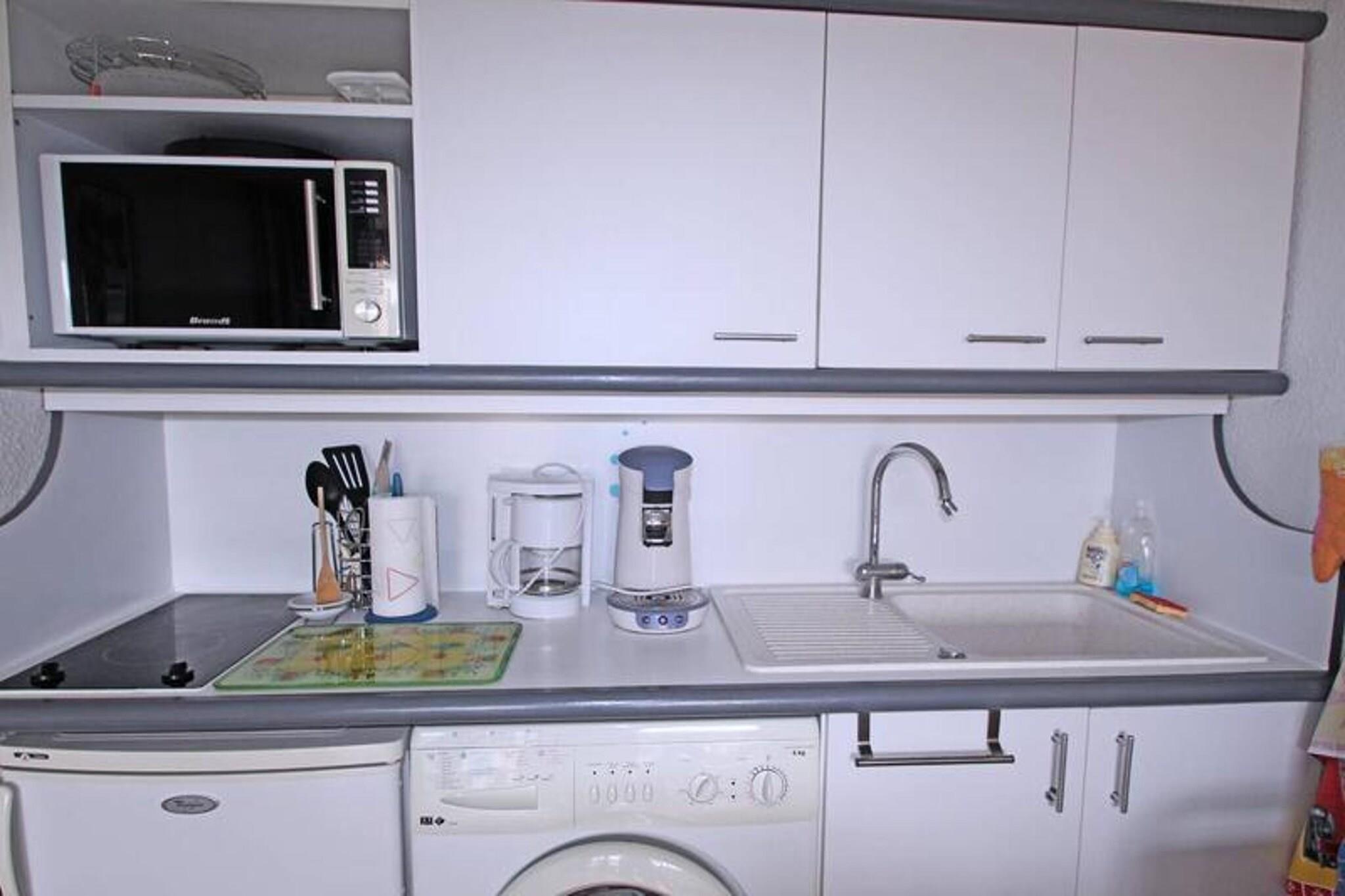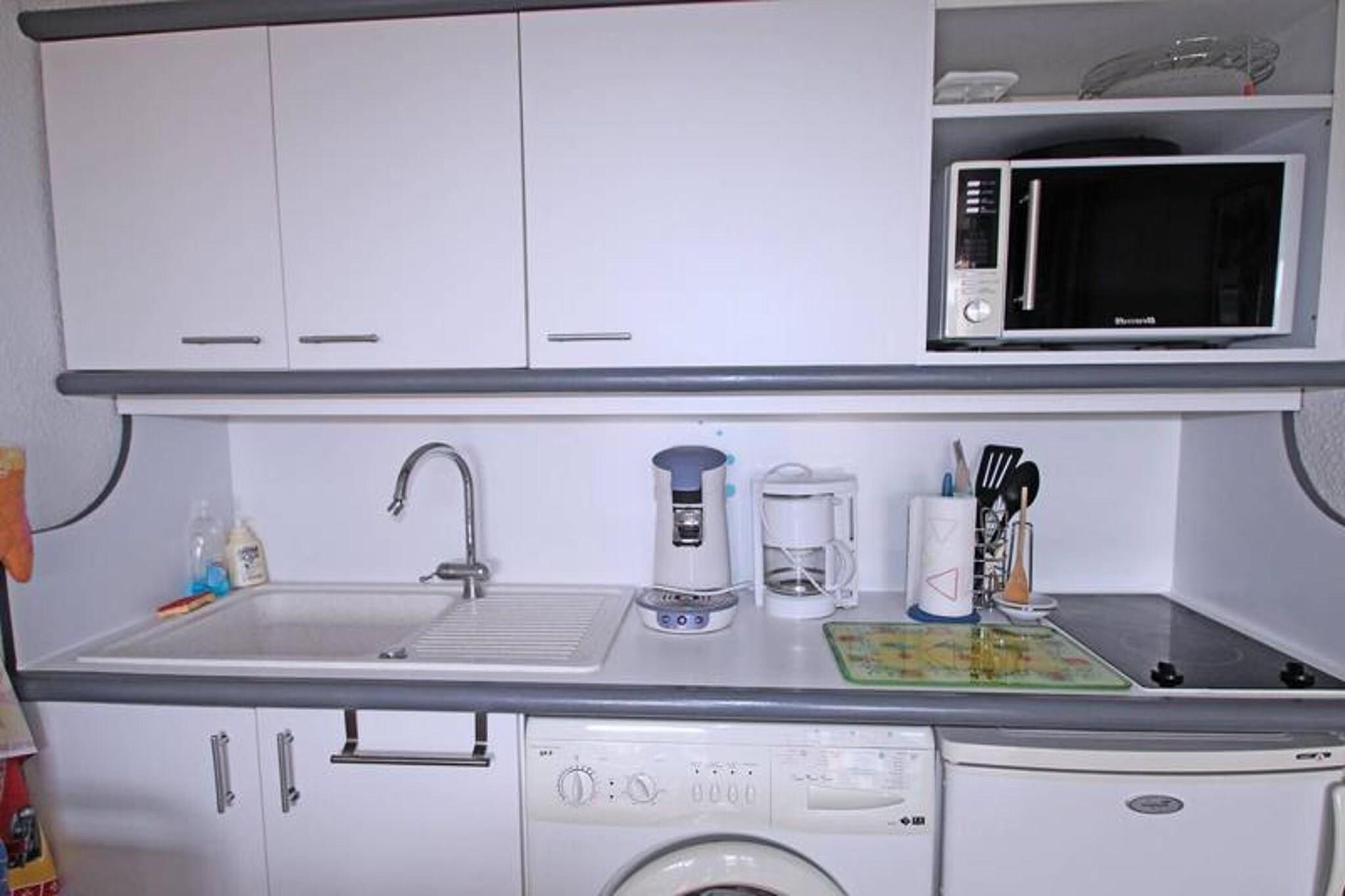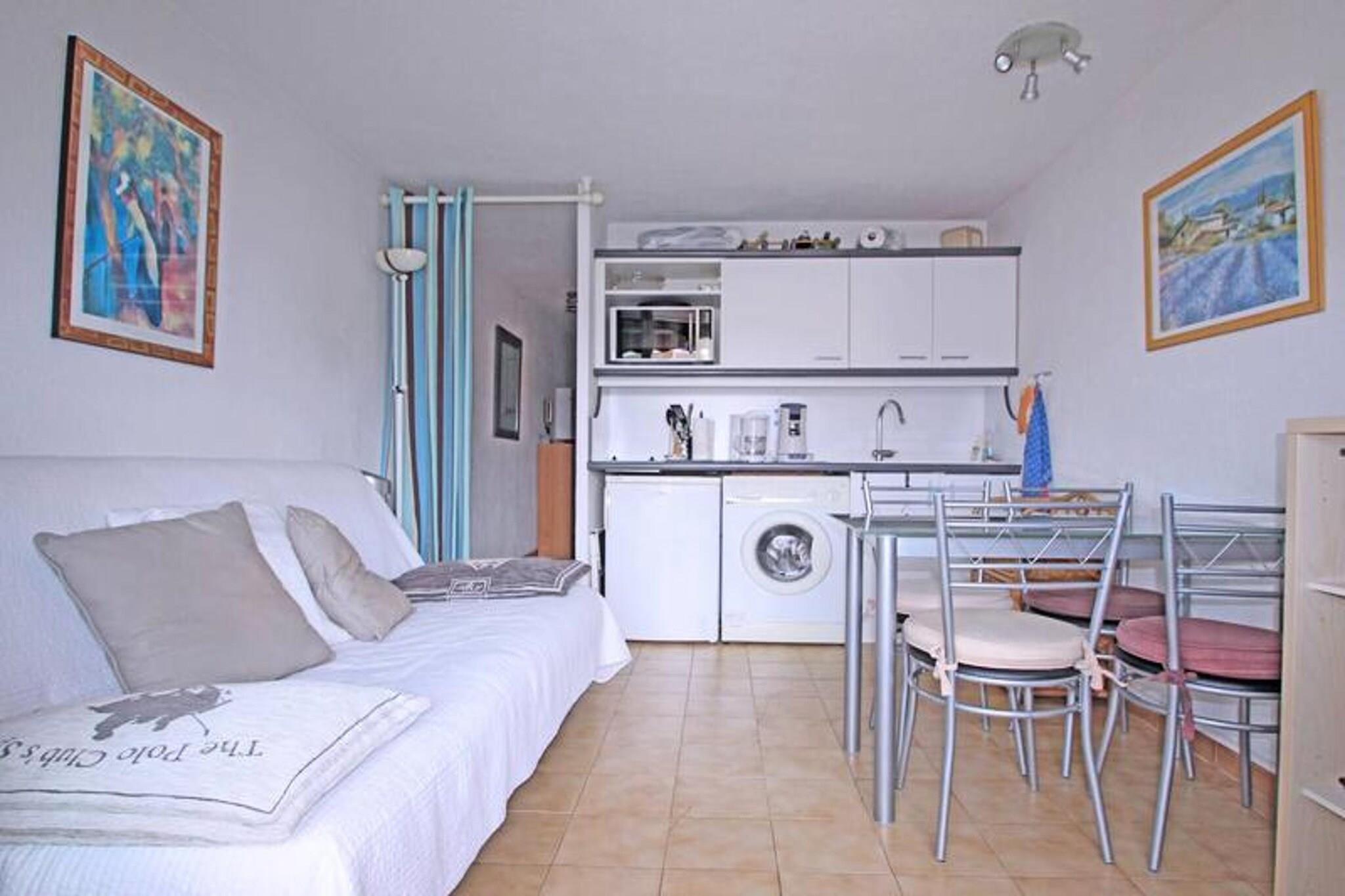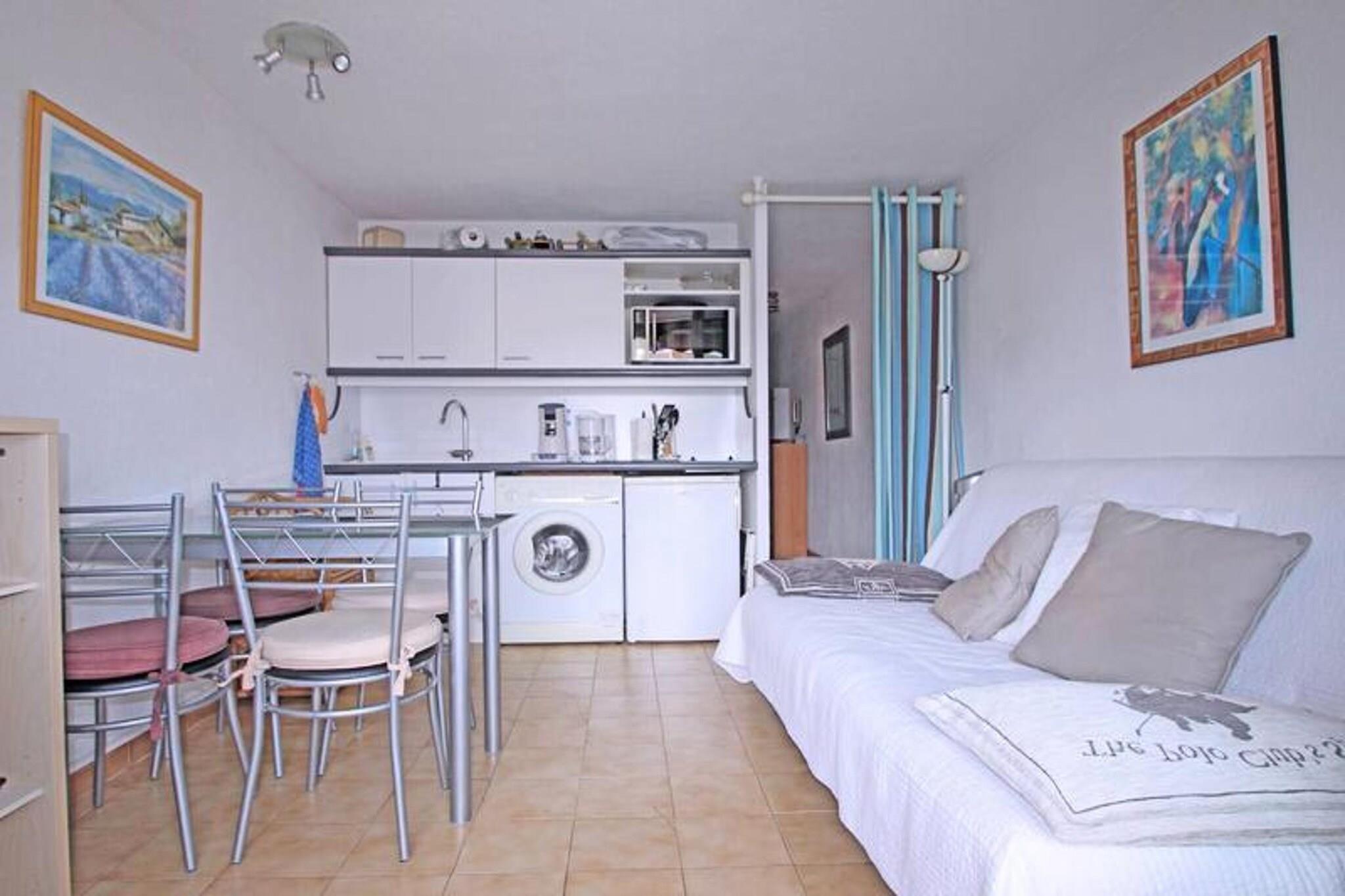 This charming 24m² cabin studio apartment is located on the 4th floor of a residence in downtown Sainte-Maxime and is perfect for up to 4 guests. The air-conditioned living room features a 140 cm sofa bed, a flat-screen television, and a dining area with a table and chairs. The open kitchen is well-equipped with a refrigerator, freezer compartment, microwave, coffee maker, and washing machine. The cabin offers a cozy double bed (140 cm), and the bathroom includes a shower cubicle and vanity unit. The apartment also has a separate WC and a west-facing terrace with outdoor furniture and an awning, ideal for enjoying the warm evenings. Guests will enjoy the apartment's prime location, just 150 meters from the city center and 300 meters from the beach, making it easy to explore the area on foot. Shops are a mere 50 meters away, providing convenient access to essentials. The residence features a communal swimming pool (closed from October to May), offering a refreshing escape during warmer months. The area is ideal for those who wish to enjoy everything Sainte-Maxime has to offer without needing a car. The apartment includes additional amenities such as WiFi (fiber), air conditioning in the living room, and a private overhead parking space within the residence. It's a perfect spot for a relaxing holiday with everything within walking distance. Please note that pets are not allowed, ensuring a peaceful environment for all guests.