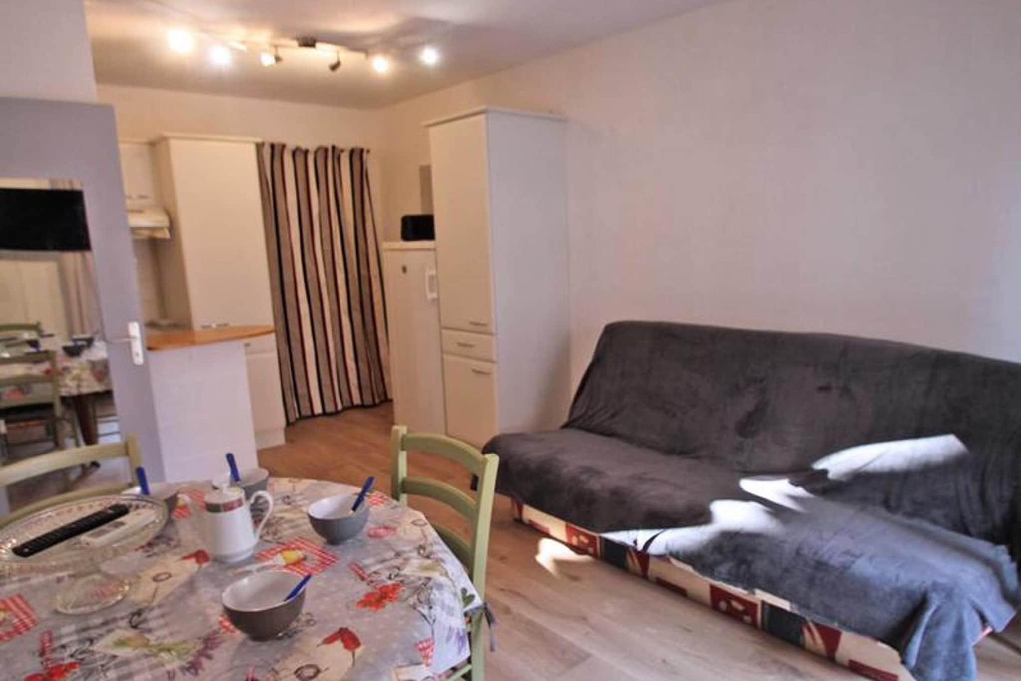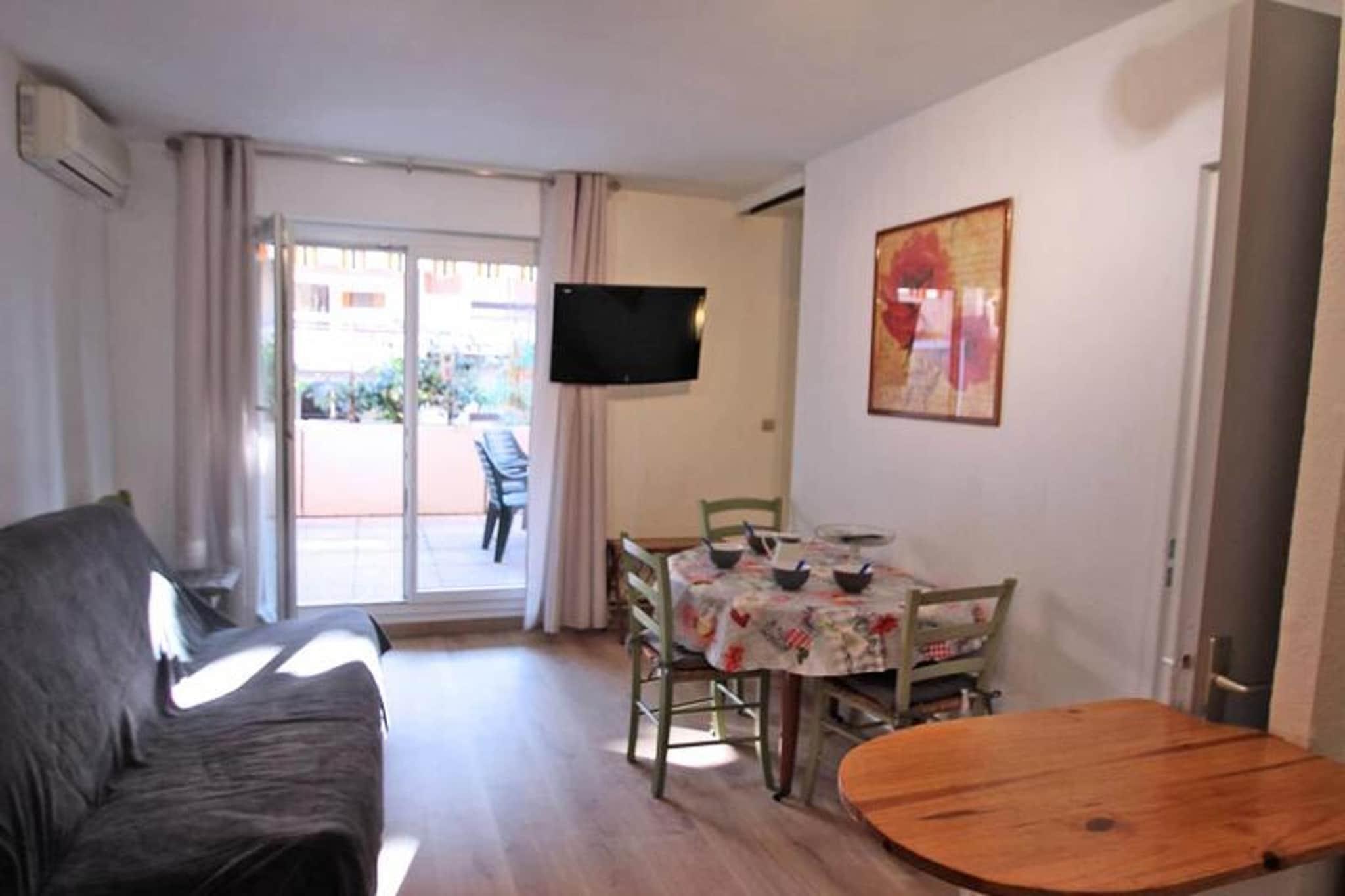 This charming T2 cabin apartment offers a comfortable stay for up to 4 guests. The air-conditioned living room features a "clic-clac" sofa bed (140 cm) and a dining area with a table and chairs. The cabin bedroom is equipped with a 140 cm double bed, and the apartment also includes a well-equipped kitchenette with a 2-burner hob, refrigerator, oven, microwave, and dishwasher. The bathroom is complete with a shower, washing machine, and towel dryer, while a separate WC adds extra convenience. Pets are accepted upon request. Located in the heart of Sainte-Maxime, the apartment is just 300 meters from the beach and within walking distance of shops and restaurants. The city center is right at your doorstep, making it easy to explore local cafes, boutiques, and markets. This central location allows guests to enjoy the lively atmosphere of the town while still providing a peaceful retreat. The apartment also boasts a spacious 16m² south-west facing terrace with dining furniture, perfect for enjoying the outdoors. Guests have access to a private underground garage with sufficient space for a vehicle. Additional amenities include Wi-Fi, air conditioning in the living room, and all the necessary kitchen and bathroom facilities for a pleasant stay.