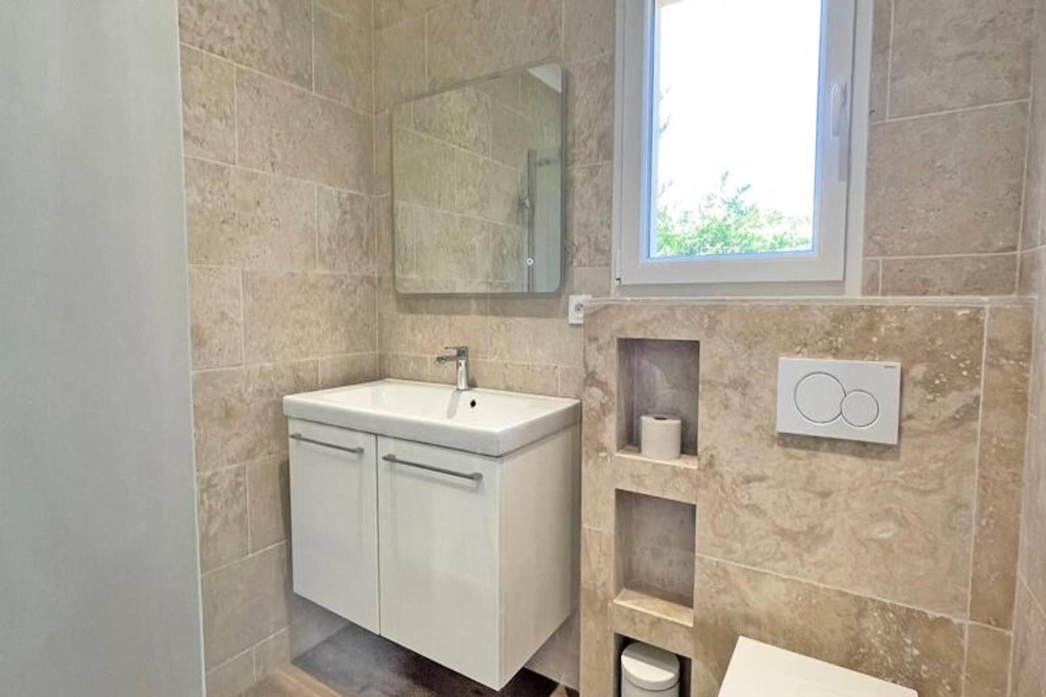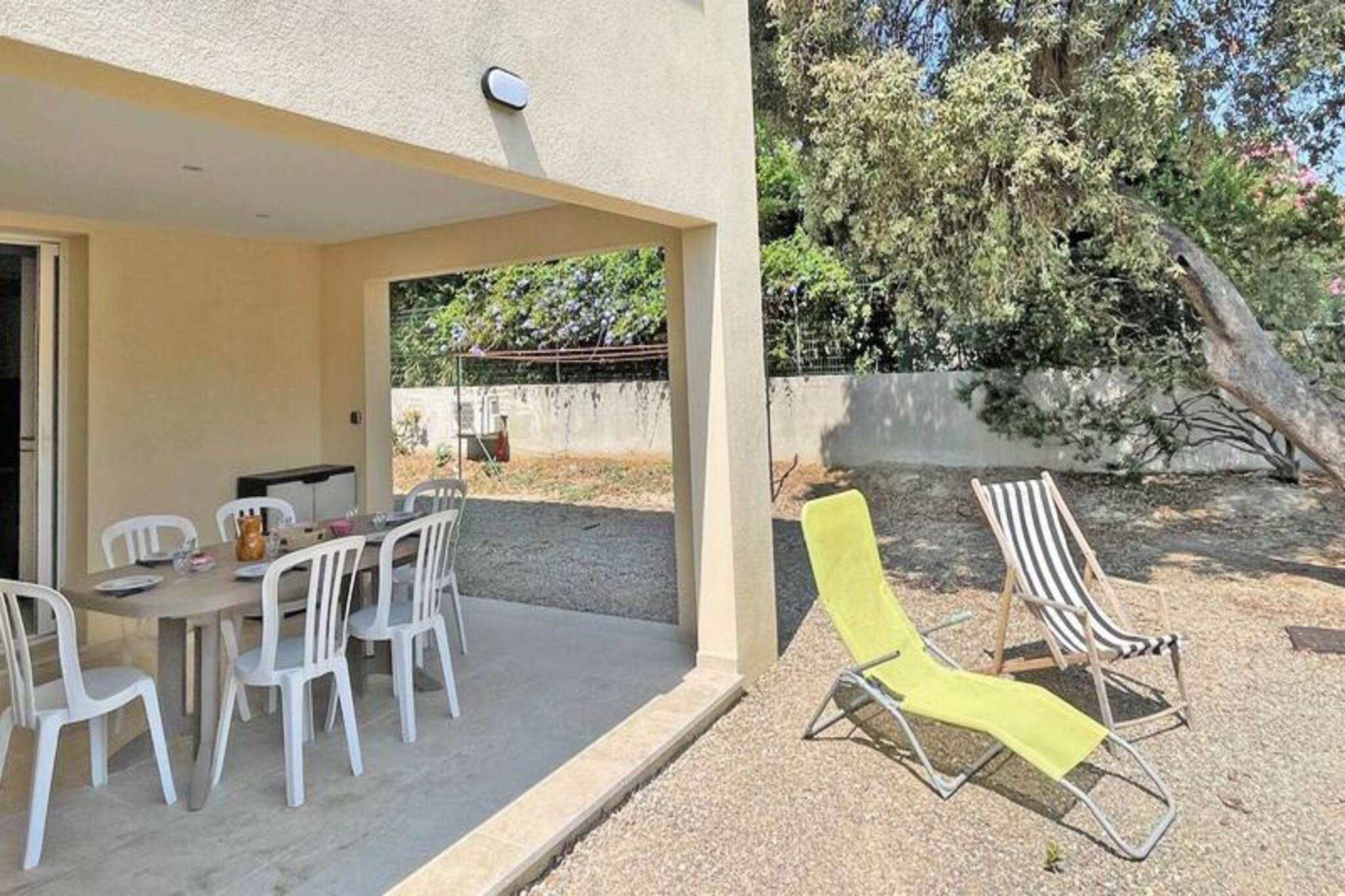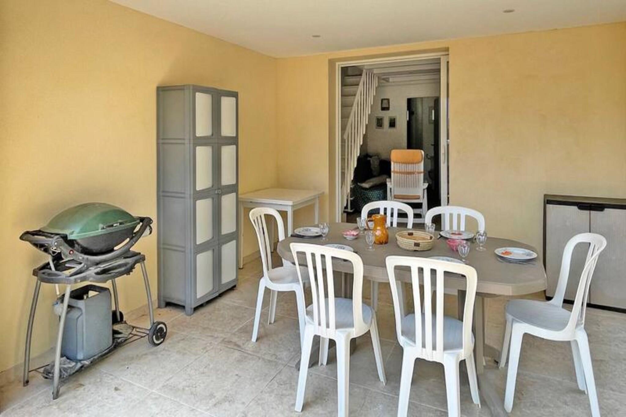 This charming 65m² duplex house is located in the popular Nartelle district, just 100 meters from La Nartelle beach and several private beaches. The house accommodates up to 5 people and features a living room with a 140 BZ type sofa bed and an open, fully equipped kitchen with a hob, oven, dishwasher, washing machine, fridge, freezer, and Nespresso coffee machine. The ground floor also includes a bathroom with a shower, sink, and WC. Upstairs, there are two air-conditioned bedrooms: one with a double bed and the other with three single beds. There is a second shower room with WC. The house is ideally located for beach lovers, with the beach only 50 meters away. Guests can enjoy outdoor living on the 15m² terrace with garden furniture and a gas barbecue. The area is quiet and picturesque, yet close to local amenities, with shops located just 1,000 meters away. The city center is a short drive away, approximately 4.5 km from the property. Additional features include parking for one vehicle, pocket WiFi, and end-of-stay cleaning. With its close proximity to the beach and modern amenities, this house offers a perfect base for a relaxed and enjoyable stay in Sainte-Maxime.
