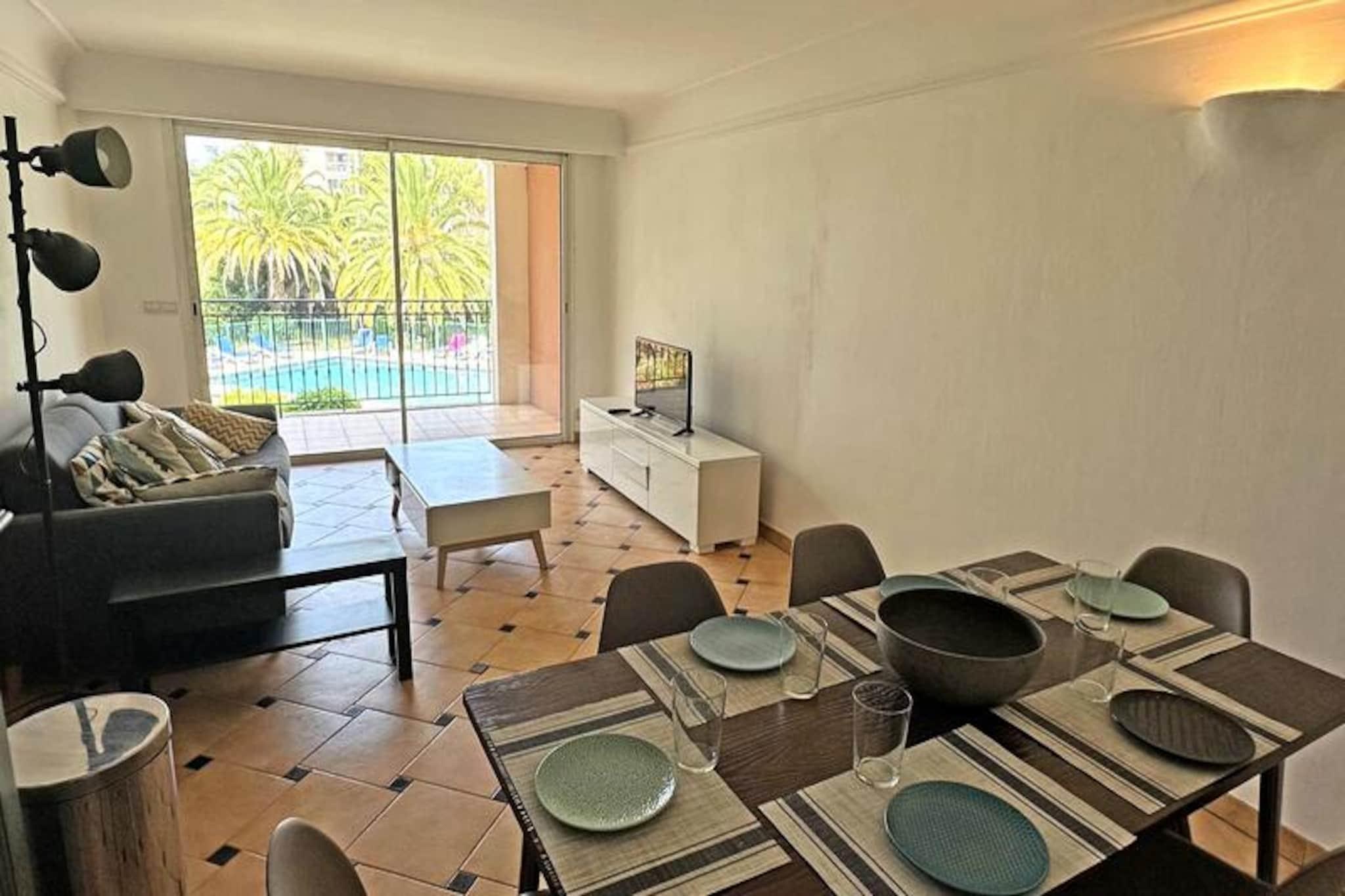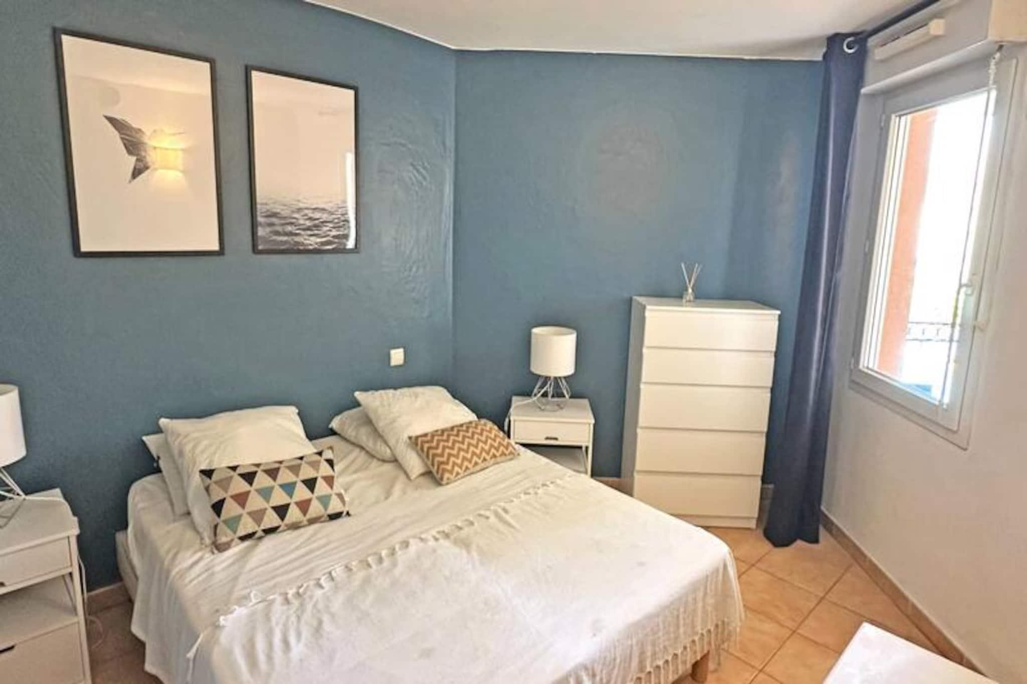 Overlooking the tranquil waters of the 'Le Préconil' river, this modern 3-room apartment in the Port Marine Residence offers a serene escape just steps from the vibrant heart of Sainte-Maxime. With its contemporary design and thoughtful amenities, this holiday retreat is perfect for families or small groups seeking comfort and convenience in the French Riviera. The residence boasts a swimming pool and air conditioning, ensuring a relaxing stay no matter the season. Inside, the apartment features a bright and airy living space with a cozy lounge area, a dining table, and direct access to a private terrace where you can enjoy al fresco meals with views of the pool and river. The open kitchen is fully equipped with modern appliances, including a dishwasher, oven, and Dolce Gusto coffee maker, making meal preparation a breeze. The master bedroom offers a flexible bed arrangement, a large closet, and an en-suite shower room, while the second bedroom provides two single beds and ample storage. A second bathroom with a bathtub and a separate toilet add to the convenience. Located just 350 meters from the beach and 450 meters from the town center, this apartment places you within walking distance of Sainte-Maxime’s charming shops, restaurants, and lively markets. Whether you’re strolling along the promenade, exploring nearby beaches, or taking a ferry to Saint-Tropez, the location offers endless opportunities for adventure. With free on-site parking, pocket Wi-Fi, and pet-friendly options, this apartment combines modern comfort with an unbeatable location, making it the ideal base for your Côte d’Azur getaway.