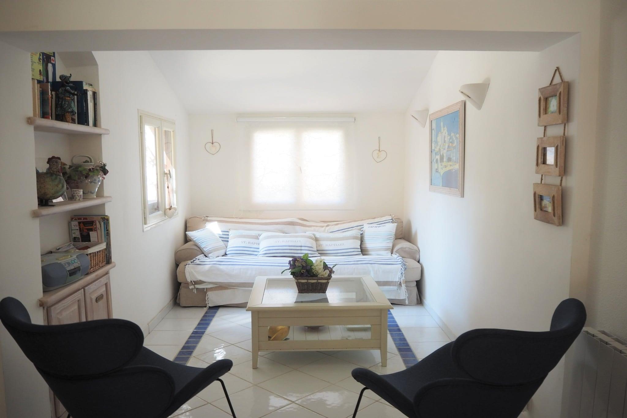 Just a few steps away from one of the largest sandy beaches on the Côte d'Azur, La Nartelle. The quiet and gated residence consists of 6 small villas surrounded by shady pine trees and is located just outside the town. With your towel over your shoulder, you can walk straight to the residence's outdoor pool or 200 metres further to the blue sea. Enjoy the last rays of the sun on your large private terrace. Sainte-Maxime is one of the most popular seaside resorts on the Côte d'Azur, only the wide bay with calm waters separates you from Saint-Tropez. Water sports of all kinds, shopping, museums, exhibitions, typical markets and last but not least the casino promise a varied holiday. The romantic fishing port of Saint-Tropez should definitely be visited, and you can also discover the beautiful villages of Cogolin, Grimaud and Gassin.
