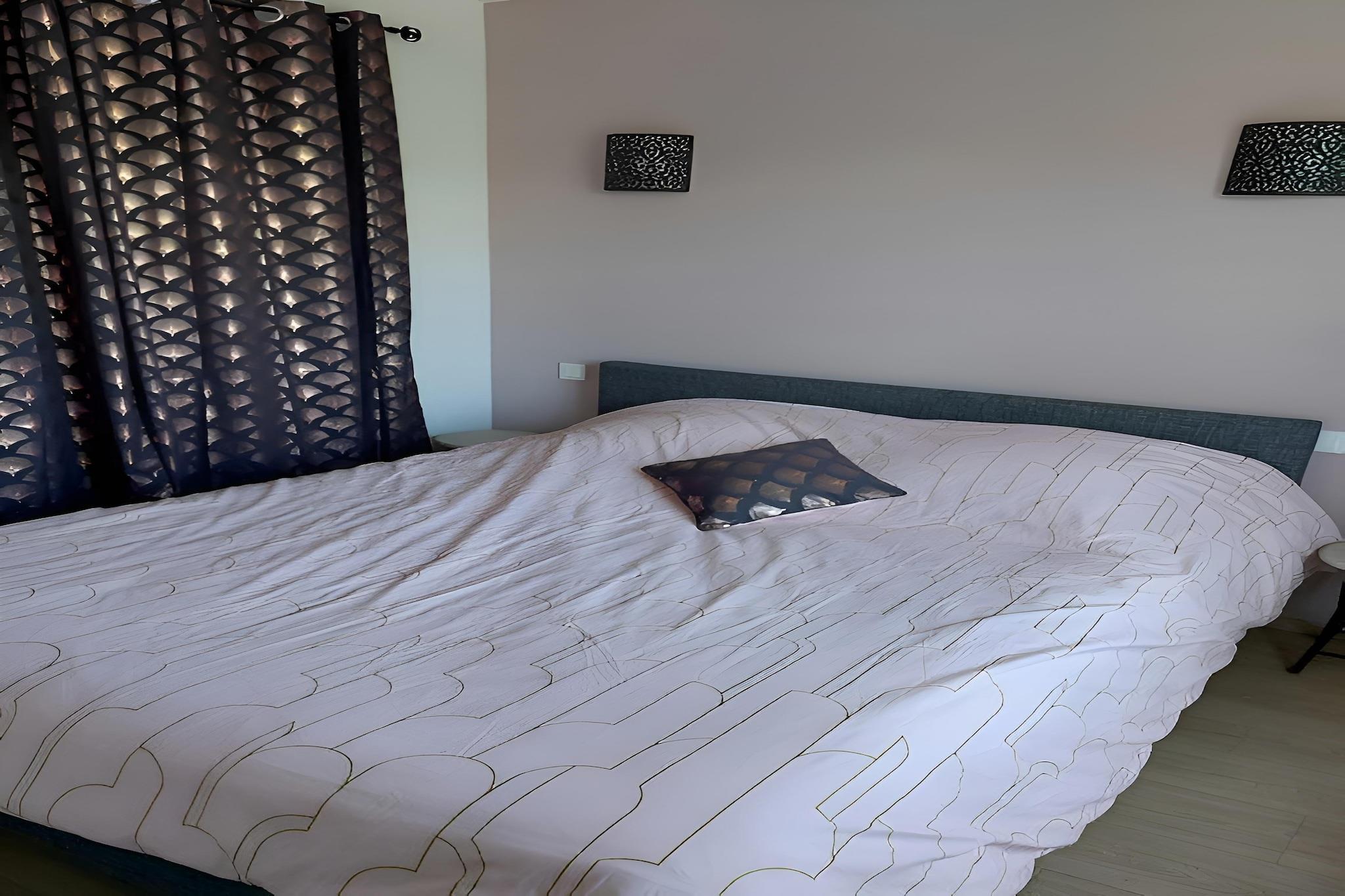 Ground floor: (open kitchen(toaster, cooker, coffee machine, oven, microwave, dishwasher, fridge, freezer, electric hot plates), Living/diningroom(TV, dining table, seating area), bedroom(double bed(160 x 200 cm)), bedroom(double bed(160 x 200 cm)), bedroom(double bed(140 x 190 cm)), bathroom(shower, washbasin)) washing machine, washing machine, air conditioning, BBQ