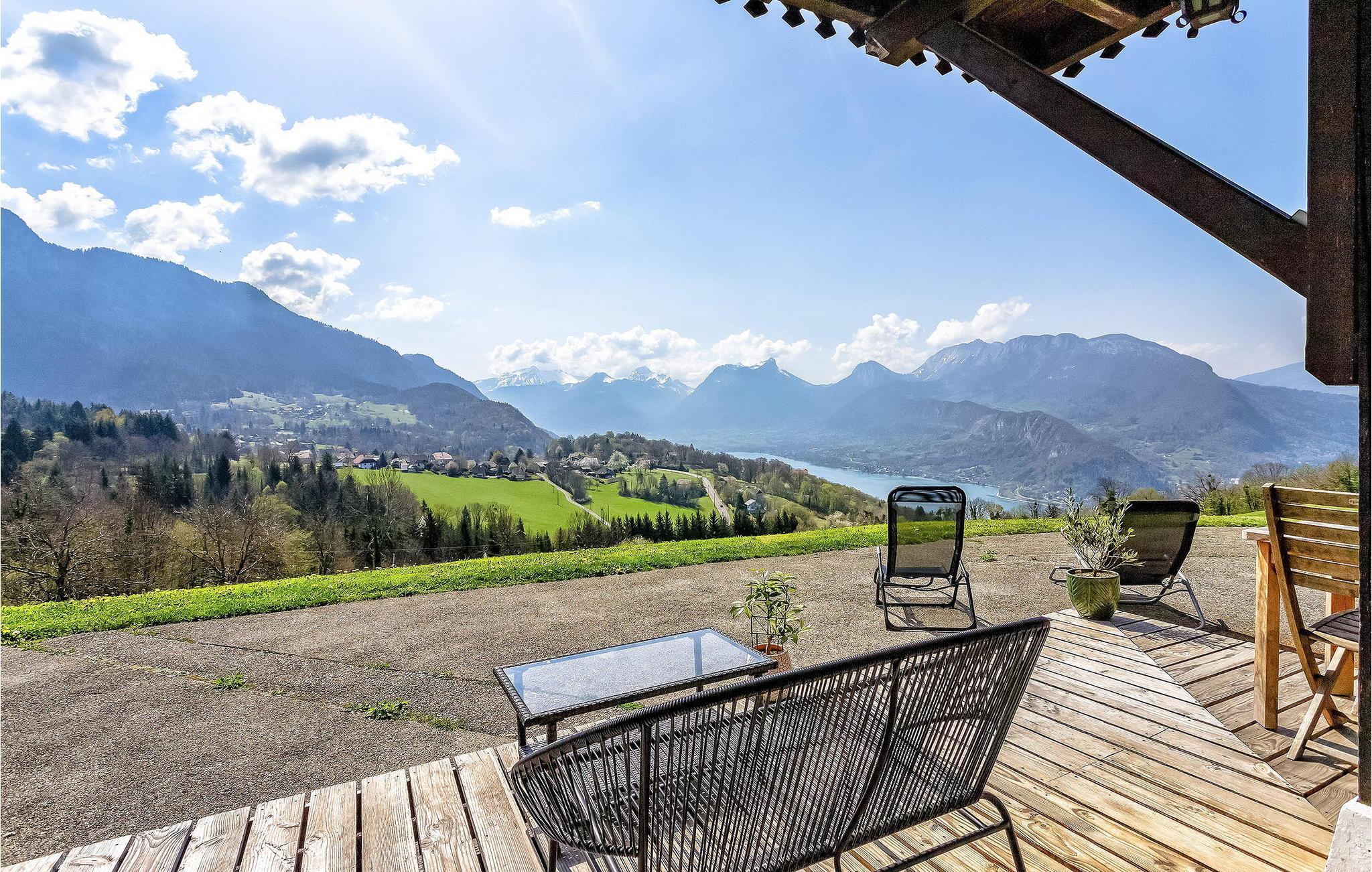 Die Ferienwohnung in Talloires befindet sich in einem malerischen Chalet und bietet einen faszinierenden Blick auf den See von Annecy und die umliegenden Berge. Das Apartment verfügt über einen Wohnbereich, der auf eine Terrasse mit Blick auf den See von Annecy und die Berge führt. In diesem Raum gibt es ein gemütliches Sofa, einen Fernseher zur Unterhaltung und Internetzugang. Die gut ausgestattete Küche im Apartment verfügt über moderne Annehmlichkeiten und bietet alles, was Sie für die bequeme Zubereitung von Mahlzeiten benötigen. Es gibt ein komfortables Schlafzimmer mit direktem Zugang zu einem Balkon mit atemberaubender Aussicht auf den See. Die Wohnung verfügt außerdem über ein Duschbad mit Haartrockner sowie ein separates WC. Die Wohnung ist Teil eines Chalets, das drei weitere Wohnungen zur Ferienvermietung bietet, wobei die Eigentümer ebenfalls vor Ort wohnen. Äußerlich liegt das Chalet auf einem großen Grundstück von 2 Hektar, das sich die Urlauber, die in den verschiedenen Apartments wohnen, und die Eigentümer teilen. Das Apartment verfügt über eine private Terrasse mit Blick auf den See sowie einen Grill und Gartenmöbel. Vom Chalet aus können Sie schöne Wanderungen wie den Aufstieg auf die Tournette oder den Col de Frètes unternehmen. Alle örtlichen Geschäfte befinden sich etwa 5 km entfernt im Zentrum des Dorfes Talloires-Montmin am See oder im Zentrum des etwa 6 km entfernten Dorfes Menthon Saint-Bernard. Bitte beachten Sie, dass im Winter Schneeketten oder Winterreifen erforderlich sind. Genießen Sie Ihren Urlaub in den französischen Alpen mit Blick auf den See und die herrliche Bergwelt.