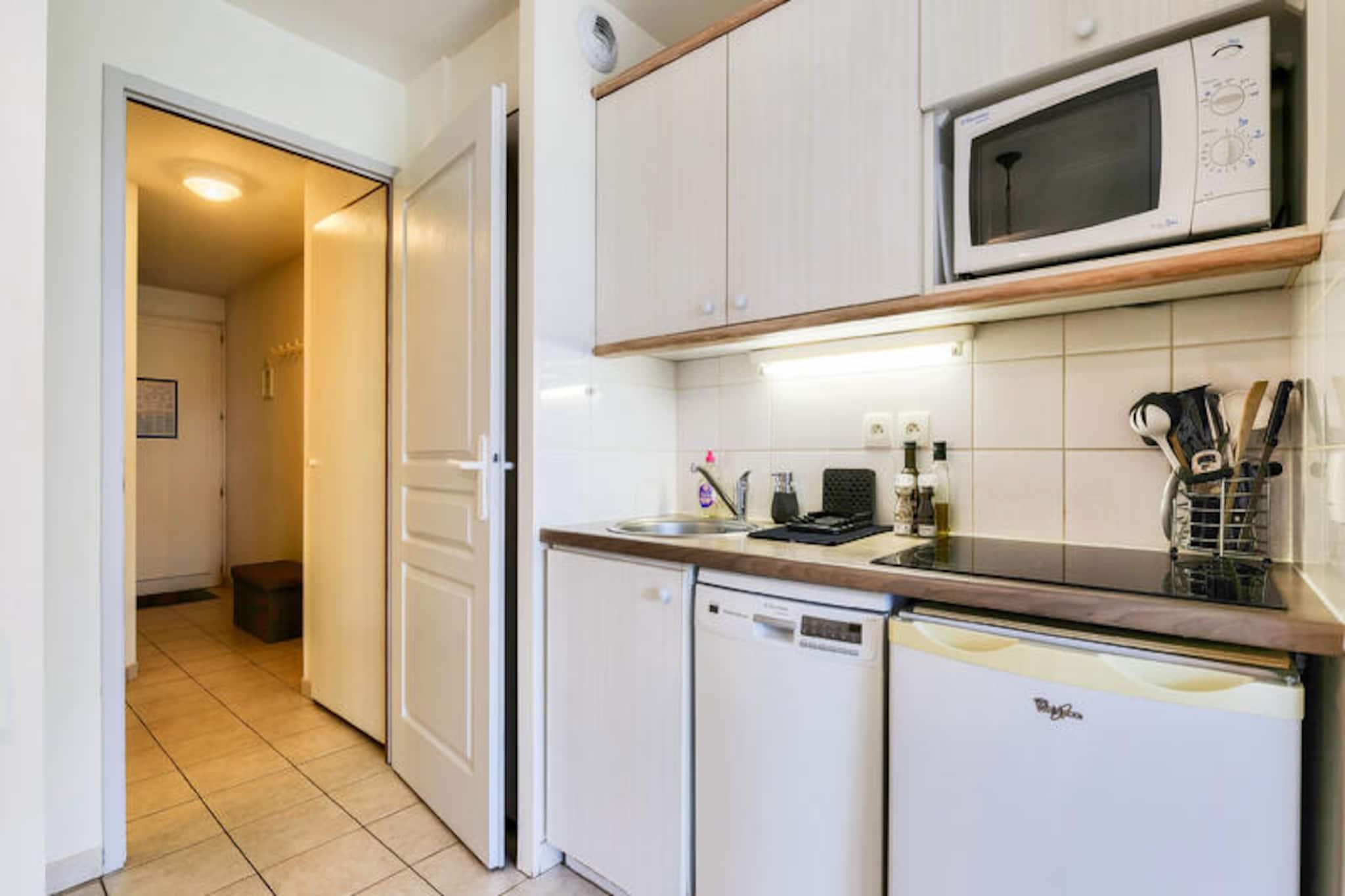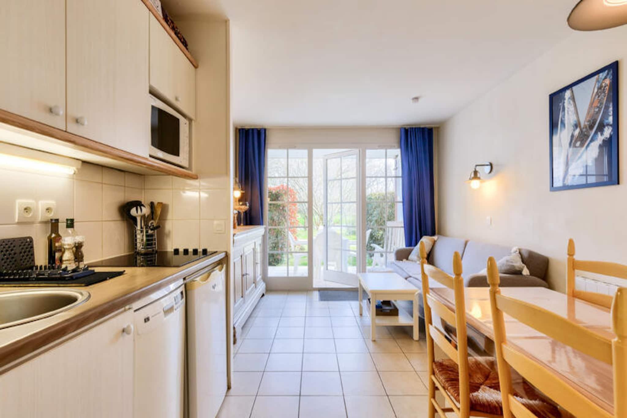 Résidence Port Bourgenay - maeva Home is located in Talmont-Saint-Hilaire in the Vendée region, just 9 km from Les Sables-d'Olonne. It is a real 90 hectare estate surrounded by a pine forest and directly overlooking a lake. The pedestrian residence is divided into five districts and offers shops where you will find everything you need for a comfortable and relaxing vacation. You can reach the ocean on foot or by bike through the pine forest, the Talmondaise (shuttle) can also drop you off at Veillon beach, located 2.5 km away, where you can enjoy many activities. The residence also has 3 swimming pools and an aquatic area with slide. Opening dates: The center swimming pool: 04/27 to 09/12 The Moulin swimming pool: 06/15 to 09/08 The Bocage swimming pool: 06/15 to 09/02 On site: Pizzeria, bakery, bar/ice cream parlour. (These services are independent of the residence) Maeva Home accommodations are fully equipped private rentals located within the residence. Additional cleaning: To be carried out at the end of the stay, either by the customer or by paying for the service when booking, at pre-check-in or on arrival. You will benefit from the advantages and à la carte services according to your wishes. Entertainment and leisure (additional charge): * Two 18-hole golf courses * Tennis, mini golf Your vacation rental includes: 1 living room, 1 kitchen, 1 bedroom, 1 bathroom, 1 separate toilet and 1 8m2 terrace. The advantages of your rental: Apartment for 3 people with 8m2 south-facing terrace and free access to the residence's swimming pool with slides. Area: 31 m². Location: The Park Floor of accommodation: Ground floor Beach or slope access: No Town or village center: No Distance from slopes to sea: >500m Distance to business: >500m Distance activities: >500m Number of housing levels: Single storey Composition of the stay: Sofa bed: 1 Standard sofa: No Seating places on the sofa: 4 Table in the dining room: Yes Number of chairs (or stools): 4 + 1 stool Coffee table: Yes Fireplace: No Meal side: Type of cuisine: American Table in the kitchen: No Number of chairs in the kitchen: 4 Composition of the rooms: Bedroom 1: Double beds bedroom 1: 1 Composition of the bathroom: Number of bathroom: 1 Number of separate toilets: 1 Main bathroom: Type of bathroom 1: Bathtub with column Condition of the main bathroom: Good condition A free power outlet near mirror 1: Yes Coat hook(s) or non-heated towel dryer 1: Yes Electric towel dryer 1: Yes Storage space(s) (excluding shelf under mirror and vanity top) 1: Yes Electric hair dryer 1: Yes WC 1: Yes Exteriors: Terrace: Yes Opposite terrace: No Terrace view: Other Terrace orientation: South Parking dedicated to accommodation: No Type of Parking: Ground floor How would you describe the brightness of the accommodation as a whole? : Bright maeva Home Selection label: Maintained apartments, up to date, and with quality equipment. For a successful and comfortable vacation. Wifi access - With supplement - subject to availability. Pets allowed - In addition, inquire directly with the residence to find out the prices (allowed for certain accommodations). Baby Kit - Subject to availability: 1 folding baby bed (NF EN 716 standard), 1 stroller: contents may vary depending on the residence) - prices to be checked with reception. Bed linen - At an additional cost - content may vary depending on the residence: fitted sheet, sheet or duvet cover and pillowcase. Towels - Extra charge. Possibility of changing daily linen available, inquire at reception for prices. End of stay cleaning - Mandatory cleaning service to be paid upon check-in or upon arrival. Parking - Free uncovered located in the residence. Swimming pool - Included. In the center of the residence, you will find: Heated pools, slides and paddling pool with water games. Information from the maeva Home agency. Opening date: 04/29 to 09/15, accessible to all Slide and swimming pool supervised only from 01/07 to 31/08 Tourist tax (additional charge) - Payment of the tourist tax is made via your personal space: https://mon-compte.maeva.com, the amount varies depending on the location. Free for under 18s. Television - Depending on your accommodation Deposit (in euros) - 500 Bed linen - Additional charge. End of stay cleaning - Mandatory cleaning service to be paid upon check-in or upon arrival.