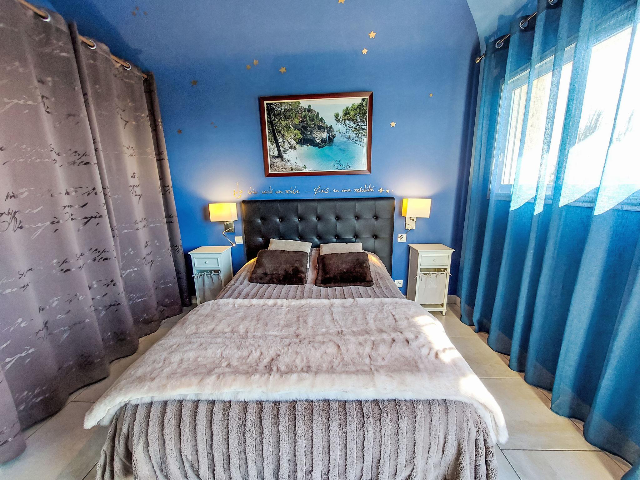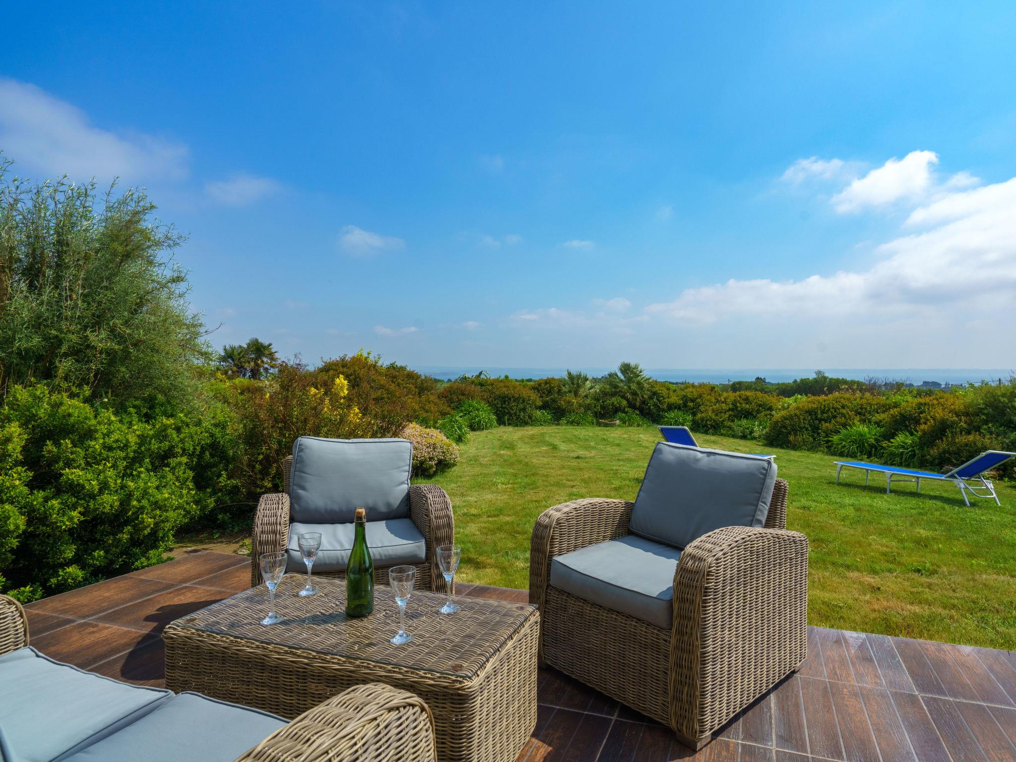 "Cassiopée", 4-room house 135 m2 on 2 levels. Comfortable and beautiful furnishings: living/dining room with dining table, satellite TV, international TV channels, hi-fi system, DVD and electric shutters. Exit to the terrace. 1 room with 1 french bed (140 cm, length 190 cm), electric shutters. Exit to the terrace. Small office with electric shutters. Exit to the terrace. Open kitchen (oven, dishwasher, 3 induction hot plates, toaster, kettle, microwave, freezer, electric coffee machine) with electric shutters. Exit to the terrace. Bath/shower, sep. WC. Heating. Upper floor: 1 room with 1 french bed (160 cm, length 200 cm), electric shutters. 1 room with 2 beds (90 cm, length 190 cm), electric shutters. Shower, sep. WC. Heating. Terrace 70 m2, south-west facing position. Terrace furniture, barbecue (portable). View of the sea and Baie de Douarnenez. Facilities: washing machine, dryer, iron, children's high chair, baby cot. Internet (WiFi, free). Please note: non-smoking house. Maximum 1 pet/ dog allowed. Smoke alarm. When there are less than the maximum number of guests staying at the property, not all of the bedrooms will be available for use.