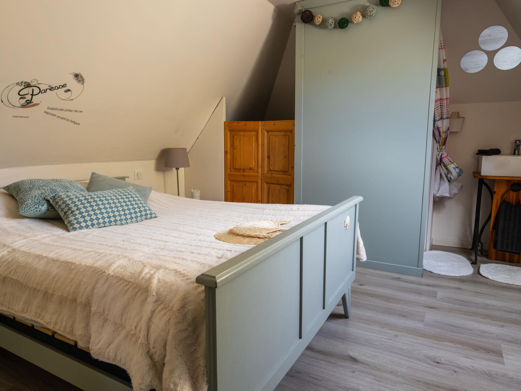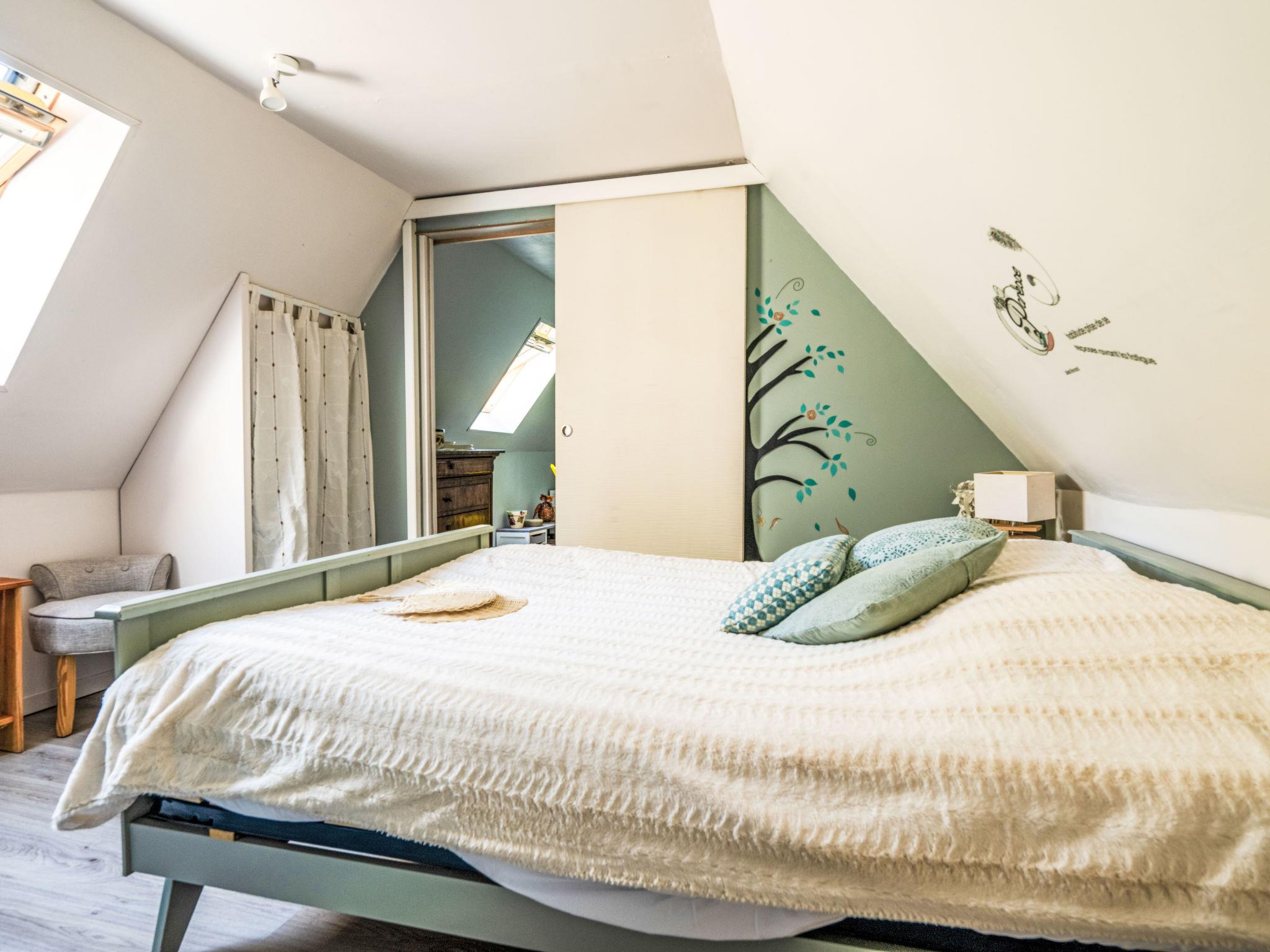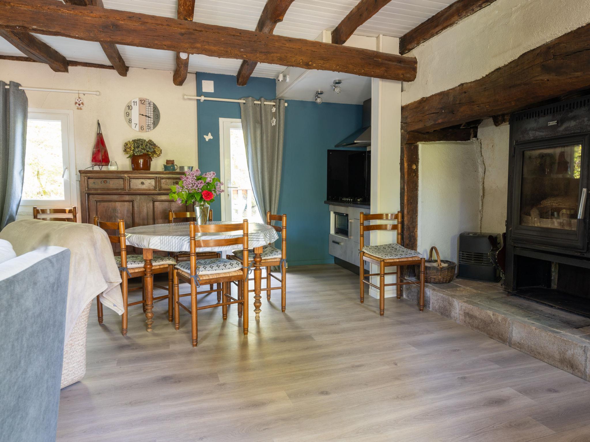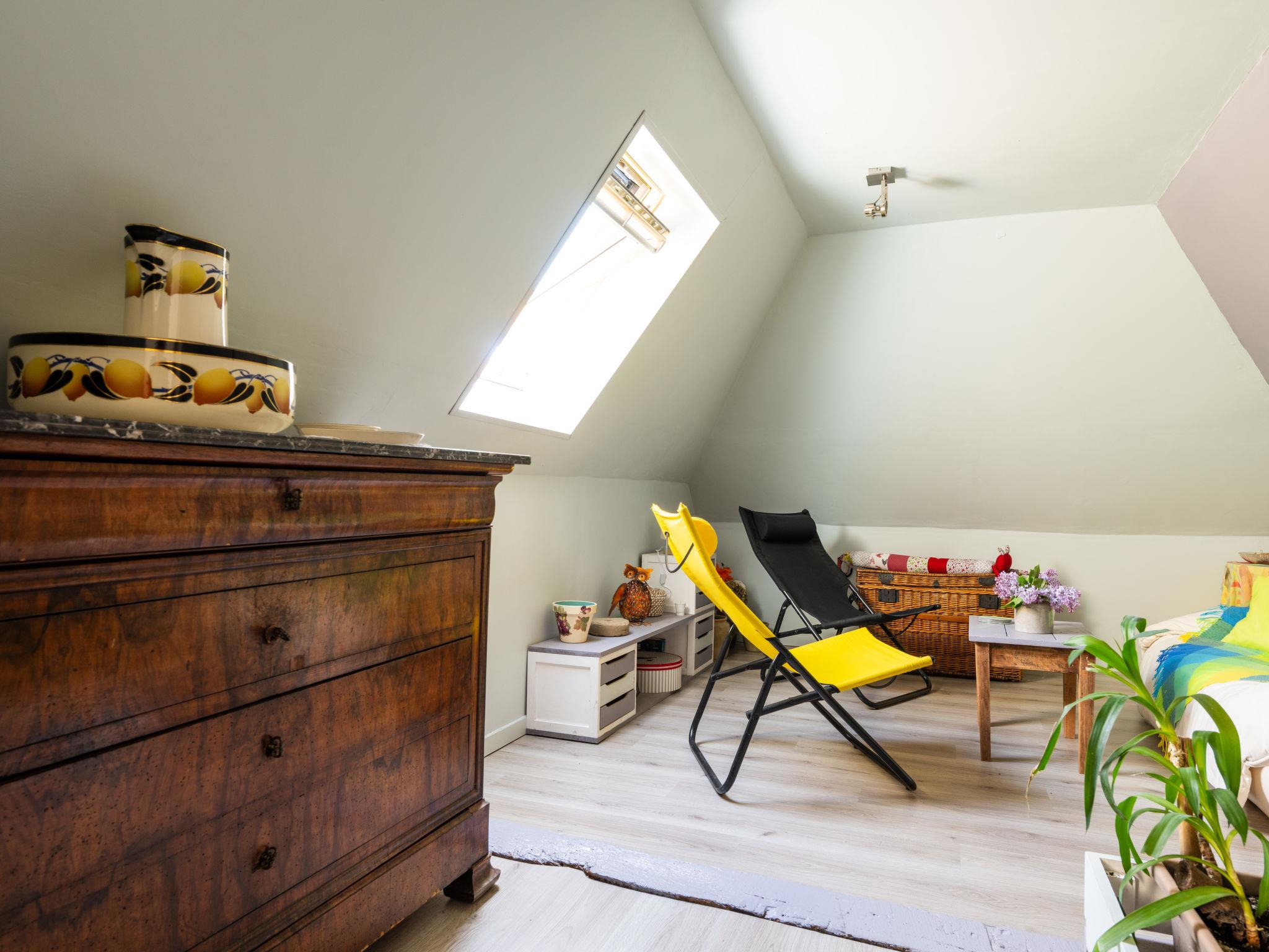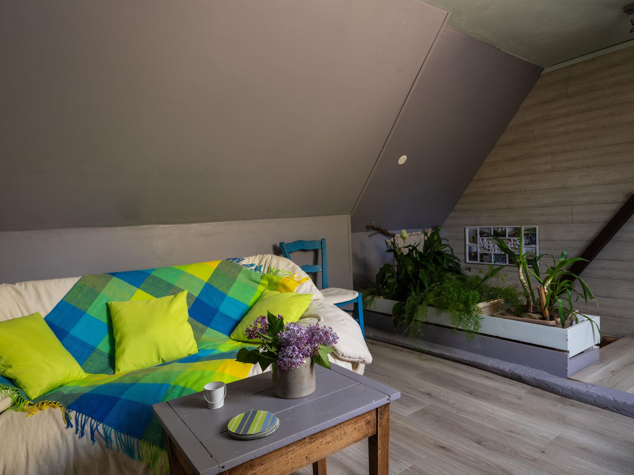 3-room house 80 m2 on 2 levels. Beautiful furnishings: living/dining room with Scandinavian wood stove, dining table and TV (flat screen). Exit to the garden, to the balcony. 1 room with 1 french bed (140 cm, length 190 cm). Open kitchen (mini-oven, 4 gas rings, toaster, kettle, microwave, freezer, electric coffee machine, Capsules for coffee machine (Senseo) extra). Shower, sep. WC, double hand-basin. Upper floor: (steep stair) lounge with sloping ceilings. 1 room with sloping ceilings with 1 french bed (140 cm, length 190 cm), shower/WC. Electric heating, wood heating. Small balcony, 2 small terraces. Terrace furniture, barbecue, deck chairs (2). Beautiful view of the river. Facilities: washing machine, iron, hair dryer, logs (free). Please note: not suitable for small children. Non-smoking house. Maximum 2 pets/ dogs allowed. Smoke alarm. Offer by a private individual according to Art. 155, IV of CGI.