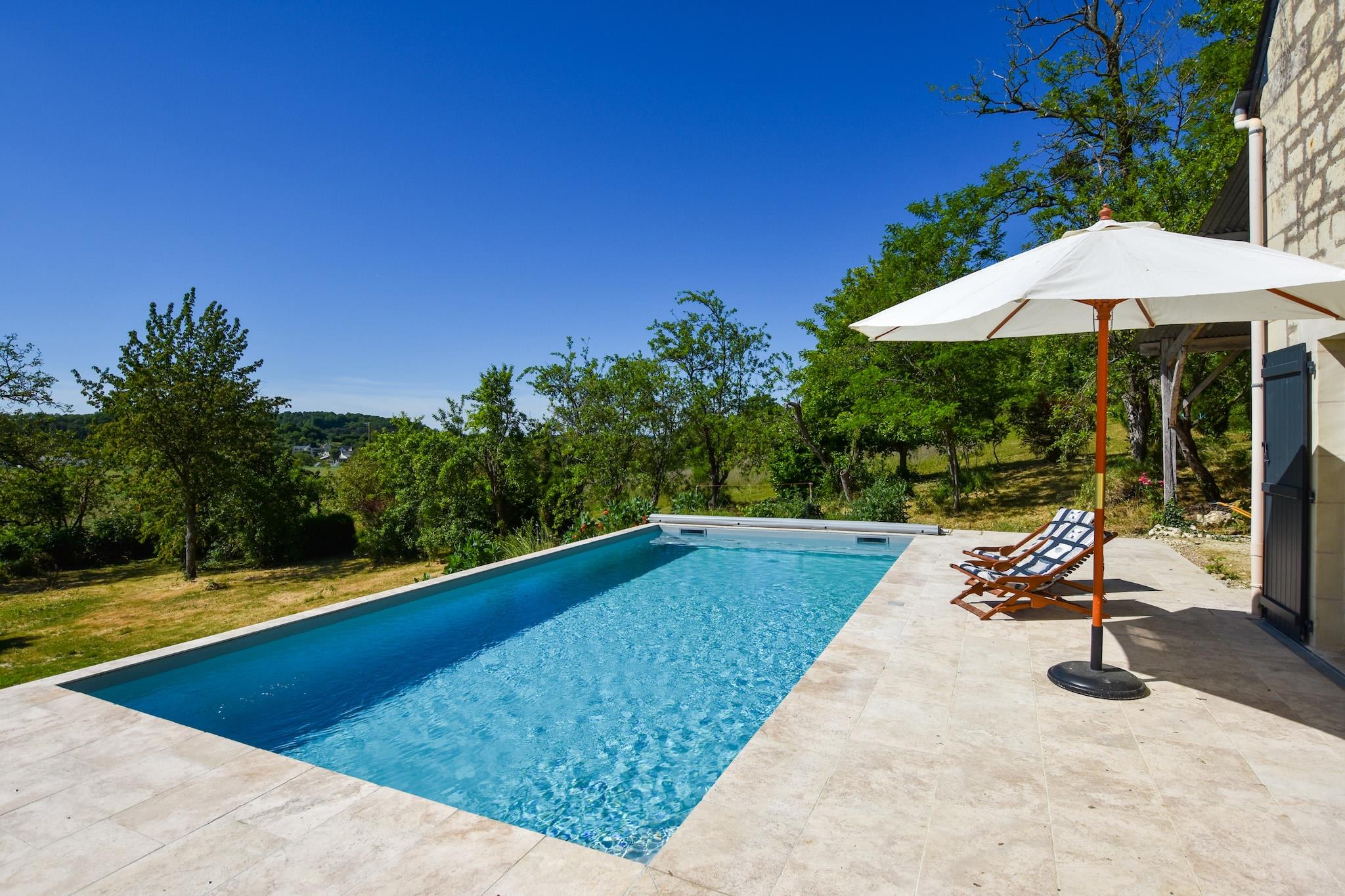 Escape to this charming 3-bedroom mansion in the peaceful village of Thizay, perfect for families or groups of up to 6 guests. Combining rustic stone walls with cosy furnishings, the home exudes warmth and comfort. Enjoy leisurely mornings on the roofed terrace, refreshing swims in the heated private pool, or afternoons lounging on deckchairs beneath the parasols. With a private garden filled with seasonal fruit trees, barbecues, and inviting indoor spaces complete with fireplaces, your stay promises both relaxation and indulgence. Located just 600 m from Thizay's centre, you can easily explore local shops and the charming village atmosphere. The Vienne River, only 1 km away, offers picturesque picnic spots, while golf lovers will appreciate the nearby course just 8 km away. Families can visit the region's zoo or tour magnificent castles within a 40 km radius. The surrounding Loire Valley landscape is perfect for leisurely drives, cycling, and photography enthusiasts. Savour local flavours at restaurants in Cinais, 6 km from the property, or venture to Chinon for vibrant nightlife, wine tasting, and traditional French cuisine. Don't miss the bustling market in Saumur, just 20 km away, where you can pick up regional produce and artisan treats. After a day of exploring, return to your serene retreat for a cosy evening by the fireplace or a sunset swim in your private pool.