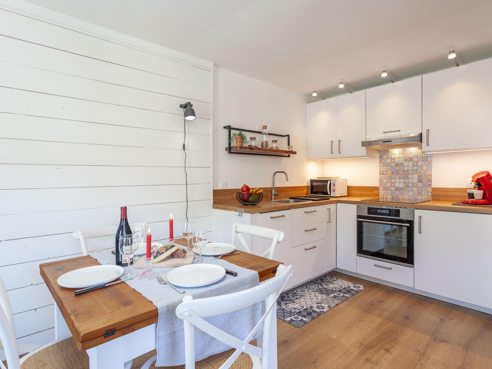 2-room apartment 34 m2 on 2nd floor. Renovated, comfortable furnishings: living/dining room with 1 double sofabed (140 cm, length 190 cm), TV (flat screen). Exit to the balcony. 1 room with 1 french bed (160 cm, length 200 cm). Exit to the balcony. Open kitchen (oven, dishwasher, 4 induction hot plates, toaster, kettle, microwave, electric coffee machine). Shower/WC. Electric heating, oil heating. 2 balconies, south-west facing position. Very beautiful view of the mountains. Facilities: Internet (WiFi, extra). Please note: non-smokers only. Smoke alarm. Offer by a private individual according to Art. 155, IV of CGI.
