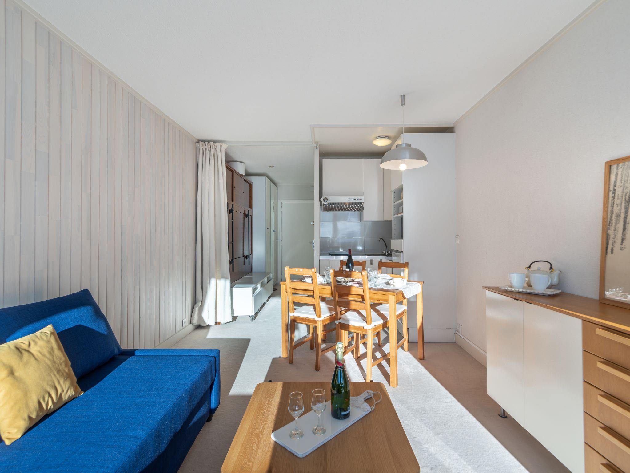 1-room studio 25 m2 on 1st floor. Beautiful and cosy furnishings: dining room with 1 double sofabed (140 cm, length 190 cm), TV (flat screen). Exit to the balcony, south facing position. Open kitchen (oven, dishwasher, 2 ceramic glass hob hotplates, toaster, kettle, electric coffee machine). Shower, sep. WC. Oil heating. Carpet. Balcony 6 m2, south facing position. Very beautiful panoramic view of the mountains and the ski run. Facilities: washing machine. Internet (WiFi, extra). Please note: non-smokers only. Smoke alarm. Offer by a private individual according to Art. 155, IV of CGI.