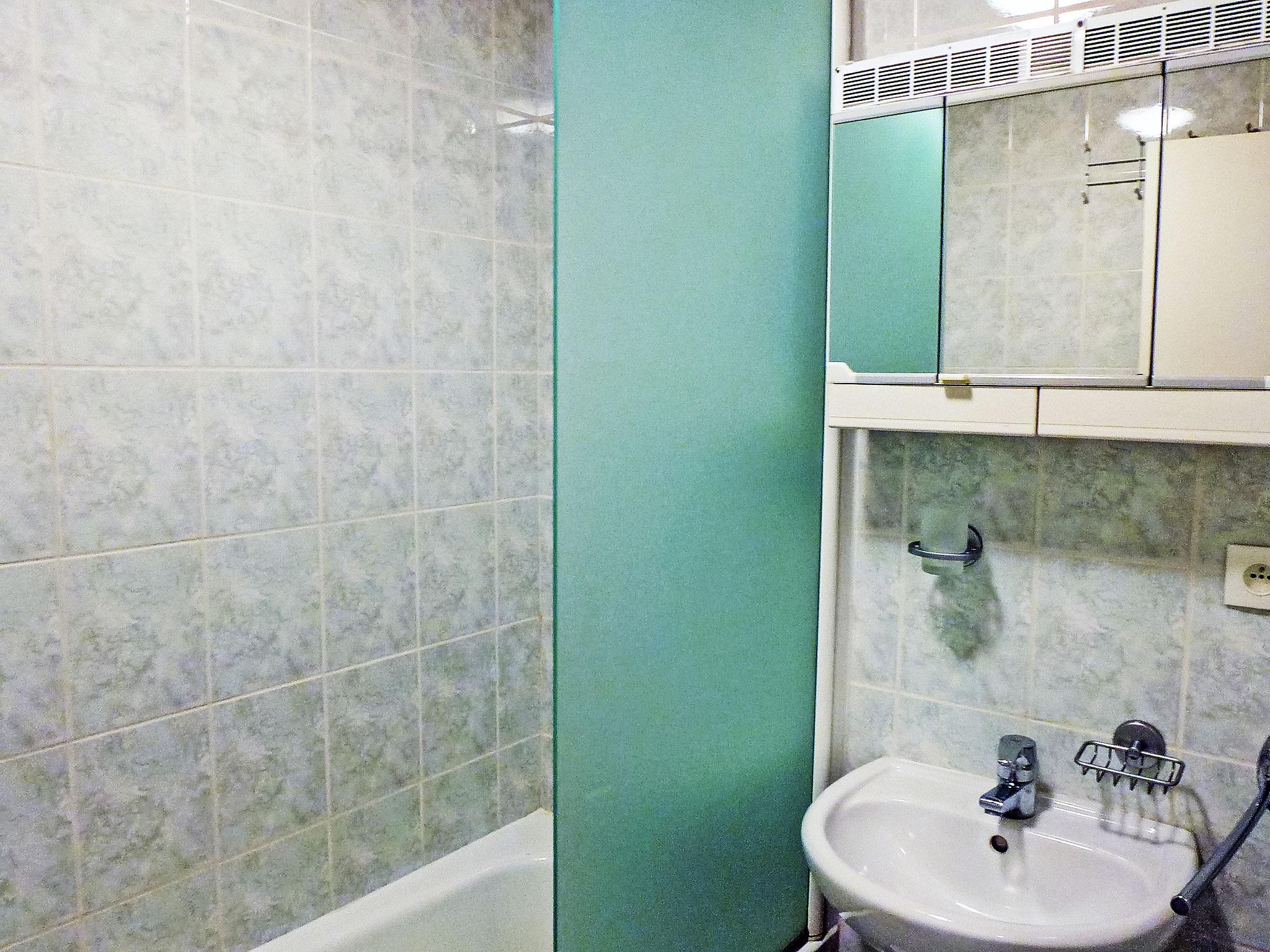 1-room studio 28 m2, on the ground floor, south facing position. Simple and practical furnishings: living/dining room with 1 pull-out bed (2 pers. 2 x 80 cm, length 190 cm), TV (flat screen). Alcove with 1 x 2 bunk beds (80 cm, length 190 cm). Kitchenette (2 hot plates, dishwasher, toaster, kettle, microwave, electric coffee machine). Bathroom, sep. WC. Terrace, south facing position. Facilities: Internet (WiFi, extra). Please note: non-smokers only. No lift. Instead of an enclosed bedroom, some sleeping areas are located in an open-plan area (gallery, alcove, etc.).
