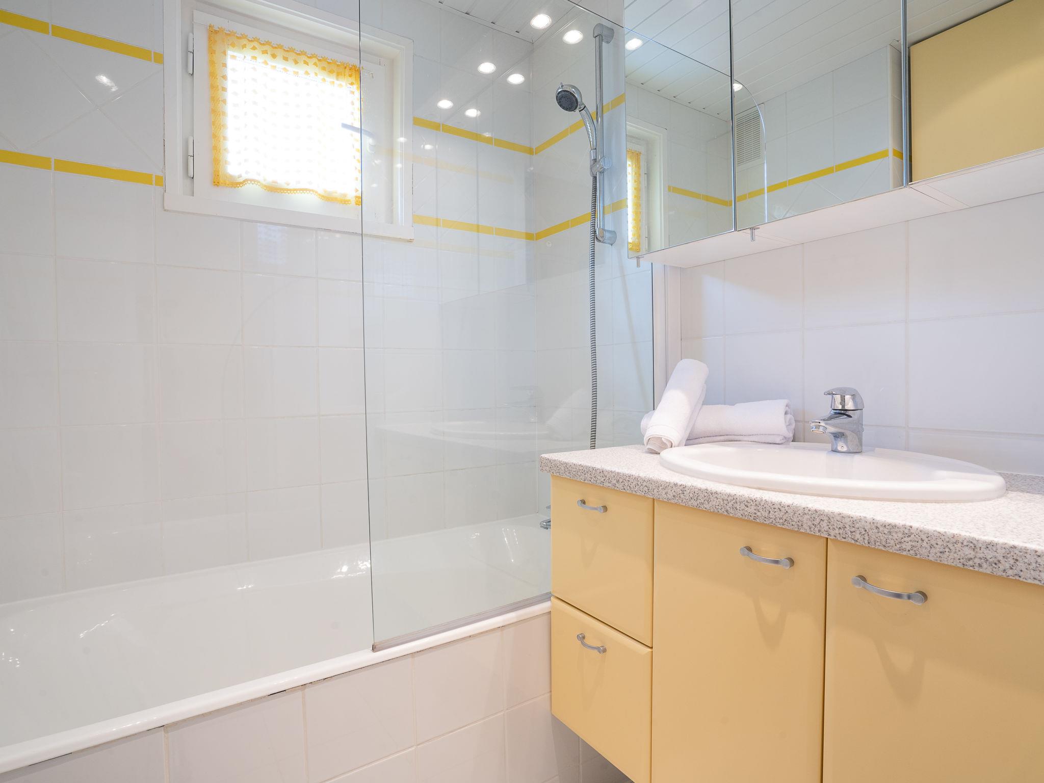2-room apartment 40 m2 on 2nd floor. Spacious, renovated, practical and beautiful furnishings: living/dining room with 1 double sofabed (160 cm, length 190 cm), TV (flat screen), DVD. Exit to the balcony. 1 room with 2 x 2 bunk beds (80 cm, length 190 cm). Open kitchen (mini-oven, dishwasher, 3 induction hot plates, microwave). Bath/WC. Large balcony 8 m2, south-west facing position. Very beautiful panoramic view of the mountains and the countryside. Facilities: washing machine, dryer. Internet (WiFi, free). Please note: non-smokers only. Smoke alarm.