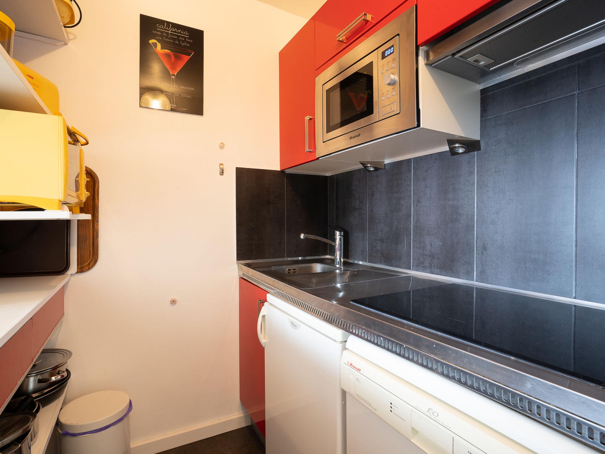 1-room apartment 27 m2 on 3rd floor. Bright, practical and beautiful furnishings: living/dining room with 1 pull-out bed (2 pers. 2 x 80 cm), TV (flat screen). Entrance hall with 1 x 2 bunk beds (80 cm). Kitchenette (mini-oven, dishwasher, 4 induction hot plates, microwave, electric coffee machine, Capsules for coffee machine (Nespresso) extra). Bath/WC. Heating. Balcony, south facing position. Facilities: Internet (WiFi, free). Please note: smoke alarm. 2754
