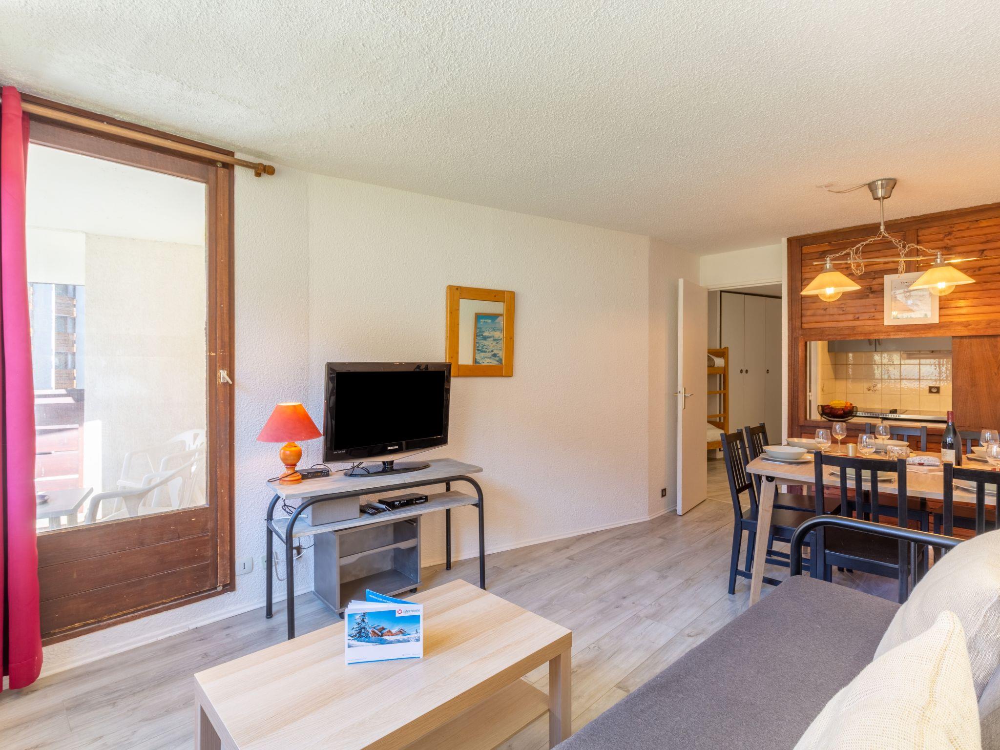 2-room apartment 40 m2 on 2nd floor. Living/dining room with (80 cm), 1 double sofabed (160 cm, length 200 cm). Entrance hall with 1 x 2 bunk beds (80 cm), TV. 1 room with 1 french bed (140 cm). Kitchenette (4 hot plates, mini-oven, dishwasher, microwave). Bathroom, sep. WC. Balcony, south facing position. Very beautiful view of the ski run. Facilities: Internet (WiFi, extra). Please note: smoke alarm.