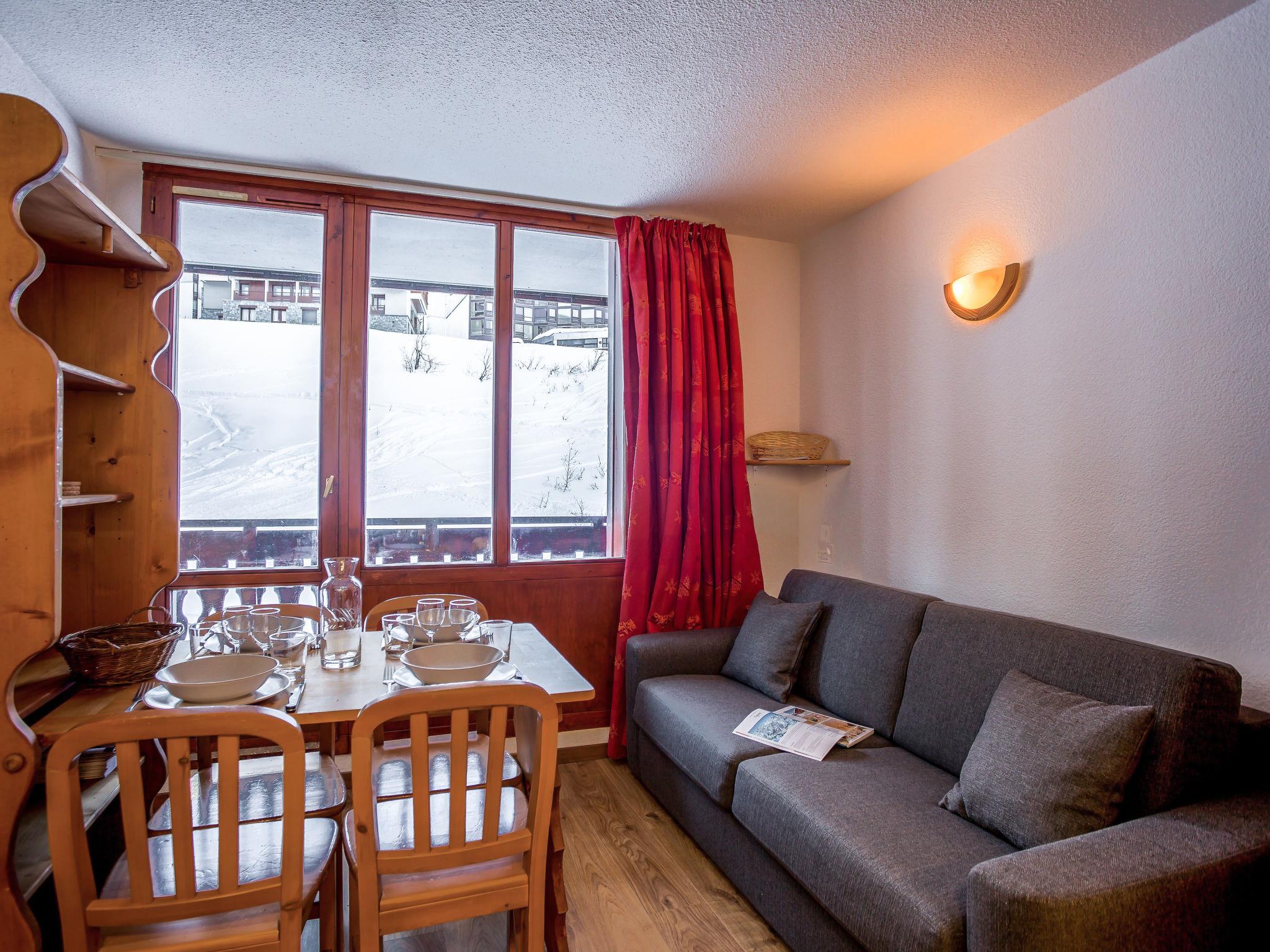 1-room studio 20 m2 on 3rd floor. Renovated: living/dining room with 1 double sofabed (140 cm, length 190 cm), TV (flat screen). Entrance hall, 2 bunk beds (70 cm, length 190 cm). Kitchenette (dishwasher, 2 ceramic glass hob hotplates, microwave). Shower/WC. Electric fireplace. Balcony 6 m2, east facing position. View of the mountains, the ski run and the countryside. Please note: non-smokers only. Smoke alarm. 296B01848P