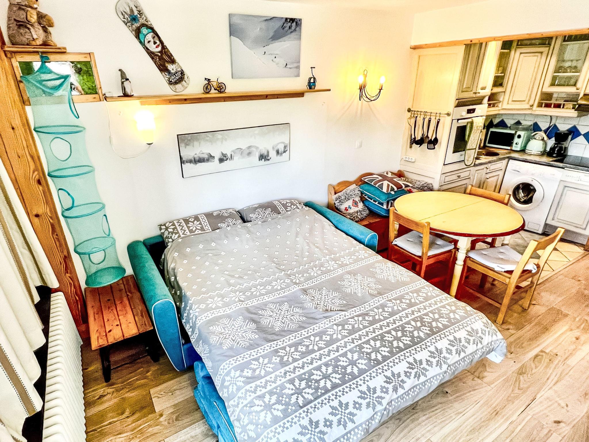 1-room studio 28 m2 on 1st floor. Bright, fully renovated: living/dining room with 1 double sofabed (1 x 140 cm, length 190 cm), TV (flat screen), hi-fi system and DVD. Exit to the balcony. Entrance hall with 1 x 2 bunk beds (80 cm). Open kitchen (oven, dishwasher, 4 ceramic glass hob hotplates, microwave, electric coffee machine). Bathroom, sep. WC. North-east facing position. Very beautiful panoramic view of the lake and the mountains. Facilities: washing machine. Internet (WiFi, free). Please note: suitable for families. Fridge without freezer, non-smokers only. Smoke alarm. HIFI with MP3 player and large fridge 220 ??liters.