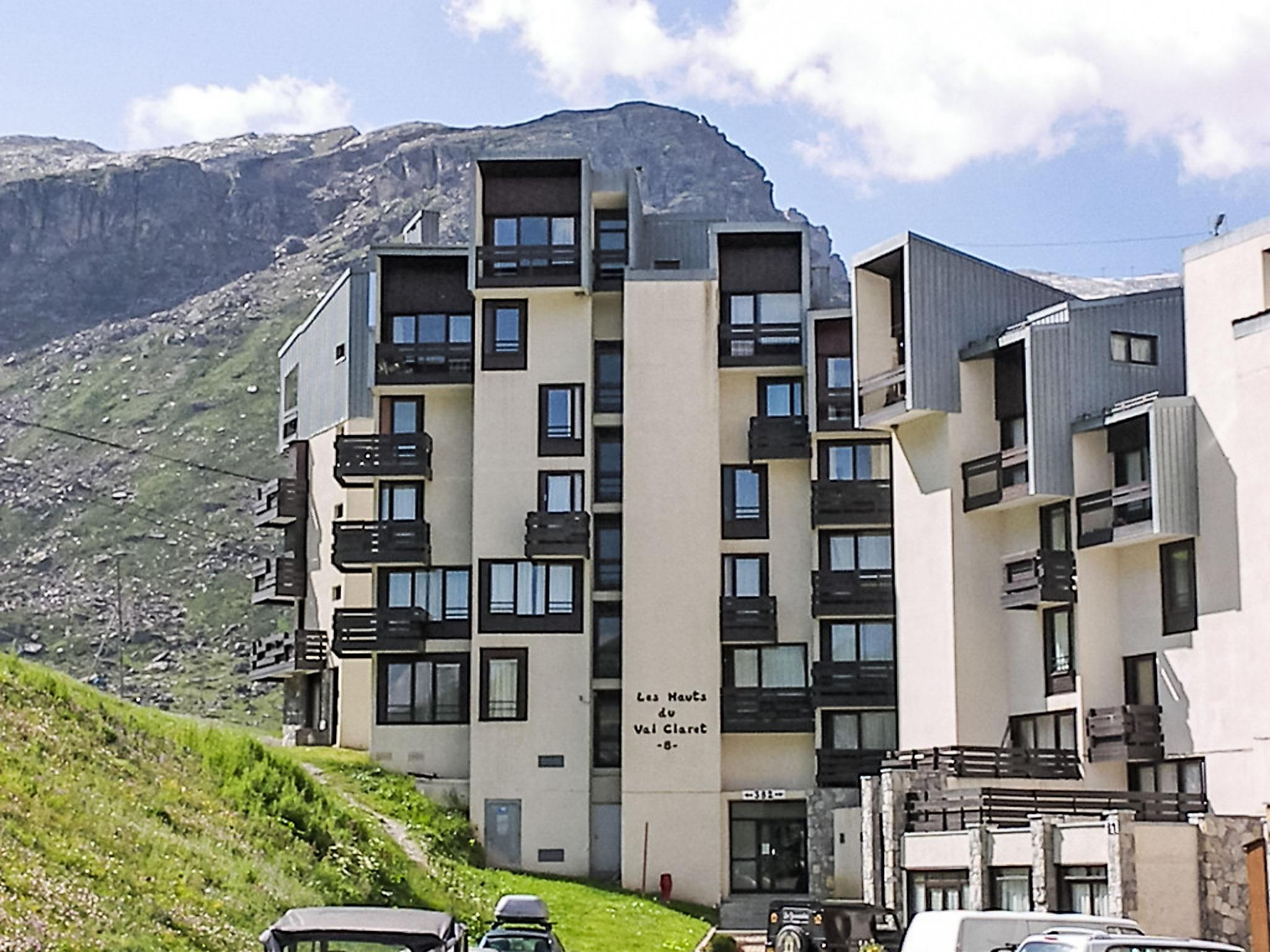 Tignes Val Claret: Residence "Les Hauts du Val Claret(Val Claret)", 4 storeys. 20 m from the skiing area. In the complex: lift, storage room for skis, central heating system. Grocery, supermarket, shopping centre 100 m, restaurant 10 m, bakery 50 m, bus stop 600 m, indoor swimming pool 800 m. Sports centre 800 m, chair lift, skisport facilities 10 m, slopes, ski rental 20 m, ski school 10 m, ice rink 800 m. Well-known ski regions can easily be reached: Espace Killy. Well-known lakes can easily be reached: le Lac du Chevril 800 m. Please note: groups of teenagers on request only. Ski bus (free of charge). Additional accommodations can be booked.