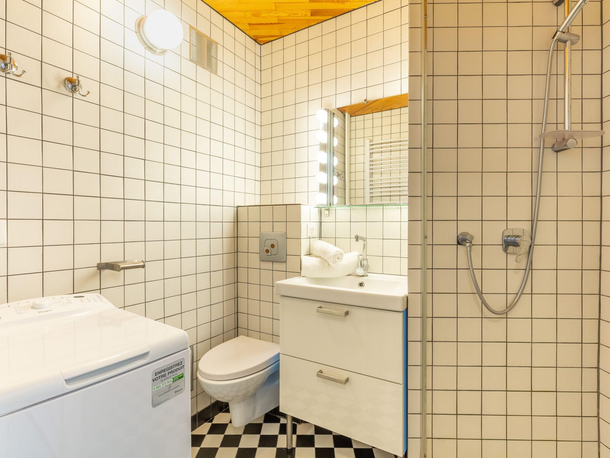 1-room studio 26 m2 on 2nd floor. Renovated, practical and beautiful furnishings: living/dining room with 2 pull-out beds (4 pers. 2 x 80 cm, length 190 cm), TV (flat screen). Exit to the balcony, south facing position and west facing position. Open kitchen (dishwasher, 2 induction hot plates, microwave). Shower/WC. Balcony, south facing position. Very beautiful panoramic view of the mountains and the countryside. Facilities: washing machine. Internet (WiFi, free). Please note: non-smokers only. Smoke alarm.
