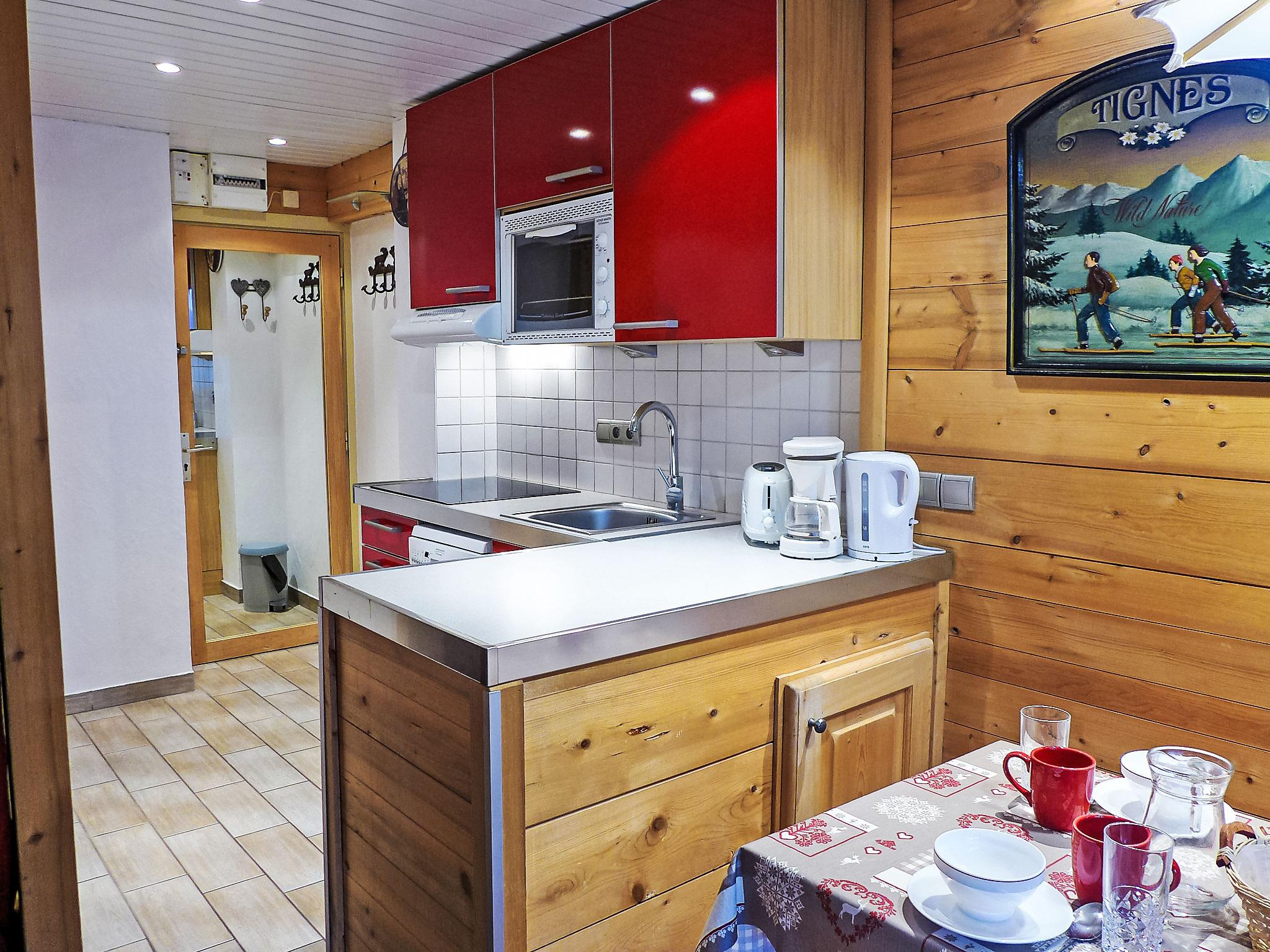 Tignes Val Claret: In the shopping centre. Residence "Le Grand Tichot A et B (Val Claret)". In a central, busy position, 100 m from the skiing area. In the complex: lift, central heating system. Shop, supermarket, shopping centre, restaurant, bakery, café 10 m, bus stop 300 m, indoor swimming pool 2 km. Sports centre 2 km, skisport facilities 100 m, slopes 150 m, ski rental 10 m, ski school, sled run 150 m. Well-known ski regions can easily be reached: Tignes & Val d'Isère 100 m. Groups of teenagers on request only. Please note: Additional accommodations can be booked.