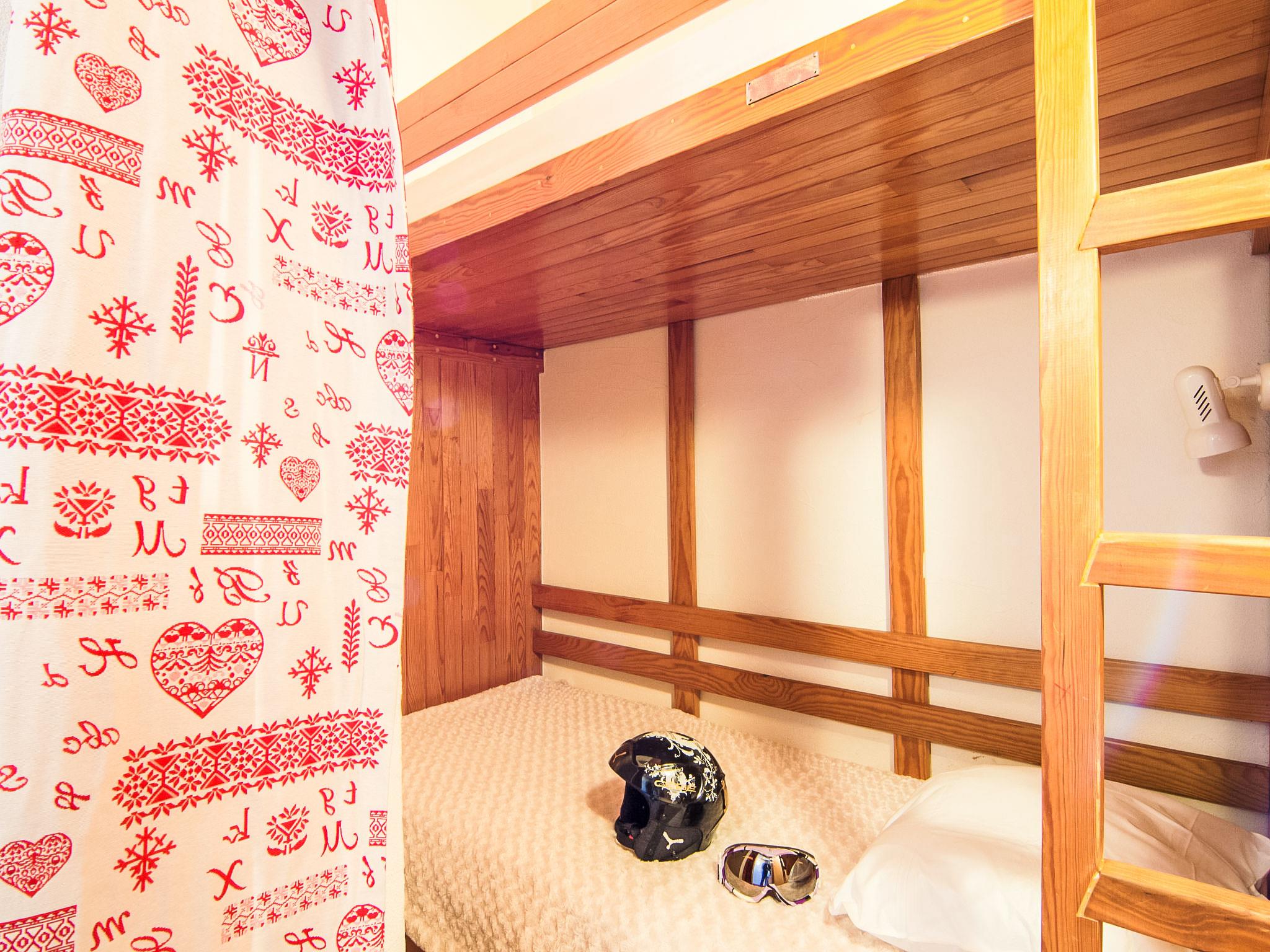 2-room apartment 45 m2 on 2 levels on 5th floor. Partly renovated: living/dining room with sliding door with 1 pull-out bed (2 pers. 2 x 80 cm), TV. Sleeping alcove with 1 x 2 bunk beds (80 cm). 1 room with 1 french bed (140 cm). Kitchenette (4 hot plates, mini-oven, dishwasher, microwave). Bathroom, sep. WC. Beautiful view of the mountains. Facilities: hair dryer. Internet (WiFi, extra). Please note: non-smokers only. Smoke alarm. Instead of an enclosed bedroom, some sleeping areas are located in an open-plan area (gallery, alcove, etc.). FR42540