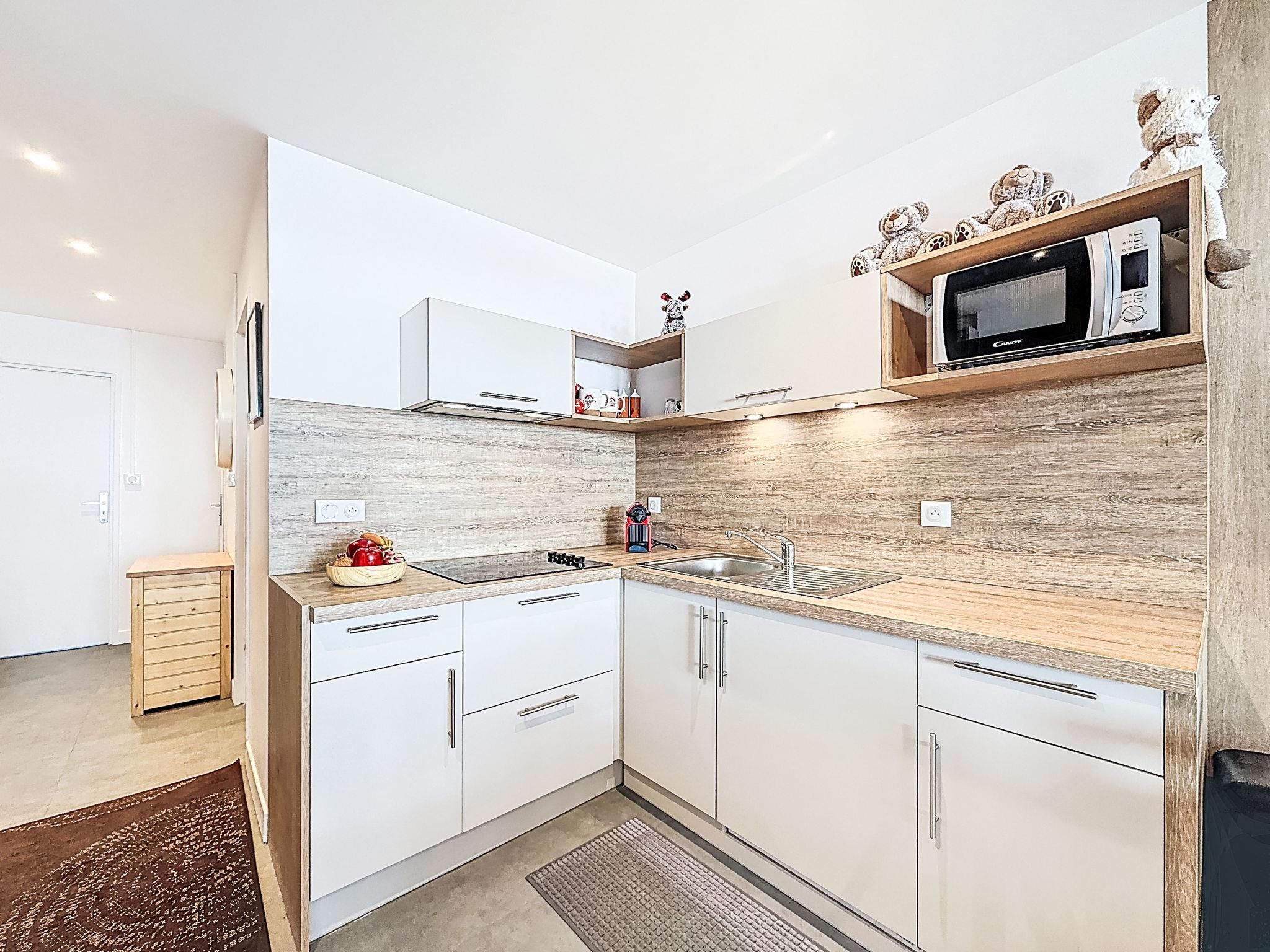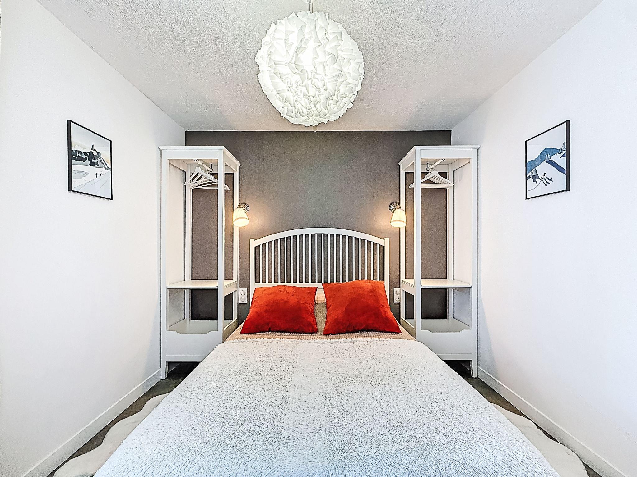 2-room apartment 45 m2 on 5th floor, south facing position. Comfortable furnishings: entrance hall with 2 wall-trunk beds (80 cm, length 190 cm). Living/dining room with 1 double sofabed (1 x 140 cm, length 190 cm), TV and heating stove. Exit to the balcony, south facing position. 1 room with 1 double bed (1 x 140 cm, length 190 cm). Open kitchen (4 induction hot plates, kettle, microwave, electric coffee machine, Capsules for coffee machine (Nespresso) extra). Shower, sep. WC. Marvellous view of the mountains. Facilities: Internet (WiFi, extra). Please note: non-smokers only. Smoke alarm. Cet appartement ne dispose pas de casier à ski. Le materiel est à monter dans l'appartement. Offer by a private individual according to Art. 155, IV of CGI.