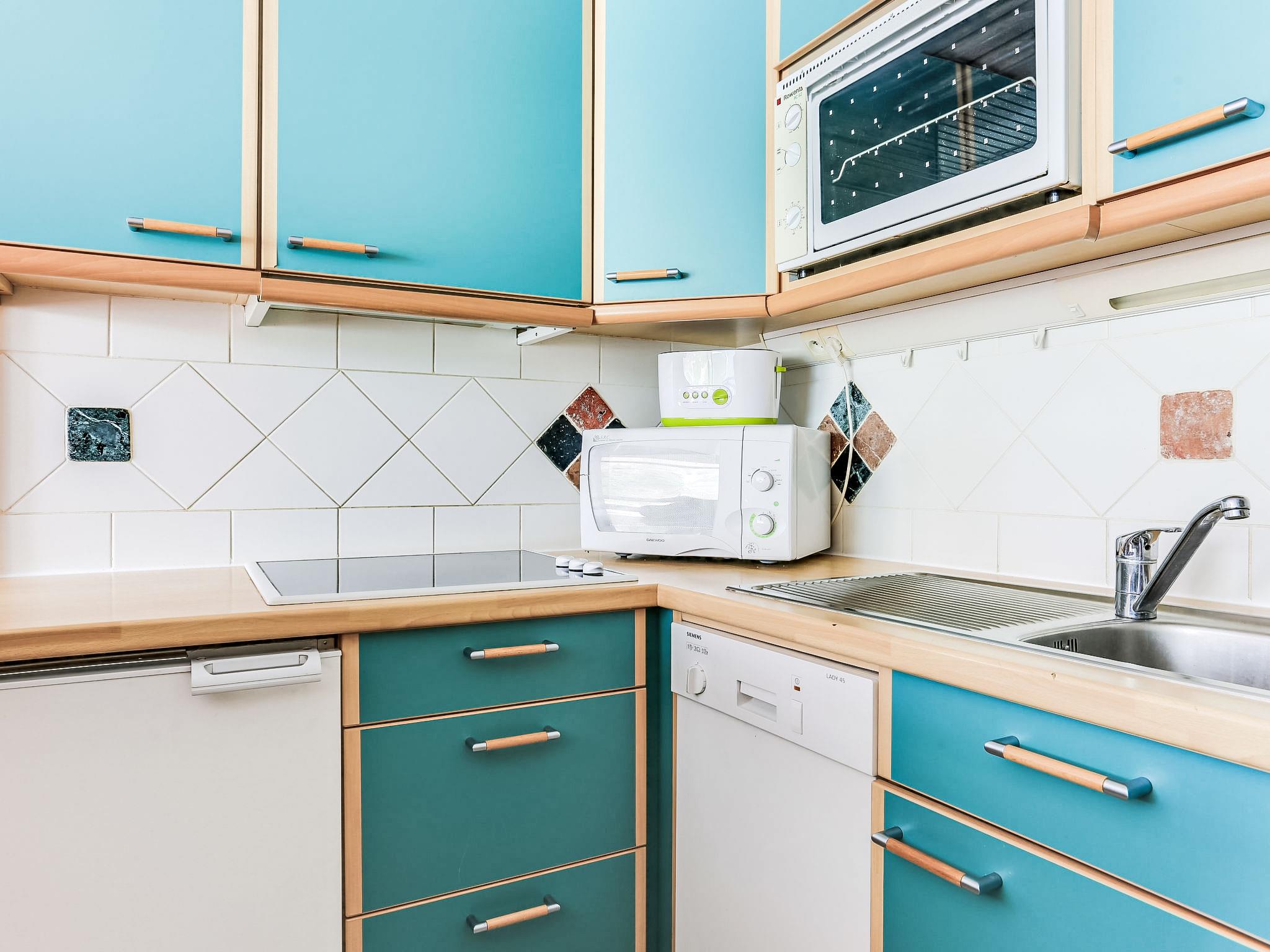1-room studio 28 m2 on 3rd floor. Comfortable furnishings: living/dining room with 1 bed (80 cm, length 190 cm), 1 double wall-trunk bed (160 cm, length 190 cm), TV. Entrance hall with 1 bed (80 cm, length 190 cm). Open kitchen (mini-oven, oven, dishwasher, 3 ceramic glass hob hotplates, microwave). Bath/WC. Balcony, south facing position. Panoramic view of the mountains and the ski run. Facilities: washing machine. Internet (WiFi, free). Please note: non-smokers only.