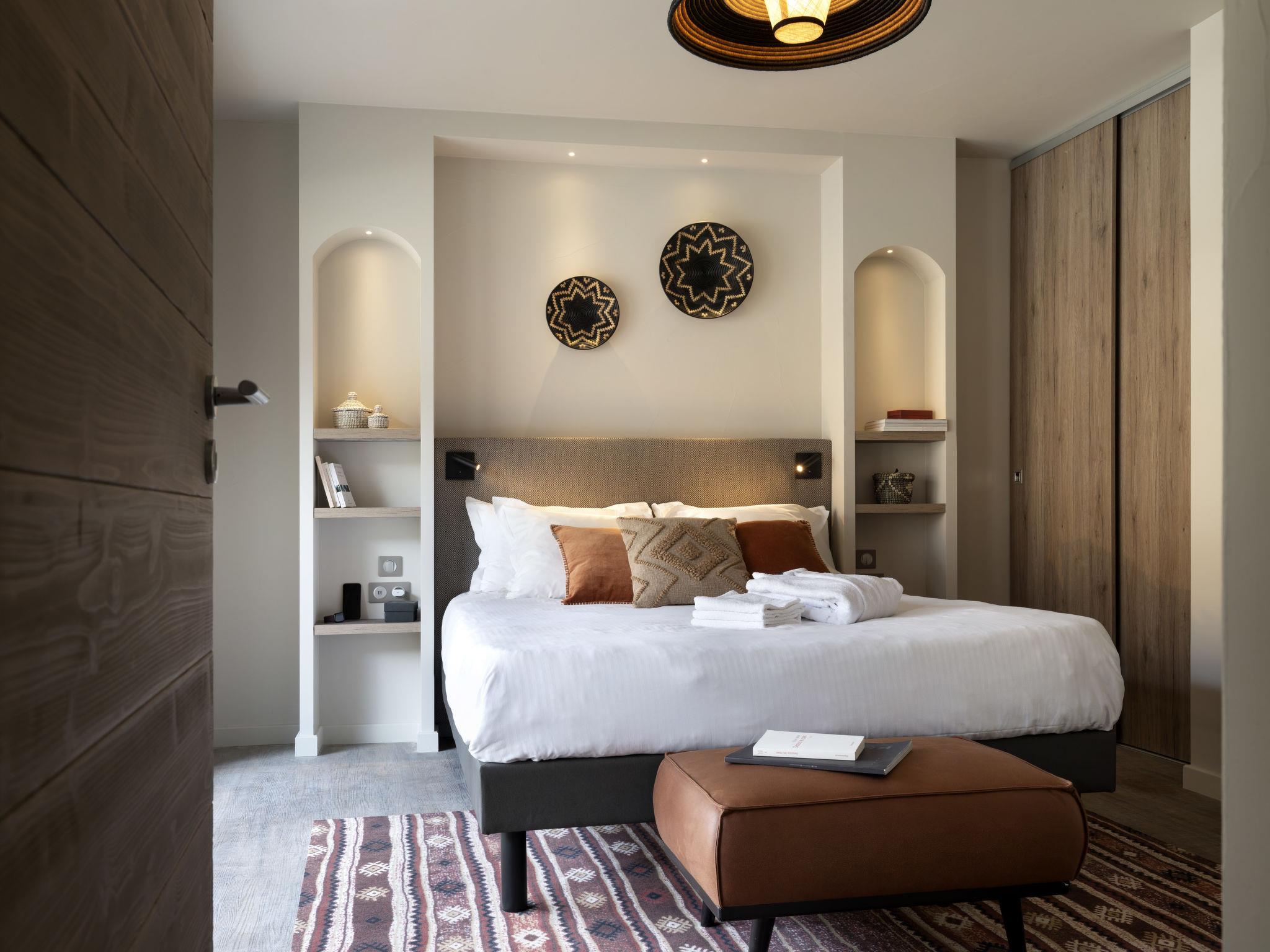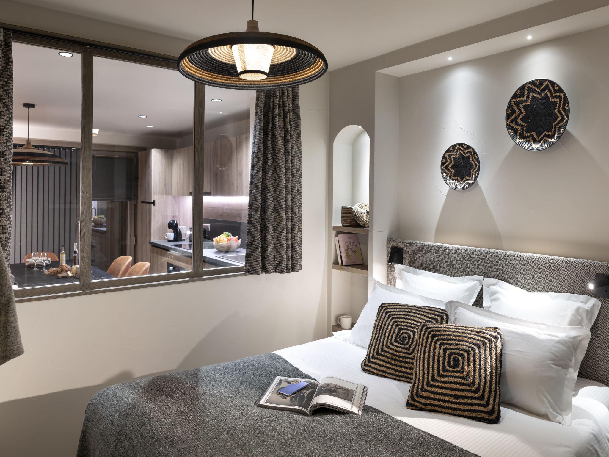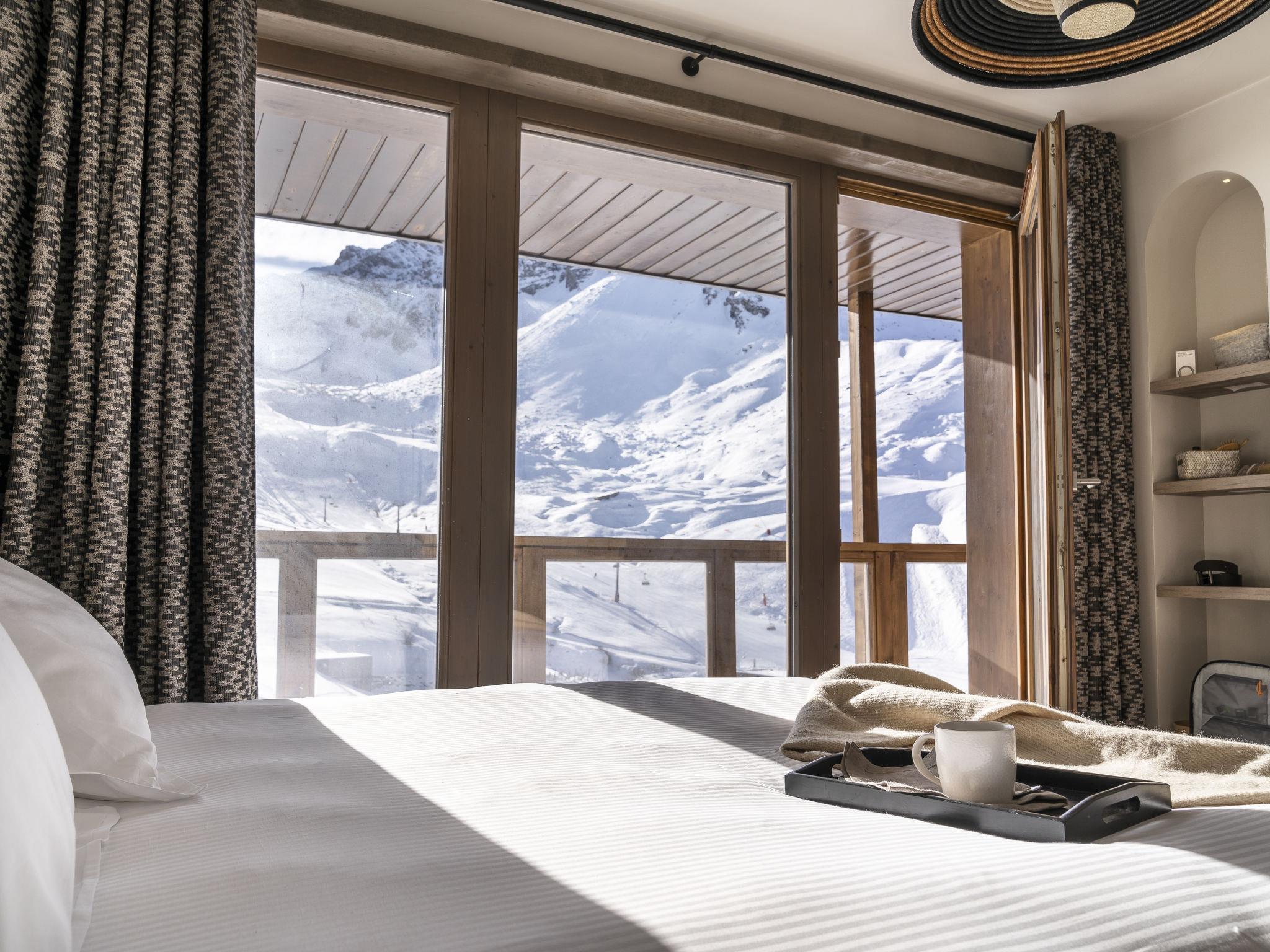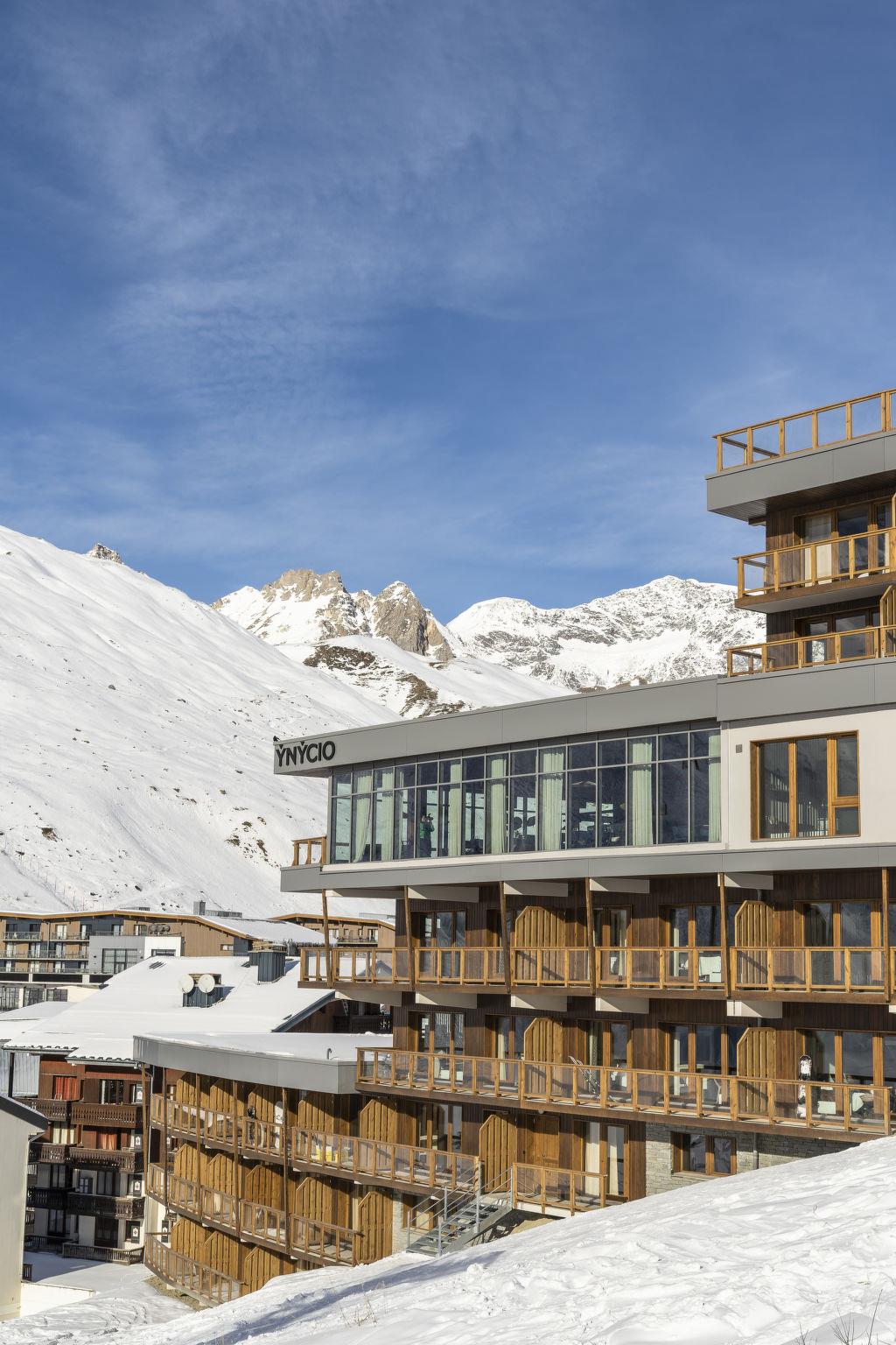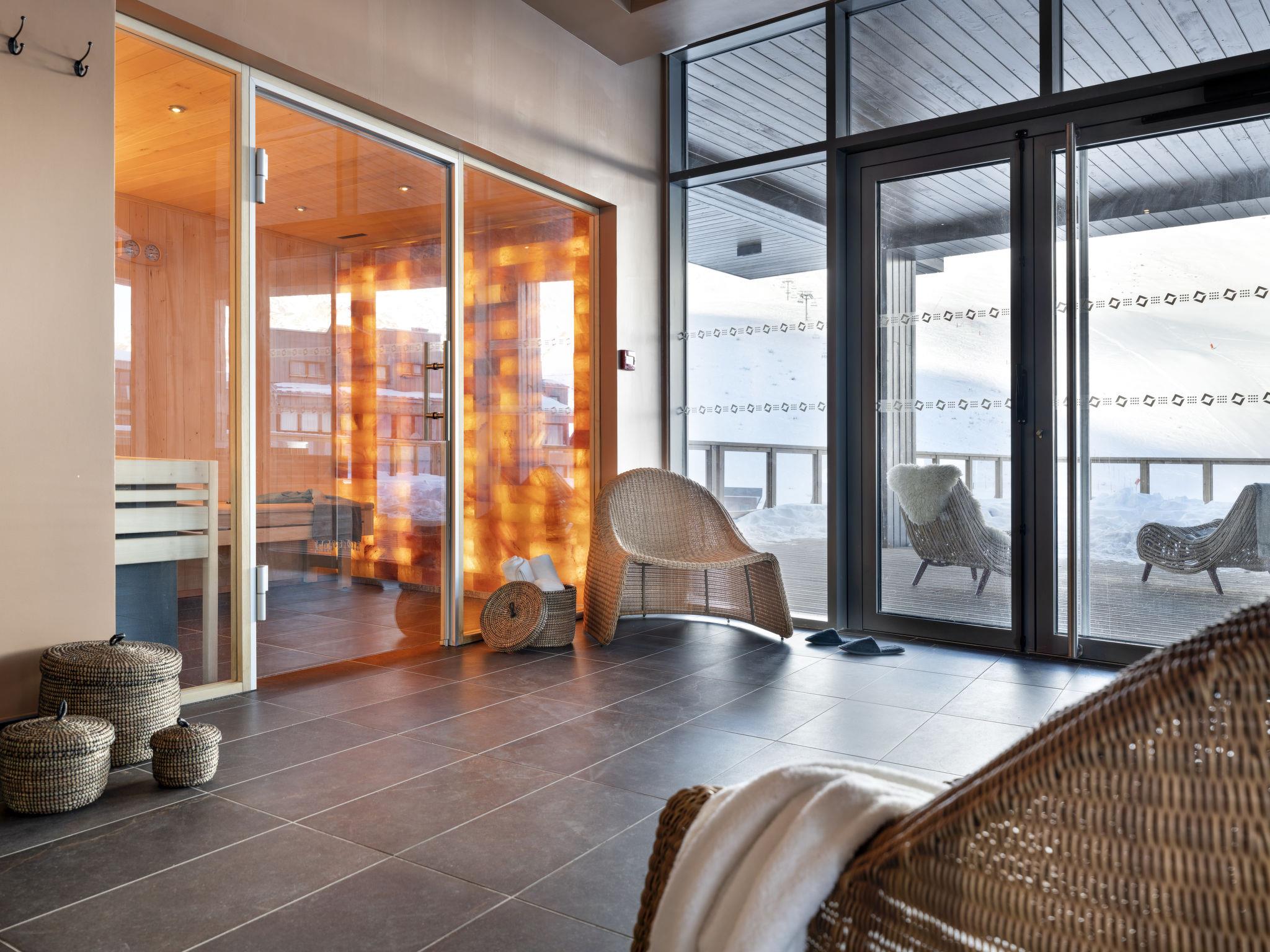 Tignes Val Claret: Residence "Ynycio", built in 2022. 33 apartments in the residence. For shared use: indoor pool heated. In the complex: reception, sauna, hamam, central heating system. 5 minute walk to the centre. Cable car 100 m, chair lift, skisport facilities 100 m, ski rental 500 m. Nearby attractions: Funiculaire de la Grande Motte, Télésiège de Bollin. Well-known ski regions can easily be reached: Alpes 2150 m d'altitude. Please note: the photograph shows a typical example. Additional accommodations can be booked. The holiday properties may differ in living space, floorplan, equipment and furnishing.