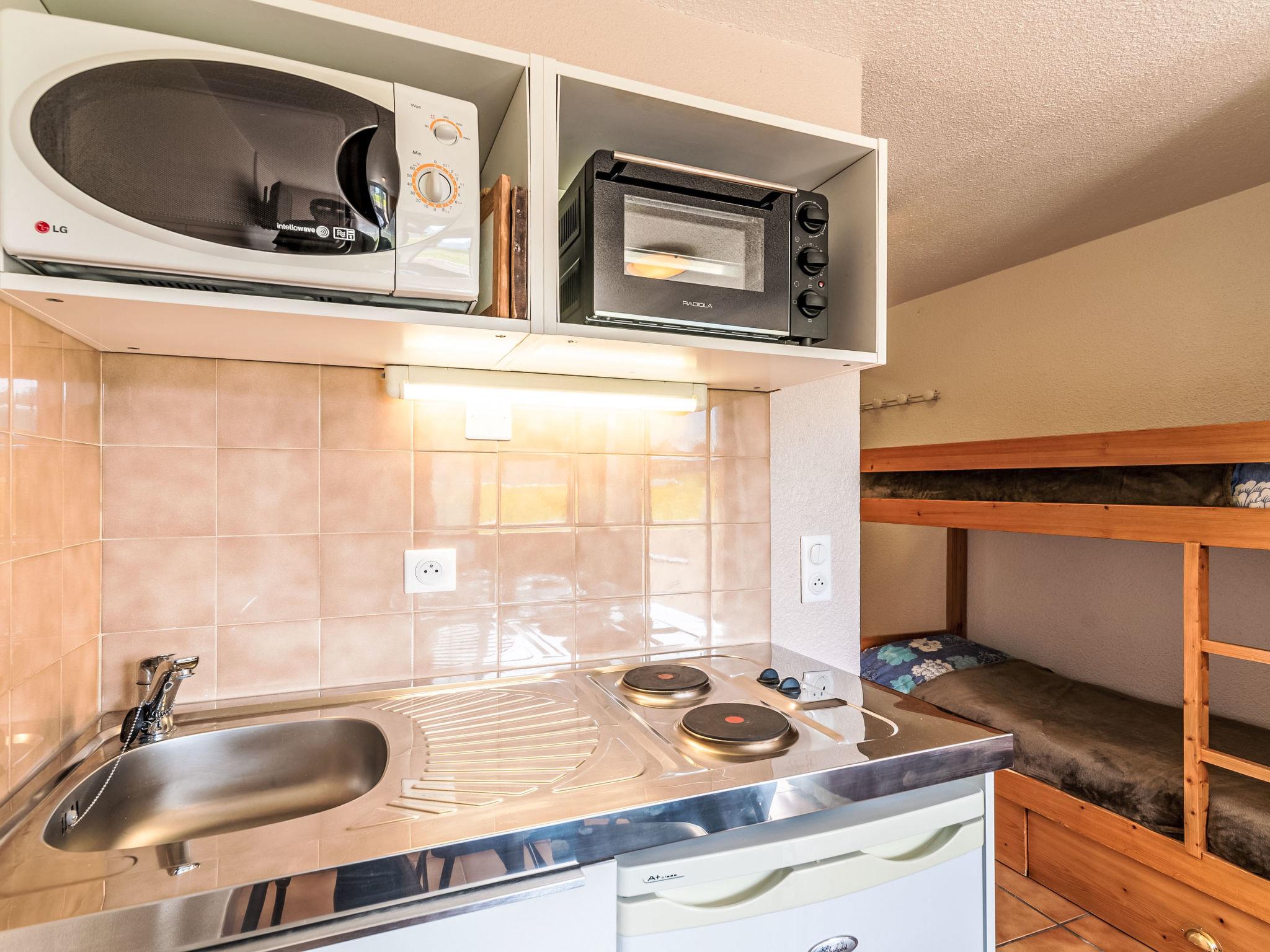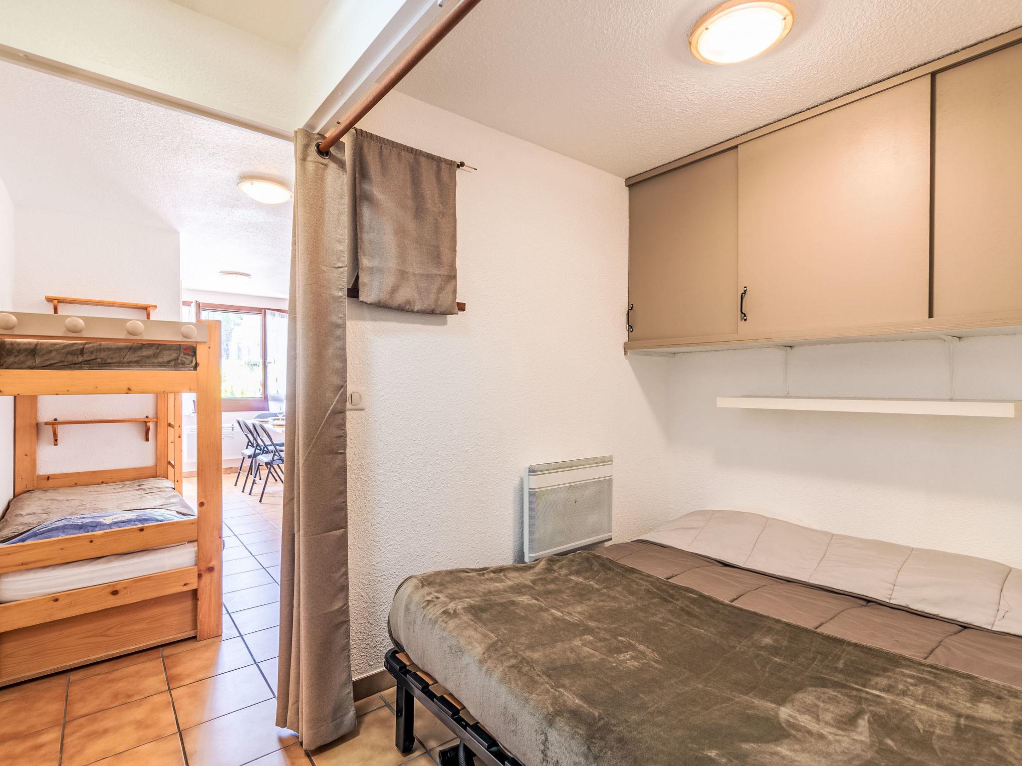 2-room apartment 25 m2, on the ground floor. Simple and practical furnishings: living/dining room with TV. 1 open small room with curtain with 1 french bed (160 cm, length 190 cm). Entrance hall with 2 x 1 bunk beds (80 cm). Kitchenette (2 hot plates, mini-oven, microwave). Shower/WC. Electric heating. Terrace, south facing position. Facilities: Internet (WiFi, extra). Please note: non-smokers only.
