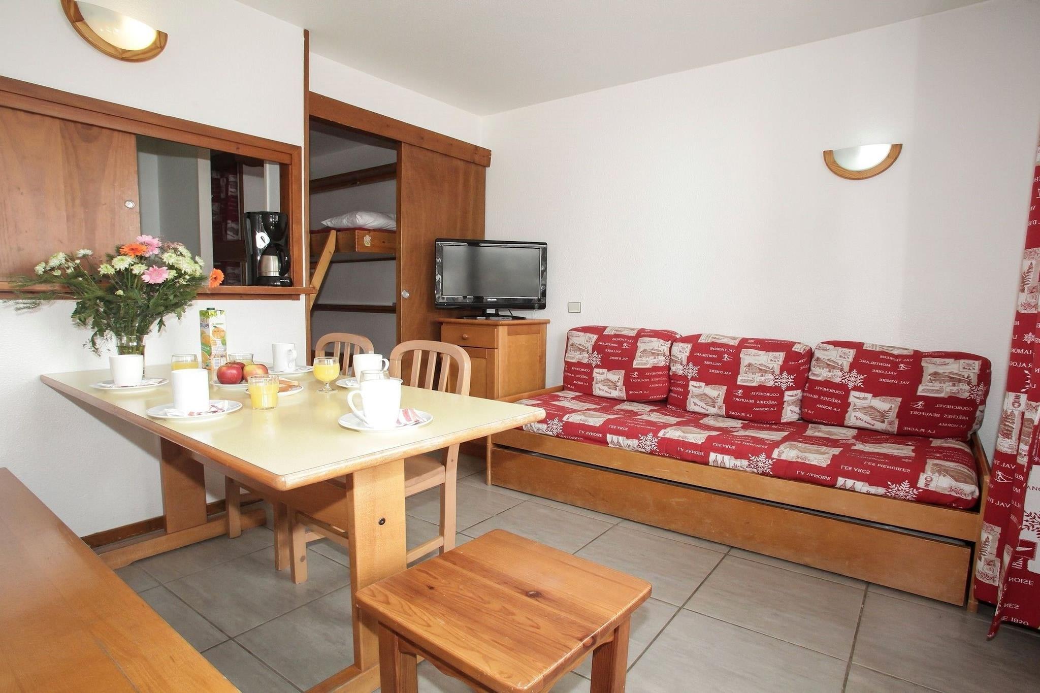 Simple Alpine Charm with Room for All Welcome to your cozy mountain escape at Résidence Le Hameau du Borsat, located in the heart of vibrant Tignes Val Claret. This functional two-room apartment accommodates up to 5 guests with smart use of space—featuring a double bedroom, bunk beds in the living room, and an additional single bed in the hallway. The kitchenette includes all the essentials for casual meals, and the private bathroom has a bathtub for a warm soak after a day on the slopes. A great value stay for families, small groups, or adventure-seeking friends. Tails on the Trail: Pet-Friendly Mountain Fun Bring your furry friend along! Tignes welcomes pets with open paws—whether you’re strolling through snowy forest paths in winter or hiking alpine trails in summer. Many cafés in Val Claret offer pet-friendly terraces, and the lake trail at Tignes Le Lac is a favorite among local dog owners. You’ll even find pet-accessible gondolas during the green season, perfect for shared mountain adventures. Ski, Eat, Repeat – Right Outside Your Door Just steps from ski lifts, rental shops, and après-ski spots, this apartment offers unbeatable convenience. Dine nearby at cozy alpine eateries like Le Coffee or Couloir, where you can enjoy fondue, pizza, or a post-ski drink. Whether you're here to ski, hike, or relax with your pet, this location offers an ideal mix of accessibility and atmosphere.