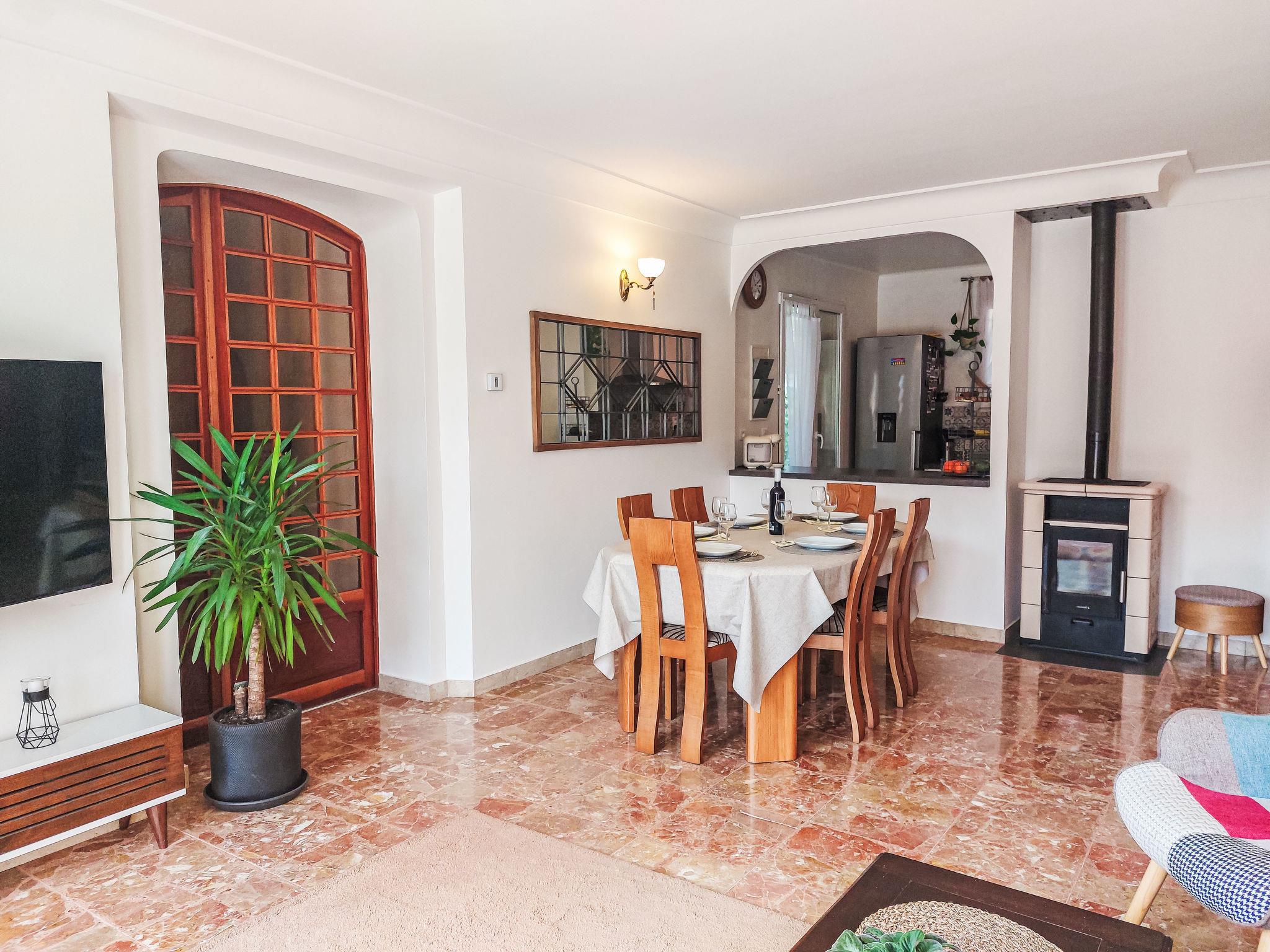 "Les Pierres Fleuries", 4-room villa 90 m2. Comfortable and beautiful furnishings: living/dining room with Scandinavian wood stove (only for decoration), dining table and TV (flat screen), air conditioning. Exit to the terrace. 1 room with 1 french bed (140 cm, length 190 cm), fan. 1 room with 2 beds (90 cm, length 190 cm), fan. 1 room with 1 double sofabed (140 cm, length 190 cm), library and fan. Open kitchen (oven, dishwasher, 3 induction hot plates, toaster, kettle, microwave, freezer, electric coffee machine, Capsules for coffee machine (Tassimo) extra) with small dining table. Exit to the garden. Bath/shower, sep. WC. Oil heating. Terrace furniture, electric barbecue, deck chairs (4). Facilities: washing machine, dryer, iron, mosquito net, baby cot for up to 3 year olds. Internet (WiFi, free). Parking (fenced 2 cars). Please note: non-smoking house. Smoke alarm. The pool mentioned in the description is for private use. Offer by a private individual according to Art. 155, IV of CGI.