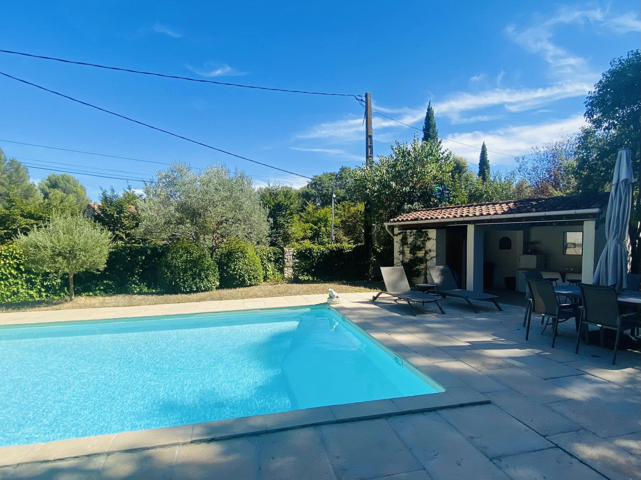 1.7 km from the centre of Trans en Provence, 5.4 km from the centre of Draguignan, 30 km from the centre of Fréjus, in the residential district. Private: property 1'500 m2 (fenced), beautiful garden to relax, swimming pool (10 x 5 m, depth 150 - 240 cm, seasonal availability: 15.Jun. - 15.Sep.) with alarm system. Children's playground. Shop 4 km, grocery 4 km, supermarket 4 km, shopping centre 4 km, restaurant 4 km, bar 1.7 km, bakery 4 km, café 1.7 km, bus stop 750 m, railway station "Les Arcs-Draguignan" 10 km, sandy beach "Féjus" 32 km. Golf course (18 hole) 13 km, tennis 3 km, riding stable 19 km. Nearby attractions: Grotte de Villecroze, Tourtour, L abbaye du Thoronet, Moustiers SAint Marie, Gorges du Verdon. Well-known lakes can easily be reached: Lac de Sainte Croix 43 km, Lac de Saint Cassien 40 km, Lac de Carcès (Pêche uniquement) 46 km. Hiking paths: Rocher de Roquebrune, Le Blavet, Plaine des Maures. The owner does not accept any youth groups. Owner uses some rooms in the house.