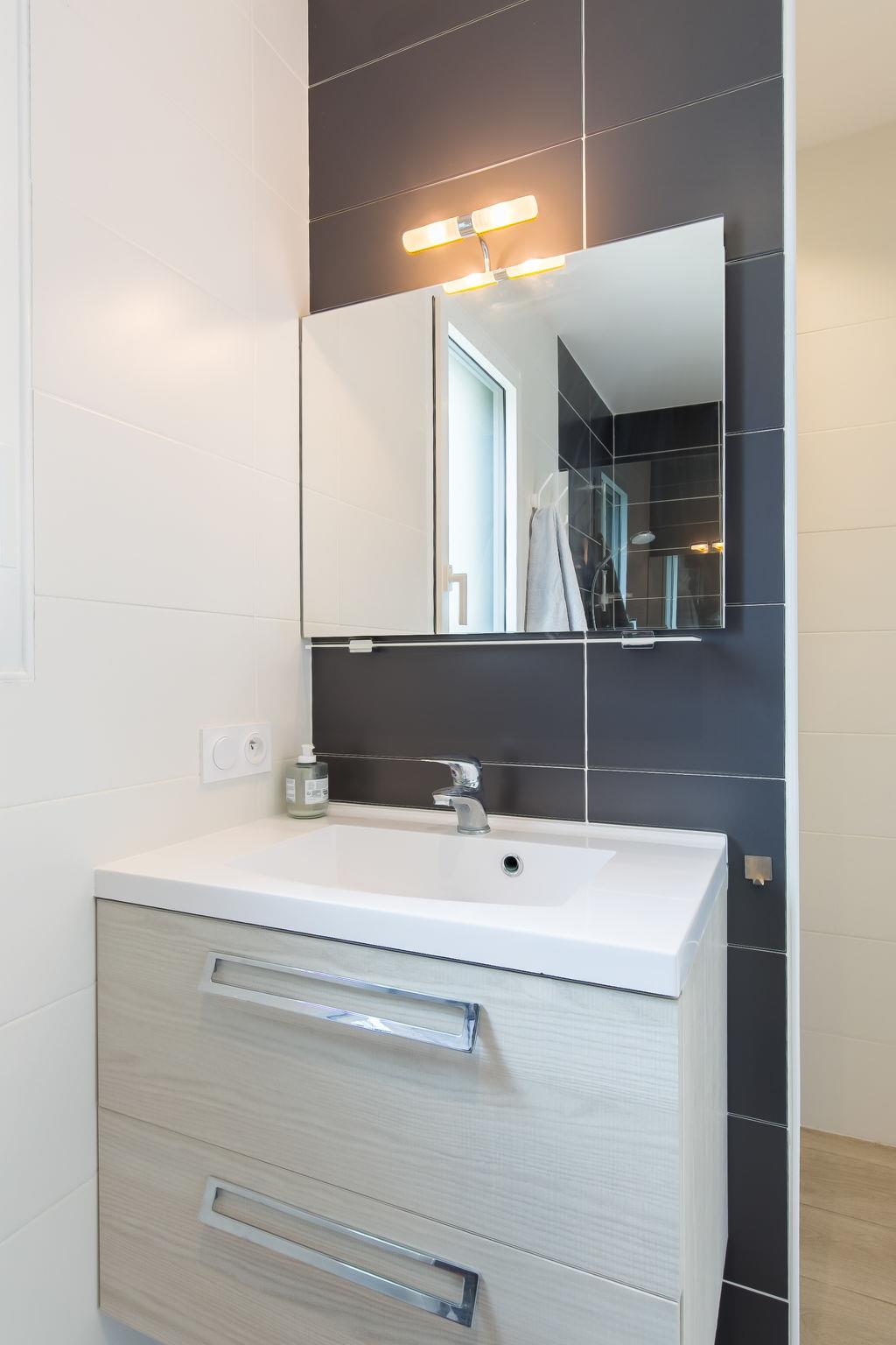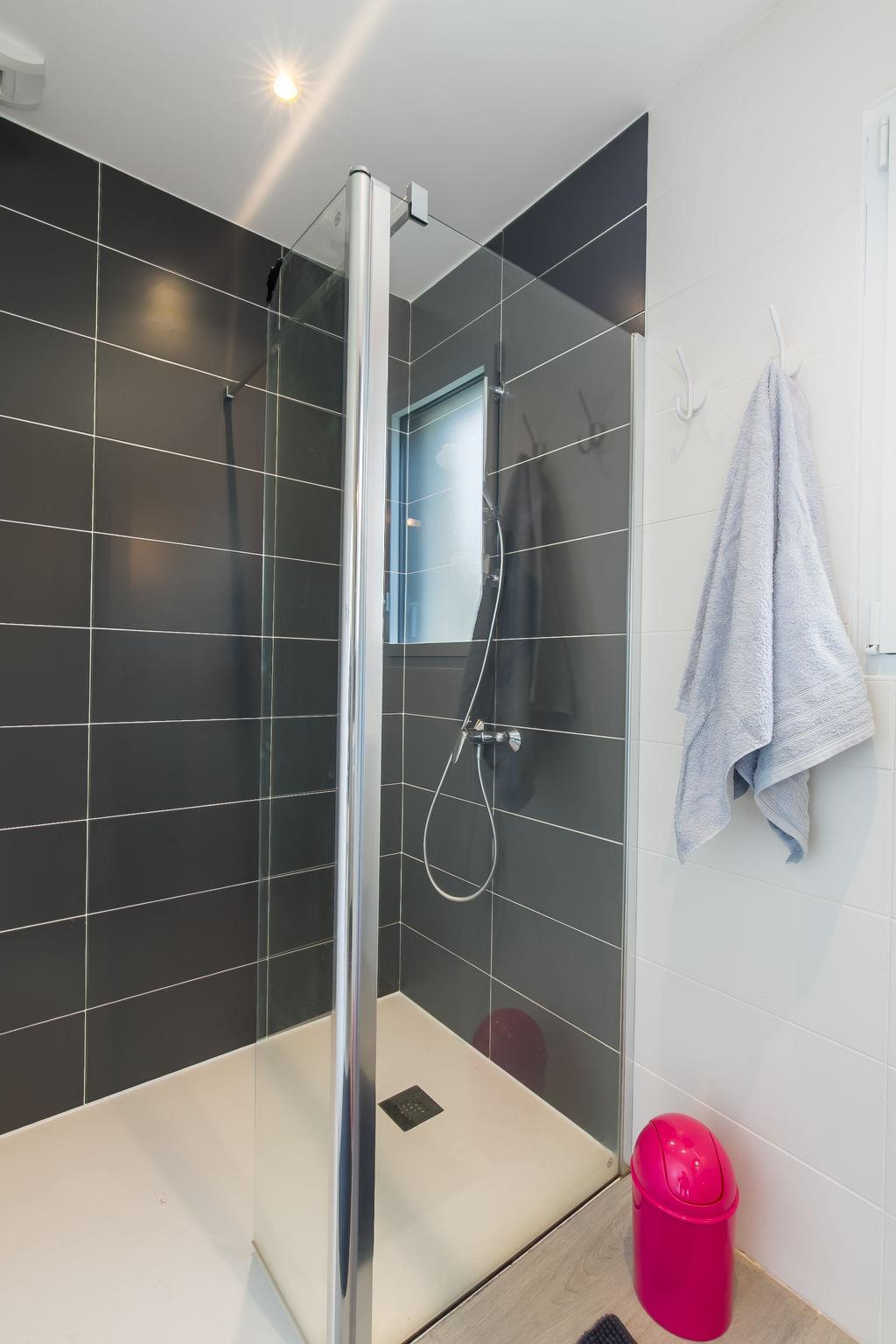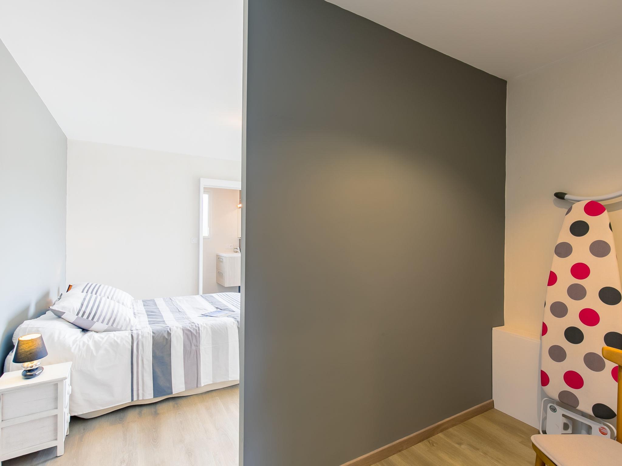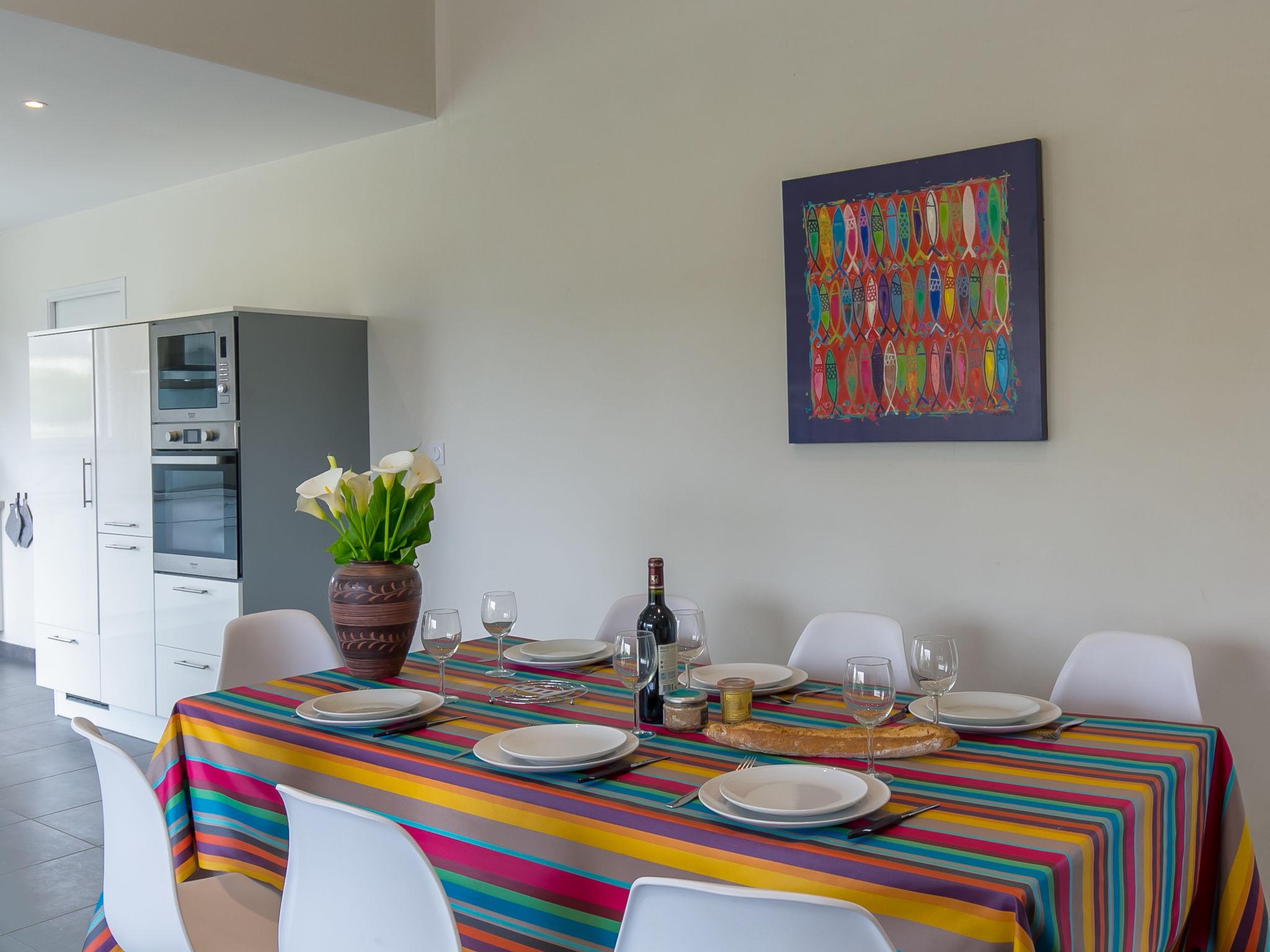 "Terre et Mer", 4-room house 110 m2. Bright, modern furnishings: living/dining room with dining table and TV. Exit to the terrace. 1 room with 1 french bed (160 cm, length 200 cm), shower/WC. 1 room with 1 french bed (140 cm, length 190 cm). 1 room with 2 beds (90 cm, length 190 cm). Open kitchen (oven, dishwasher, 3 induction hot plates, toaster, kettle, microwave, freezer, electric coffee machine) with dining table. Exit to the terrace. Shower, sep. WC. Heating. Terrace. Terrace furniture, barbecue (portable), deck chairs (3), box-room. Facilities: washing machine. Internet (WiFi, free). Please note: non-smoking house. Smoke alarm.