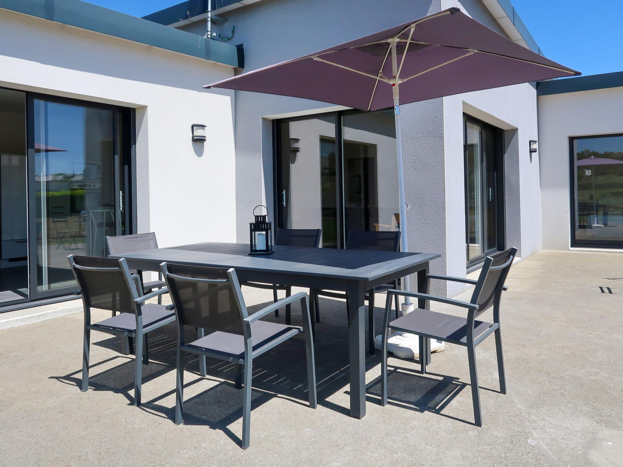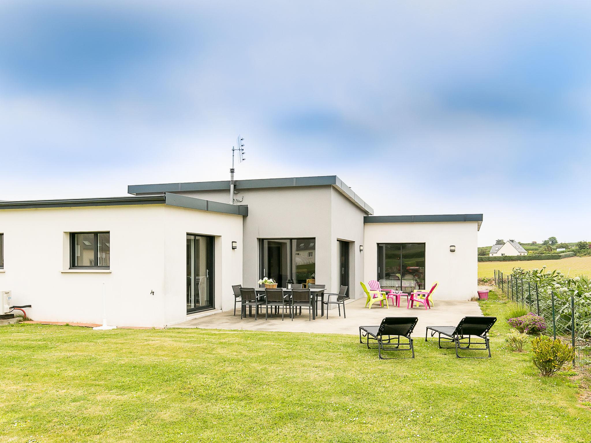 Modern single-family house "Terre et Mer". 400 m from the centre of Treflez, 8 km from the centre of Plouescat, 9 km from the centre of Lesneven, 3.5 km from the sea, 3.5 km from the beach. Private: property 800 m2, garden (not fenced) with lawn and wildlife garden, parking (for 2 cars) on the premises, single garage. Shop 4.5 km, supermarket 8 km, restaurant 4.5 km, bakery 4.5 km, bus stop 4 km, sandy beach "Keremma" 3.5 km, thermal baths "Thalasso Roscoff" 28 km. Golf course (9 hole) 10 km, surf school 10 km, sailing school 10 km. Nearby attractions: Réserve ornithologique Keremma 5 km, Meneham, Kerlouan 13 km, Château de Kerjean 15 km, Roscoff, Jardin exotique, Île de Batz 28 km, Landerneau 23 km, Oceanopolis Brest 40 km.