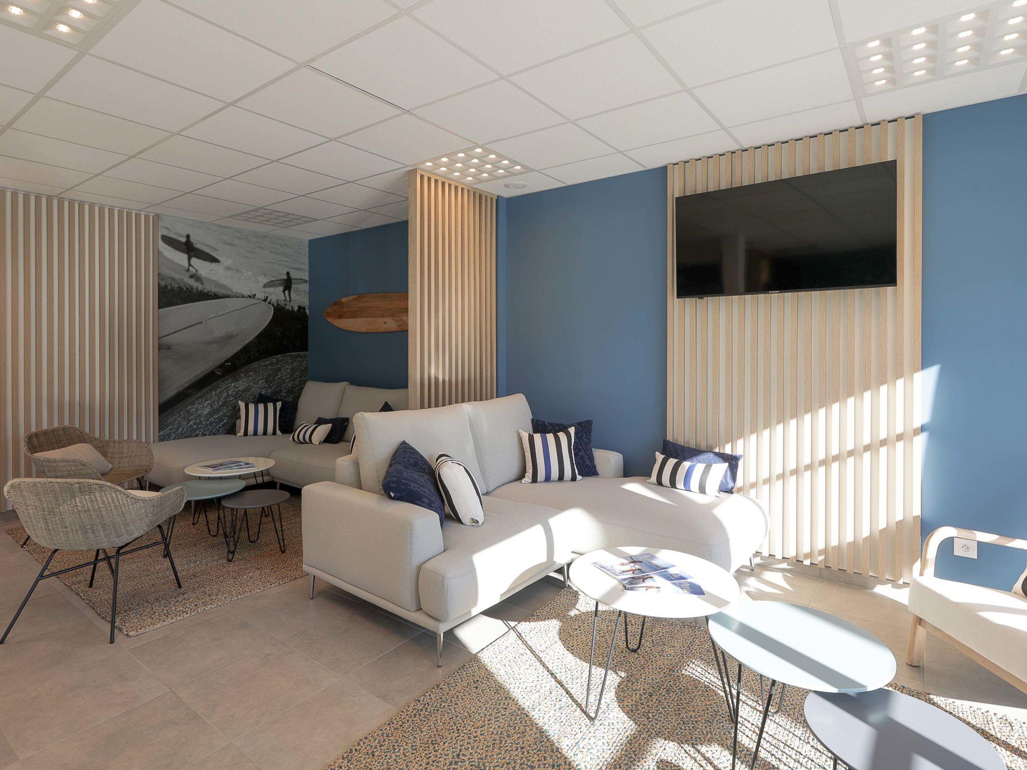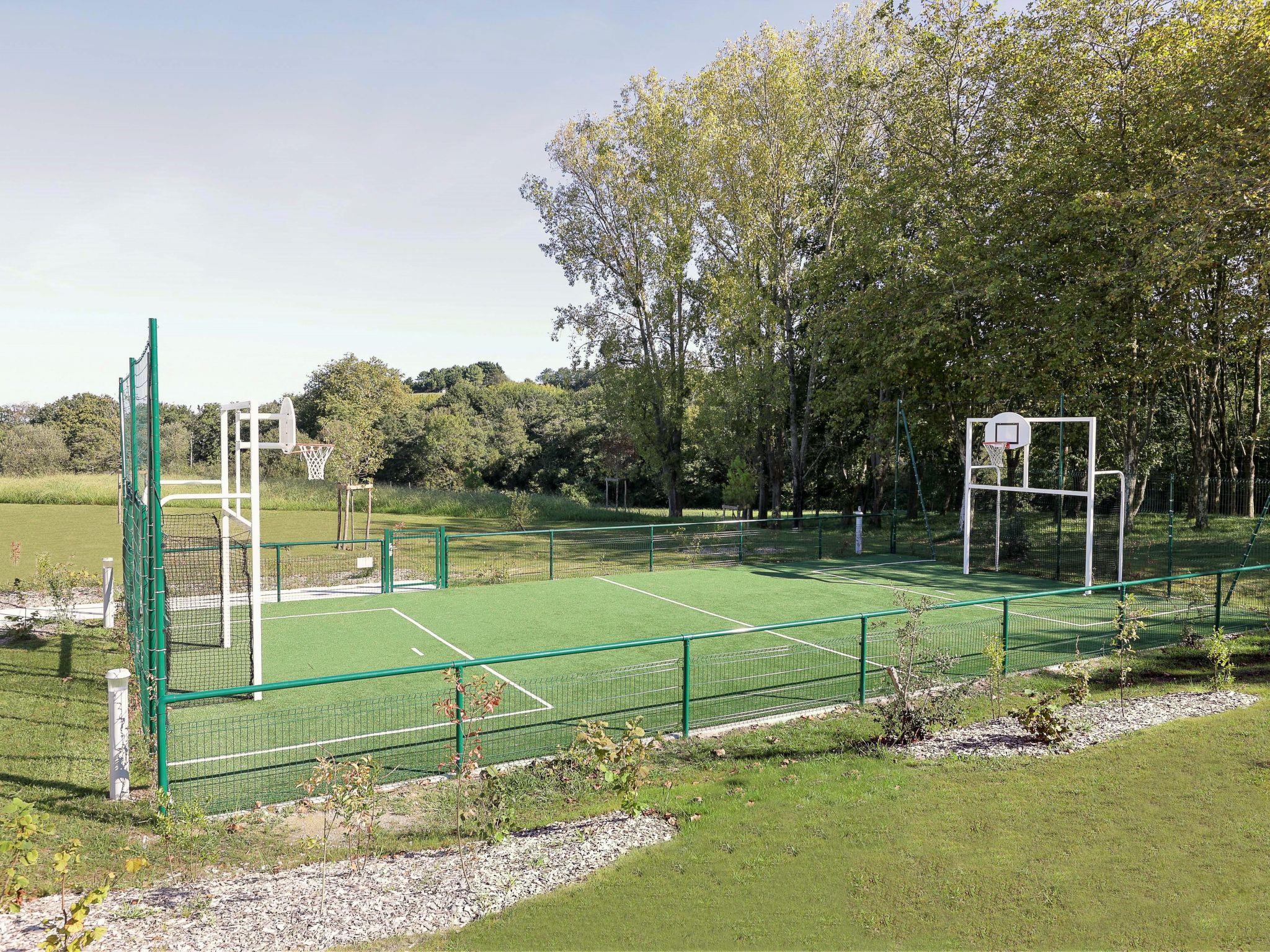Residence "Le Domaine d'Uhaina", built in 2021. 94 apartments in the residence. 7 km from the centre of Urrugne, 8 km from the centre of Saint Jean de Luz, 25 km from the centre of Biarritz, 1 km from the sea, 5 km from the beach, in a cul-de-sac. For shared use: property 4 ha (fenced), swimming pool, indoor pool heated, fenced (9 x 3 m, depth 150 cm, seasonal availability: 01.Jan. - 31.Dec.). Shower/WC in the pool area, boccia, terrace, garden furniture. In the complex: reception, WiFi, sauna, fitness room, hamam table tennis, sun terrace, washing machine, tumble dryer (for shared use, extra). Breakfast on request (extra). Parking (limited number of spaces) on the premises. Shop 5 km, supermarket 8 km, sandy beach "Hendaye" 5 km. Golf course (18 hole) 29 km. Nearby attractions: Hendaye 5 km, Saint Jean de Luz 8 km, Guéthary 16 km, La Rhune 19 km, Biarritz 23 km, Espagne 8 km. Please note: the photograph shows a typical example. The holiday properties may differ in living space, floorplan, equipment and furnishing.