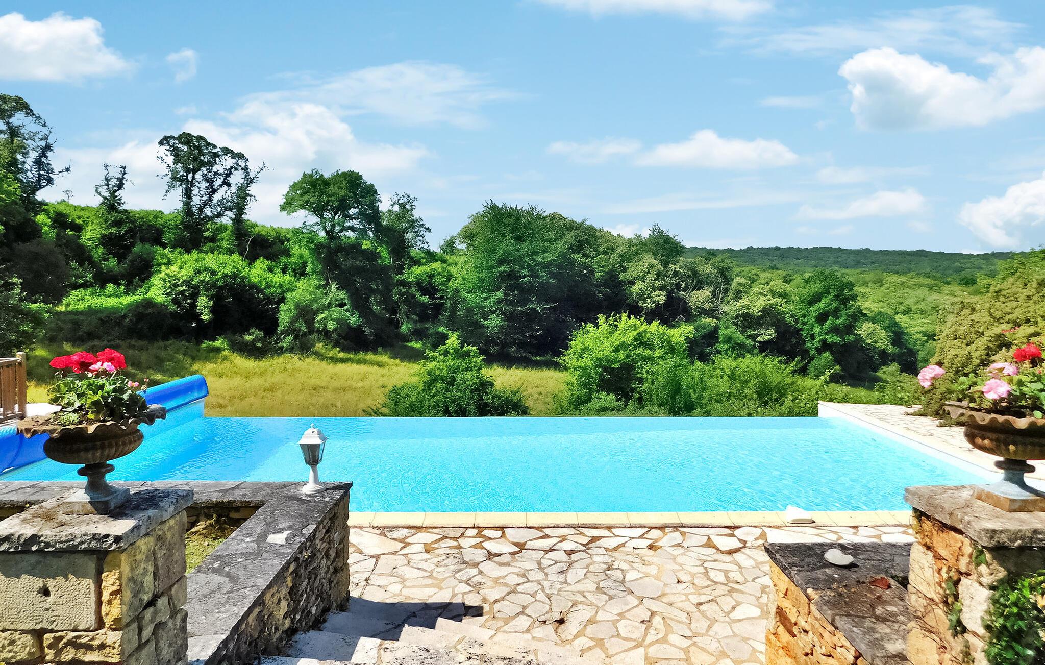 Dieses Ferienhaus in Urval, Dordogne, ein Perigourdine-Steinhaus auf einem 1 Hektar großen Grundstück, bietet Platz für 6 Gäste im Haupthaus und 2 in einem angrenzenden Nebengebäude. Es bietet eine gut ausgestattete Küche, einen geräumigen Wohnbereich mit Kaminen und ein separates Wohnzimmer. Im Erdgeschoss befindet sich ein Schlafzimmer mit eigenem Duschbad und Badezimmer. Im Obergeschoss befinden sich zwei Schlafzimmer mit eigenem Bad. Das unabhängige Cottage verfügt über ein Schlafzimmer, einen kleinen Wohnbereich und ein separates Duschbad. Im Außenbereich bieten eine Terrasse mit Sitzgelegenheiten, ein Landschaftspark und ein privater Infinity-Pool (10 x 5 m) Blick auf die Landschaft. Das Anwesen verfügt außerdem über einen Innenhof mit Parkplätzen, der über ein großes elektrisches schmiedeeisernes Tor erreichbar ist. Das Ferienhaus liegt nicht weit vom Zentrum des Dorfes Urval (klassifiziertes Dorf) entfernt, etwa 2 km.