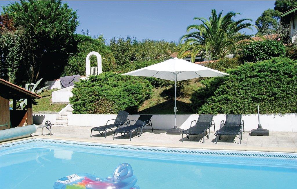 Dieses Ferienobjekt ist Teil eines wunderschönen Anwesens beim Dorf Arcangues, nur 10 Autominuten vom eleganten Badeort Biarritz sowie 20 km von der spanischen Grenze entfernt. Es steht inmitten eines ausgedehnten, angelegten Gartens mit Blick auf die Pyrenäen. Über wenige Stufen erreicht man den über ein Solarsystem beheizten Privatpool. Außer der Veranda befindet sich auf der Vorderseite des Hauses eine gemütliche Terrasse, ideal für Grillabende. Golffreunde können ihrem Hobby auf mehreren international anerkannten Anlagen in der Umgebung frönen, wie z. B. auf dem Golf de Chantaco, Golf de Biarritz oder Golf d’Arcangues. Durch die ländliche Umgebung sowie die Pyrenäen ziehen sich viele herrliche Pfade zum Wandern, und Adrenalinjunkies erwartet ein tolles Rafting-Abenteuer in den Schluchten der Nive. Fahren Sie nach Biarritz zum Shoppen und erleben Sie die baskische Küche in einem der vielen Restaurants der Stadt. Anschließend können Sie sich am Meer entlang die Füße vertreten. Im charmanten Hafenort Saint-Jean-de-Luz, in dem das ganze Jahr durch regelmäßig traditionelle Feierlichkeiten stattfinden, gibt es eine nette Auswahl an Bars für einen abendlichen Plausch. Der freundliche Eigentümer, der in einem Nebengebäude wohnt, gibt Ihnen gern gute Tipps für Ihre Ausflüge in der Umgebung. Parkmöglichkeiten auf dem Grundstück.