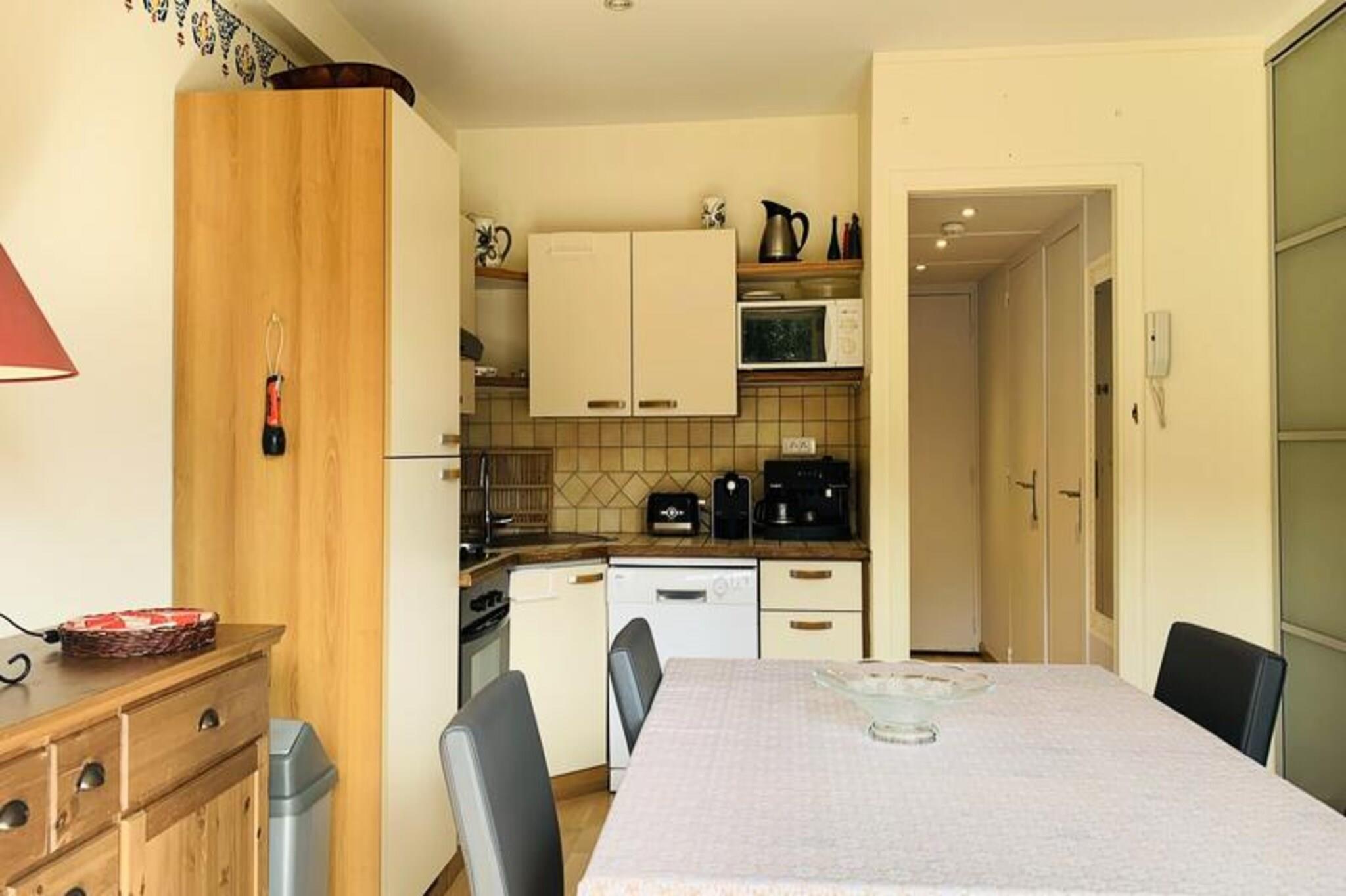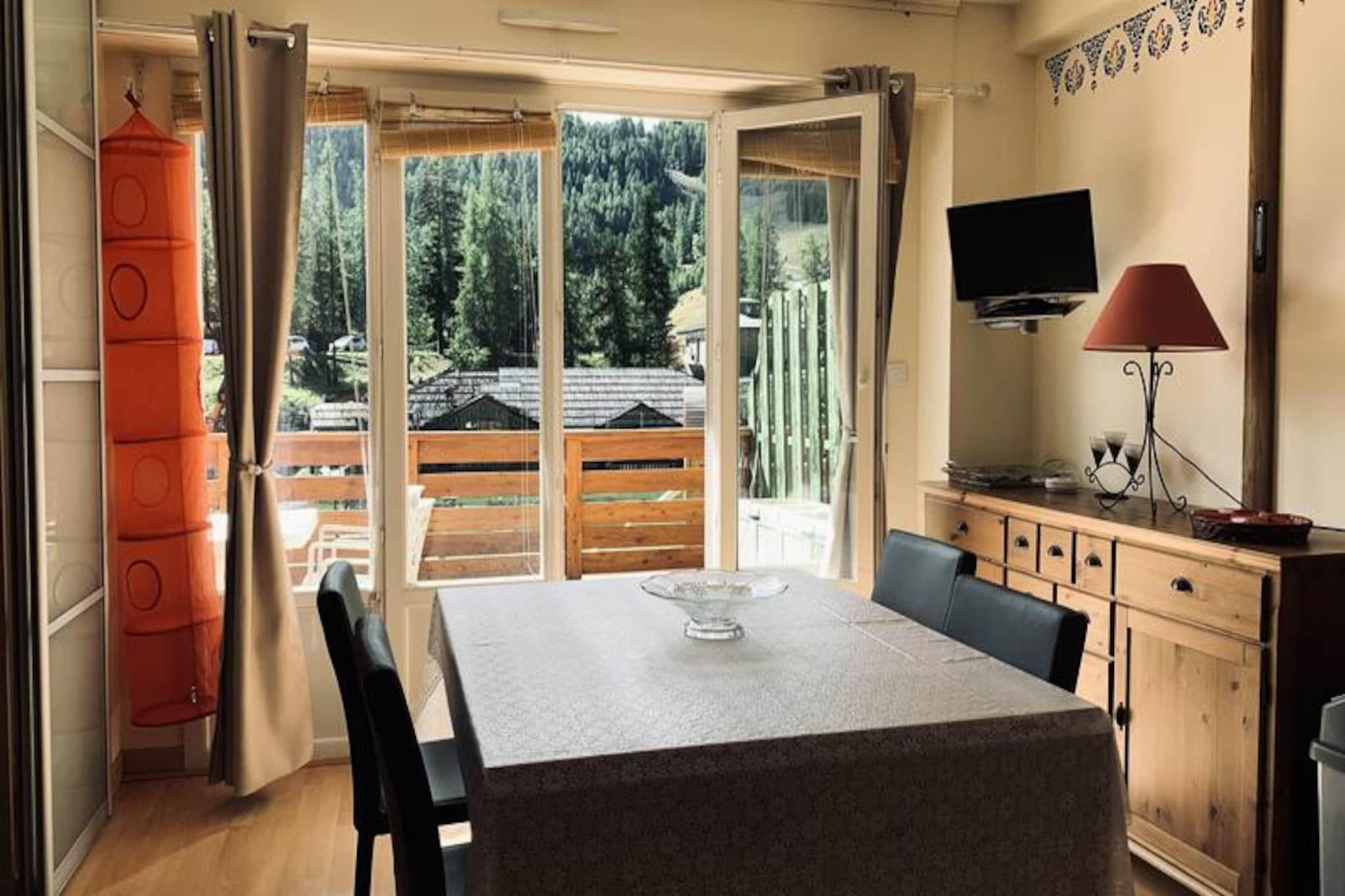 This spacious and bright 47m² apartment is perfect for a family or group of up to 6 people. It features a cozy living room with a single sofa and a 2-seater convertible sofa, along with a flat-screen TV for entertainment. The bedroom includes a bunk bed and a double bed on the mezzanine, providing ample sleeping space. The apartment is non-smoking and pets are strictly prohibited. A deposit of EURO260 is required, and heating is included. For added convenience, a garage space is available for rent at EURO80 per week. Ideally located in the heart of the resort, the apartment is just 100 meters from the slopes, making it perfect for ski enthusiasts. The surrounding area offers easy access to shops, cafes, and restaurants, providing everything you need within walking distance. Whether you’re here to ski, shop, or simply enjoy the vibrant atmosphere of the resort, this location is perfect for a memorable stay. The apartment includes a fully equipped kitchen with a dishwasher, oven, microwave, refrigerator, and a coffee maker, including a Nespresso machine for your convenience. The bathroom features a shower cabin and a towel dryer, while there is also a separate WC for added comfort. A large south-facing terrace provides the perfect spot to relax and enjoy the beautiful surroundings after a day of skiing.