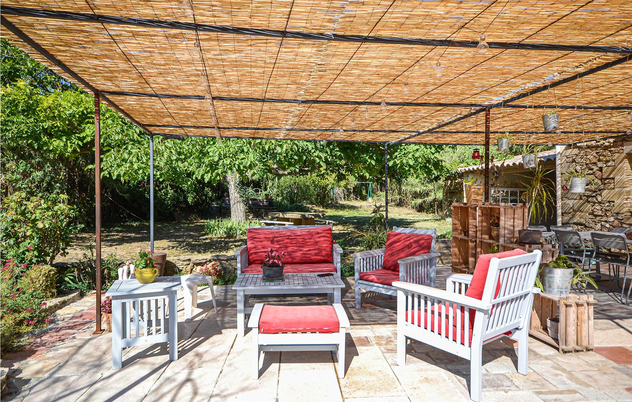 Dieses wunderschöne, steinerne Landhaus profitiert von einer einmaligen Lage auf einem weitläufigen Areal in der Provence. Das riesige Grundstück ist blickgeschützt und verfügt über einen herrlichen Pool, der ganz gewiss Ihren Ansprüchen entspricht und zu Ihrer Erholung entscheidend beitragen wird. Im Inneren des Anwesens erwarten Sie gemütlich gestaltete Räume, von deren Charme Sie sofort gefangen genommen werden. Sie wohnen am Rande des Ortes Saint-Quentin-la-Poterie und nur gut 4 km von der eindrucksvollen, mittelalterlichen Stadt Uzès entfernt. Der Name des touristischen Dorfes lässt es bereits vermuten: In Saint-Quentin-la-Poterie dreht sich alles um die Töpferei. Gleichermaßen interessant für Groß und Klein ist der große Bambusgarten in Anduze sowie sich auch der Besuch in Nîmes oder Avignon lohnt. Empfehlenswert ist zudem eine Kanufahrt auf dem Gardon. Eines der Schlafzimmer hat ein eigenes Bad en suite.